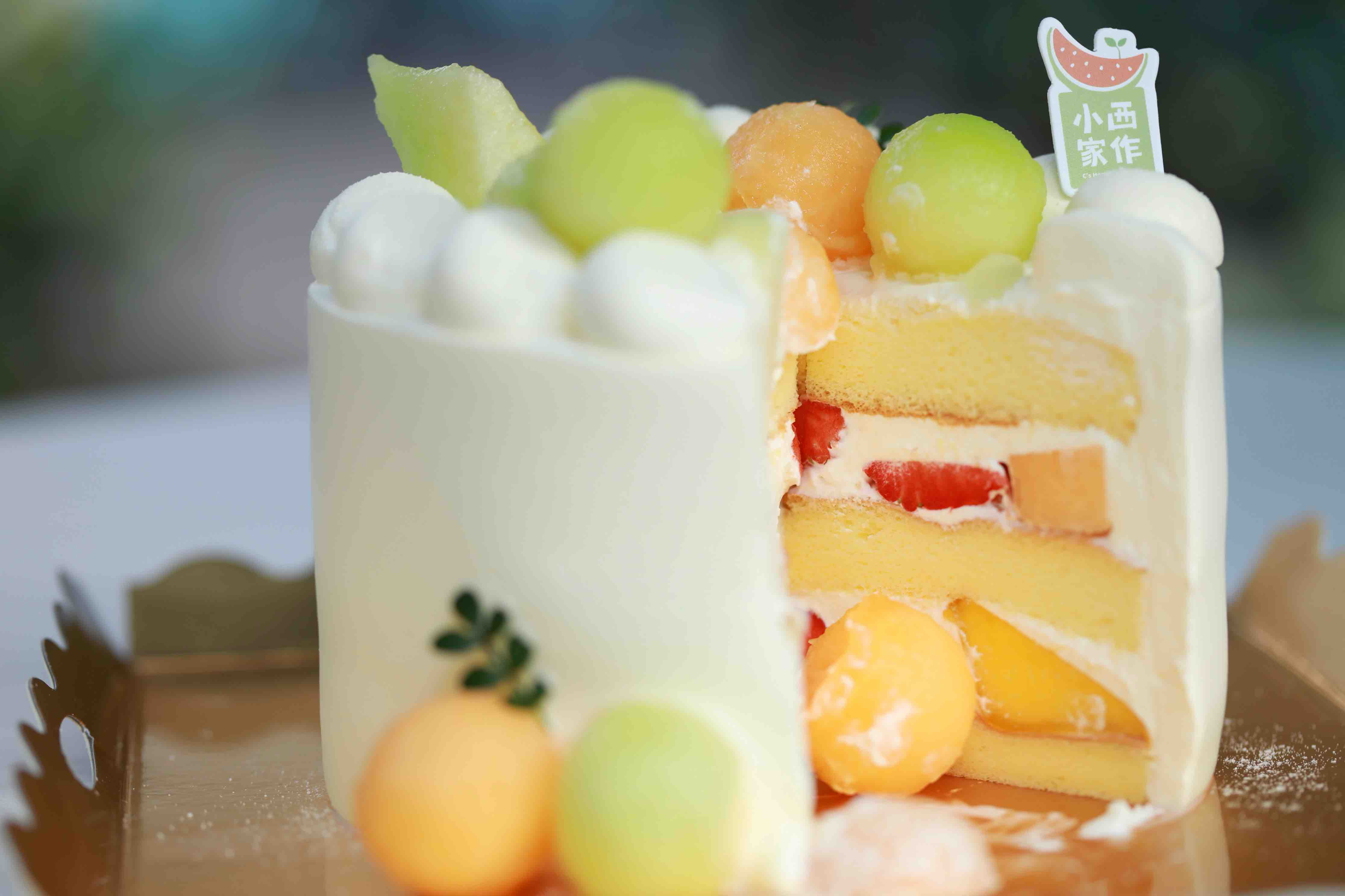 这个季节蜜瓜当季,香,糯,甜。蛋糕顶部用新鲜蜜瓜铺满,软的蛋糕层之间包裹着时令鲜果。吃起来的感觉,和卖相一样的清冽,会不由得想起这句:人间有味是清欢。