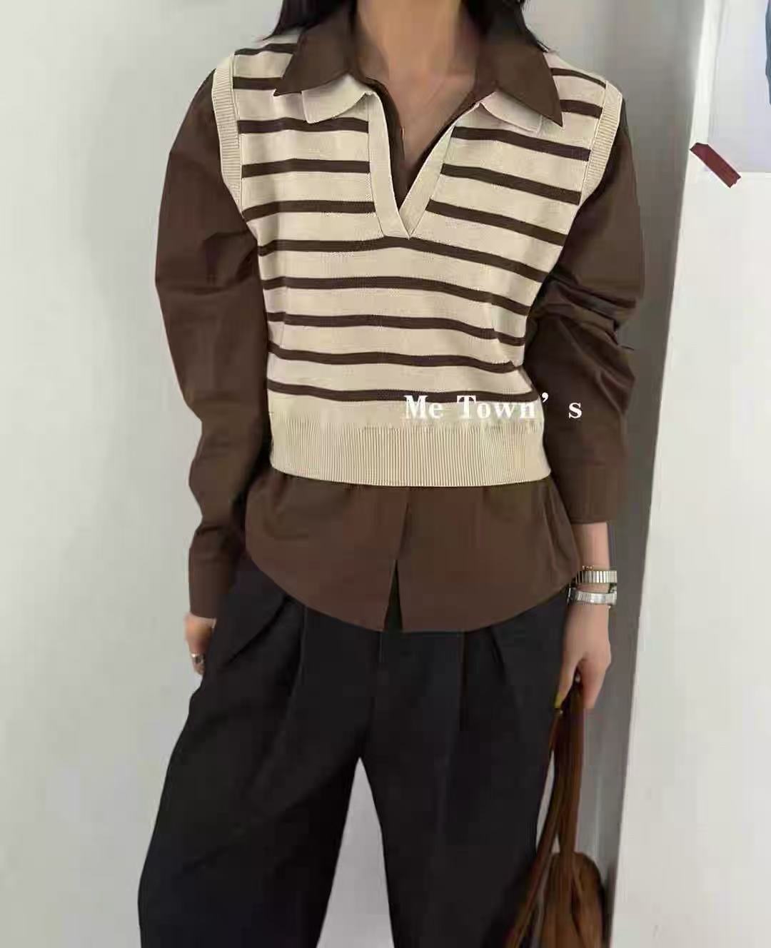 【韩系毛衣】ME TOWN'S S386假两件针织拼衬衫毛衣-喜出