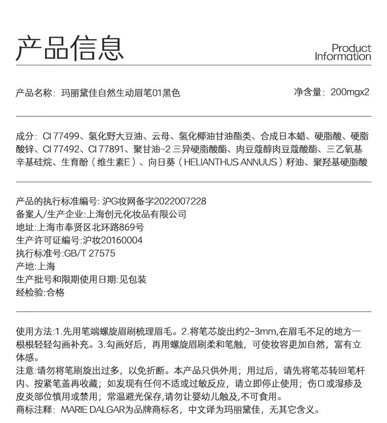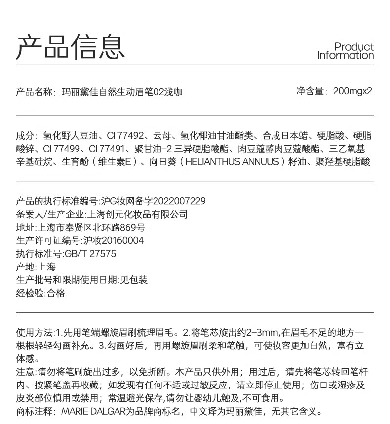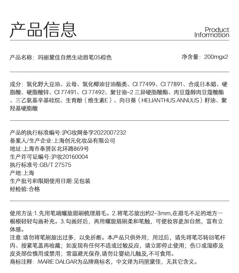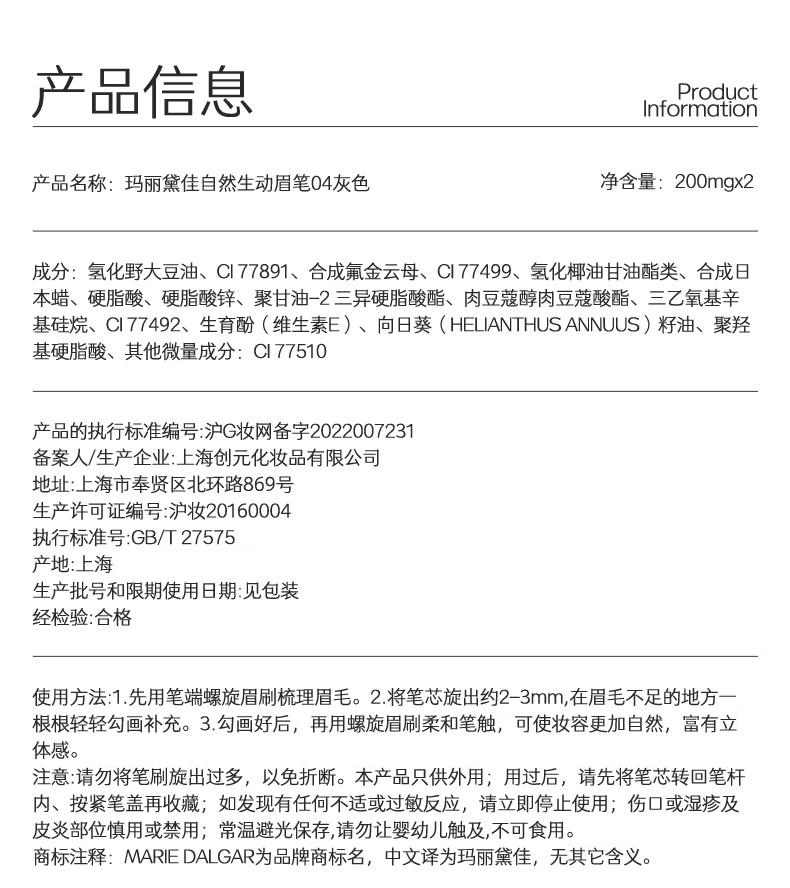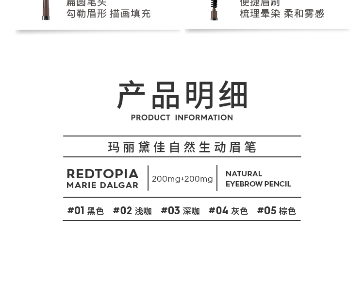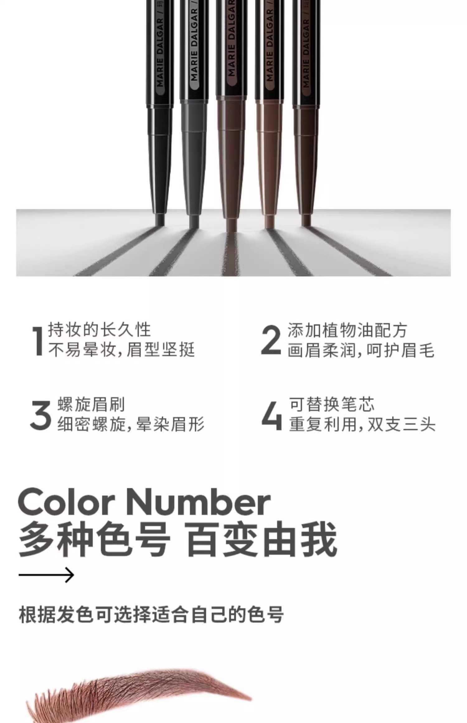 MARIE DALGAR玛丽黛佳 眉笔自然生动持久不易脱色纤细拉线雾眉粉