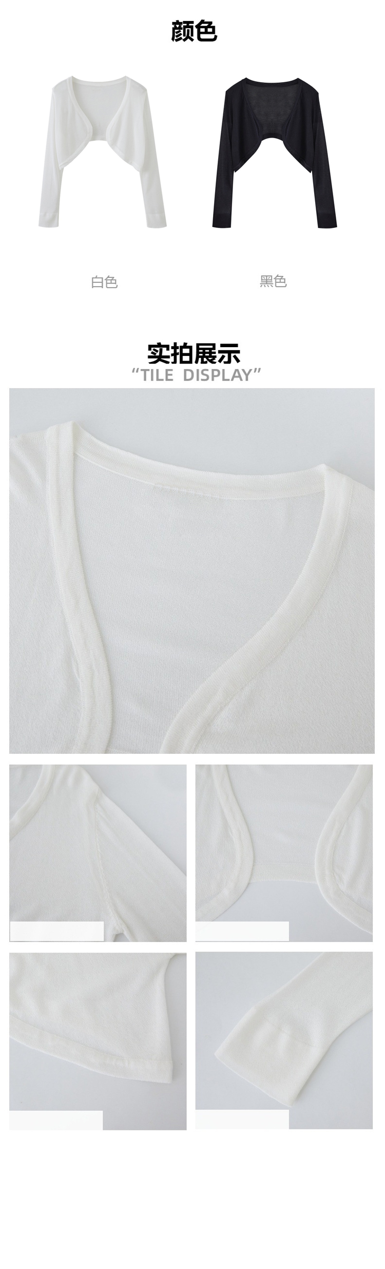 百媚生 小披肩法式小披肩黑白色冰丝针织短款防晒开衫YX013