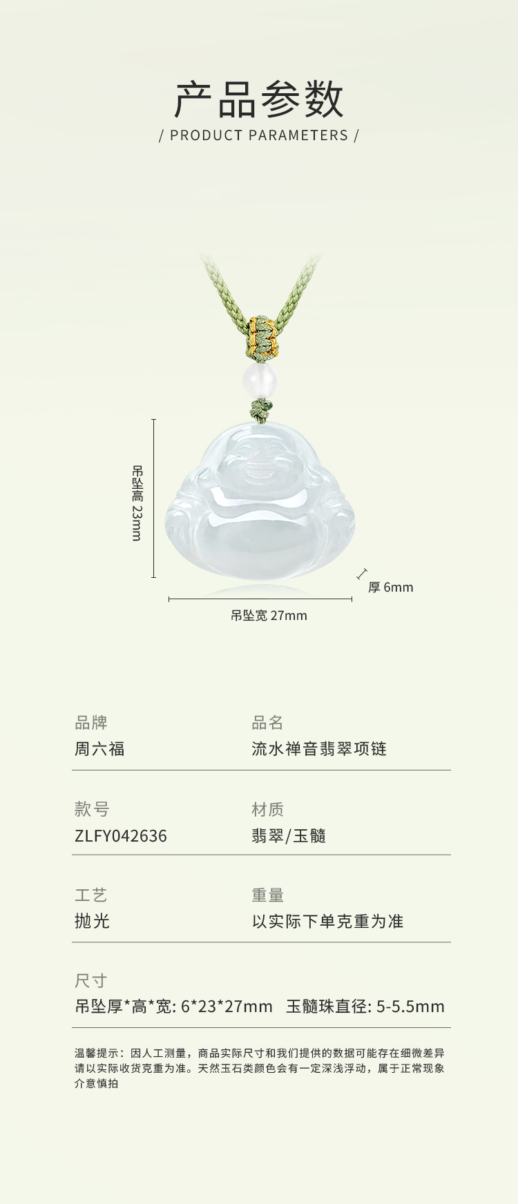 周六福流水禅音翡翠项链