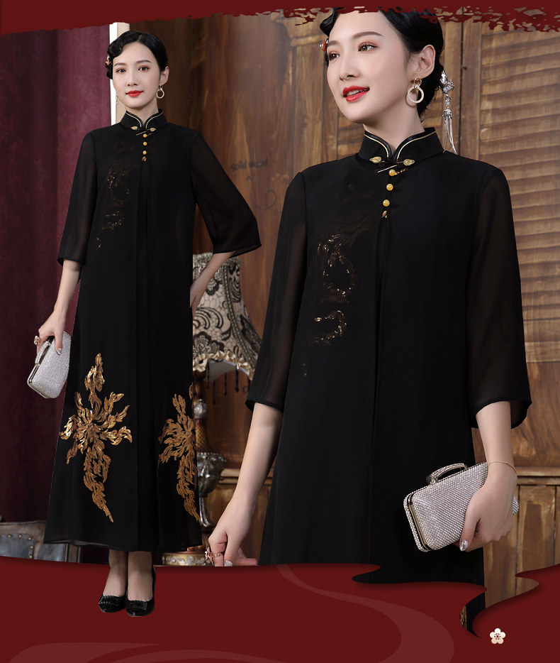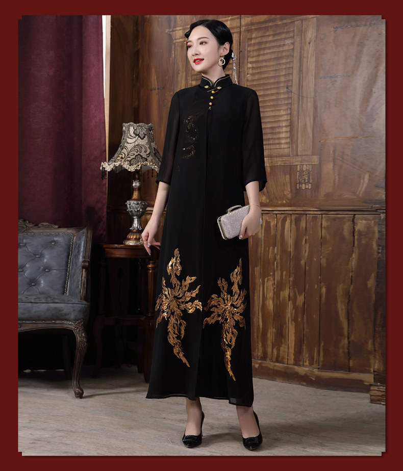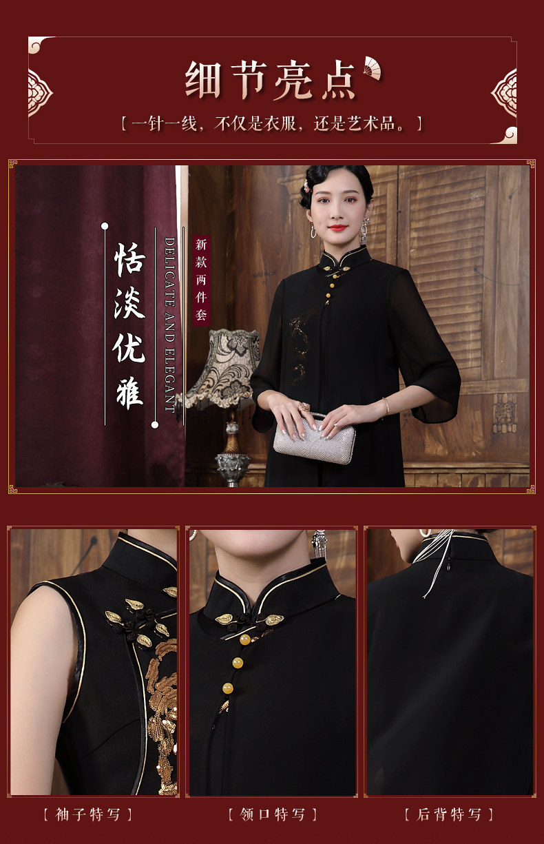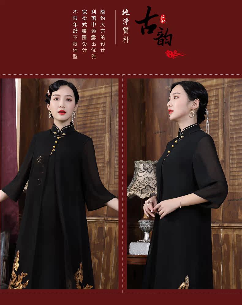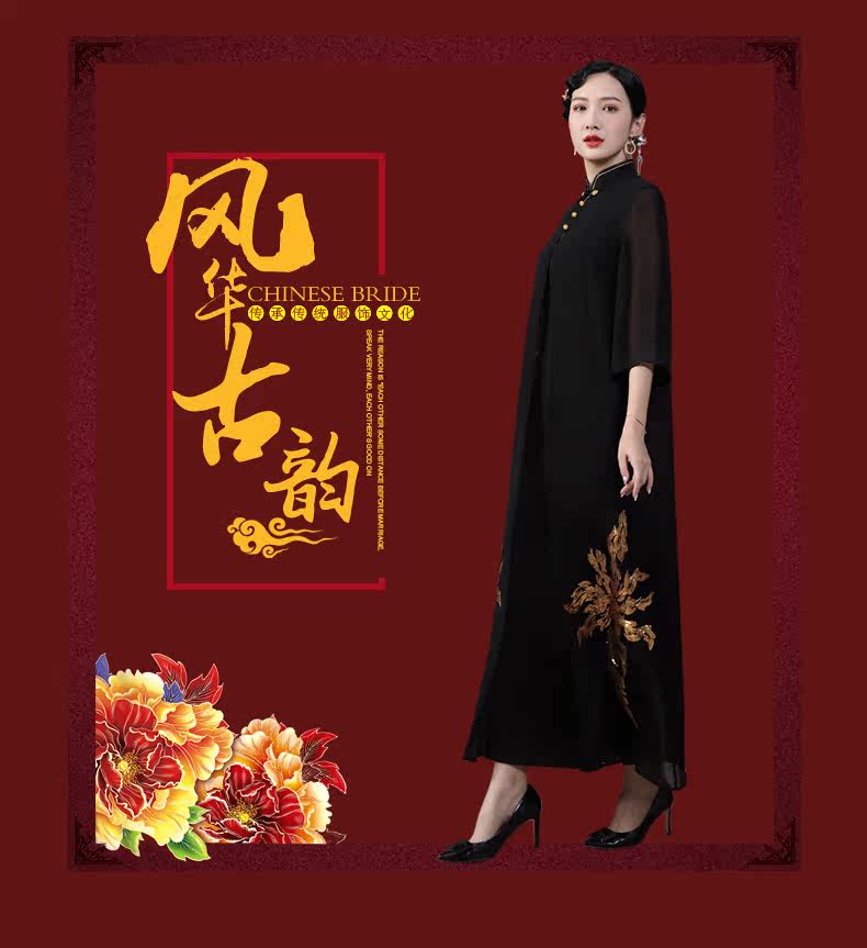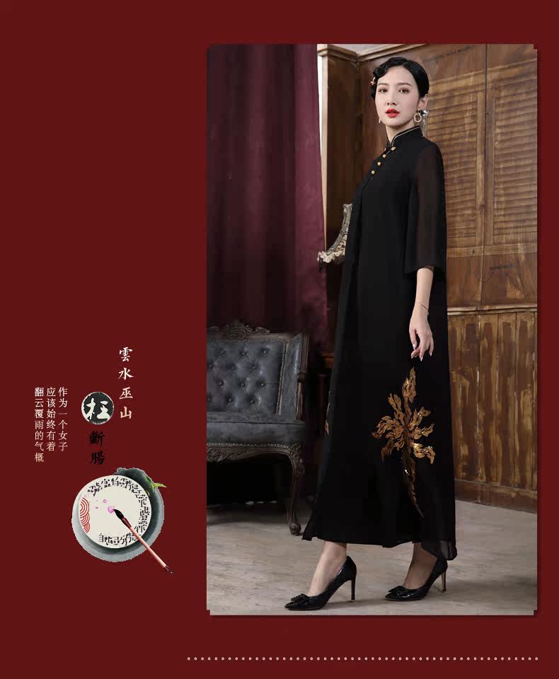 F-PB9052初春新款假两件改良旗袍连衣裙