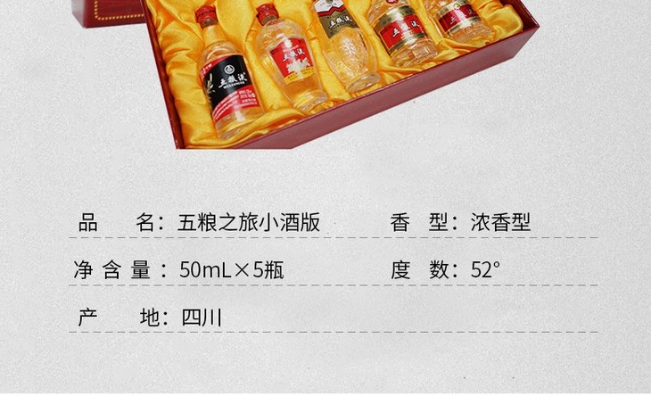 【推荐】52度五粮液五粮之旅小酒版 50ml*5瓶