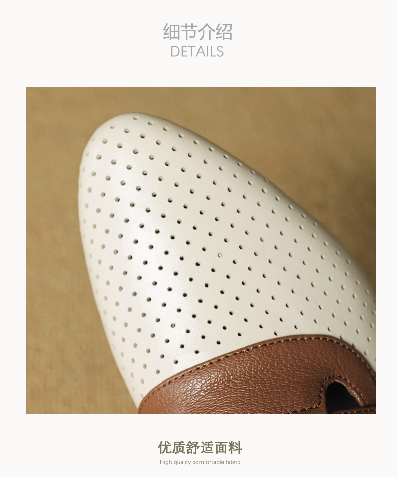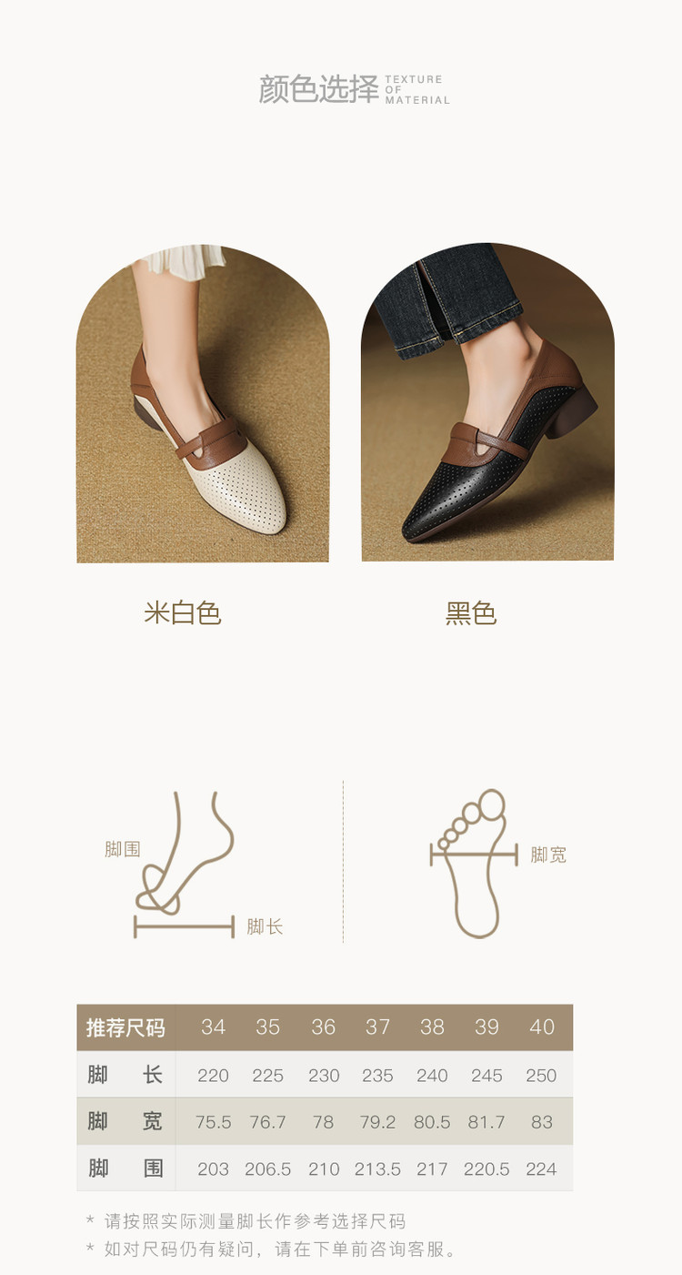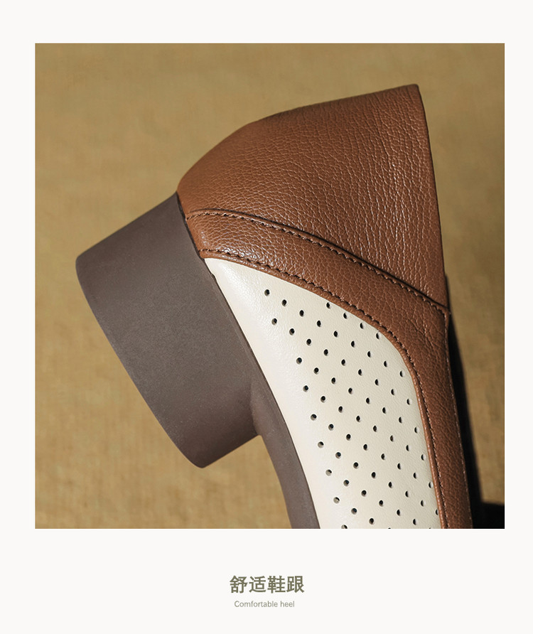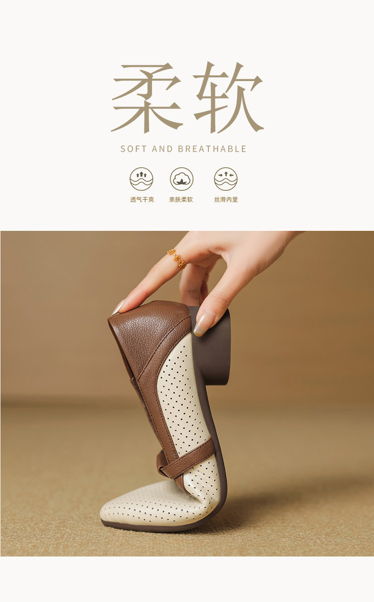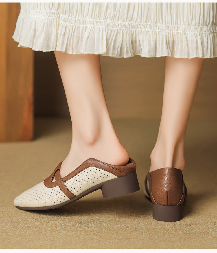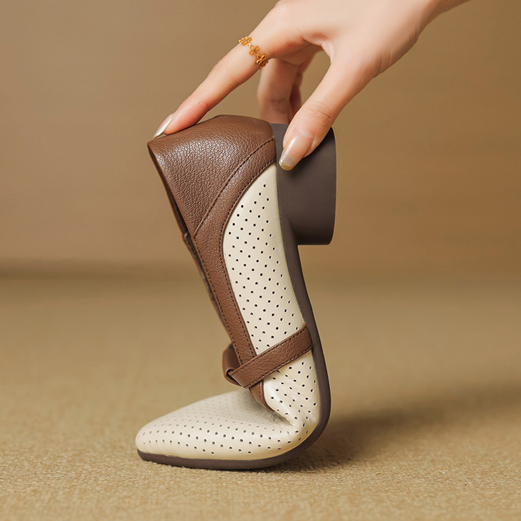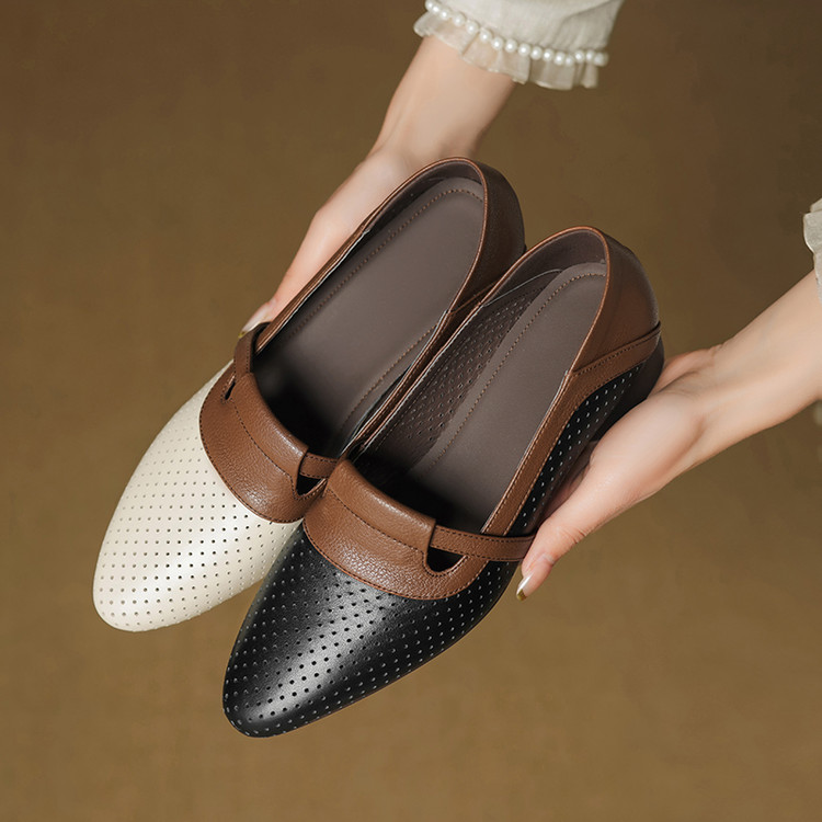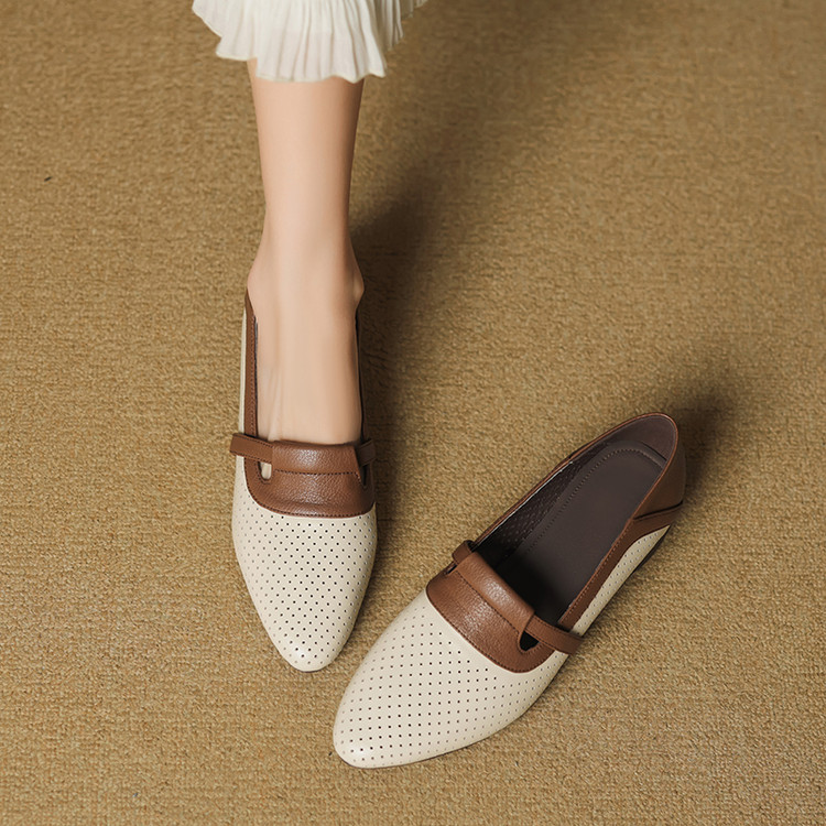 【预售5天】法式拼色软皮低跟单鞋女新款春季圆头中口洞洞鞋一脚蹬小皮鞋YCJX&H-7395