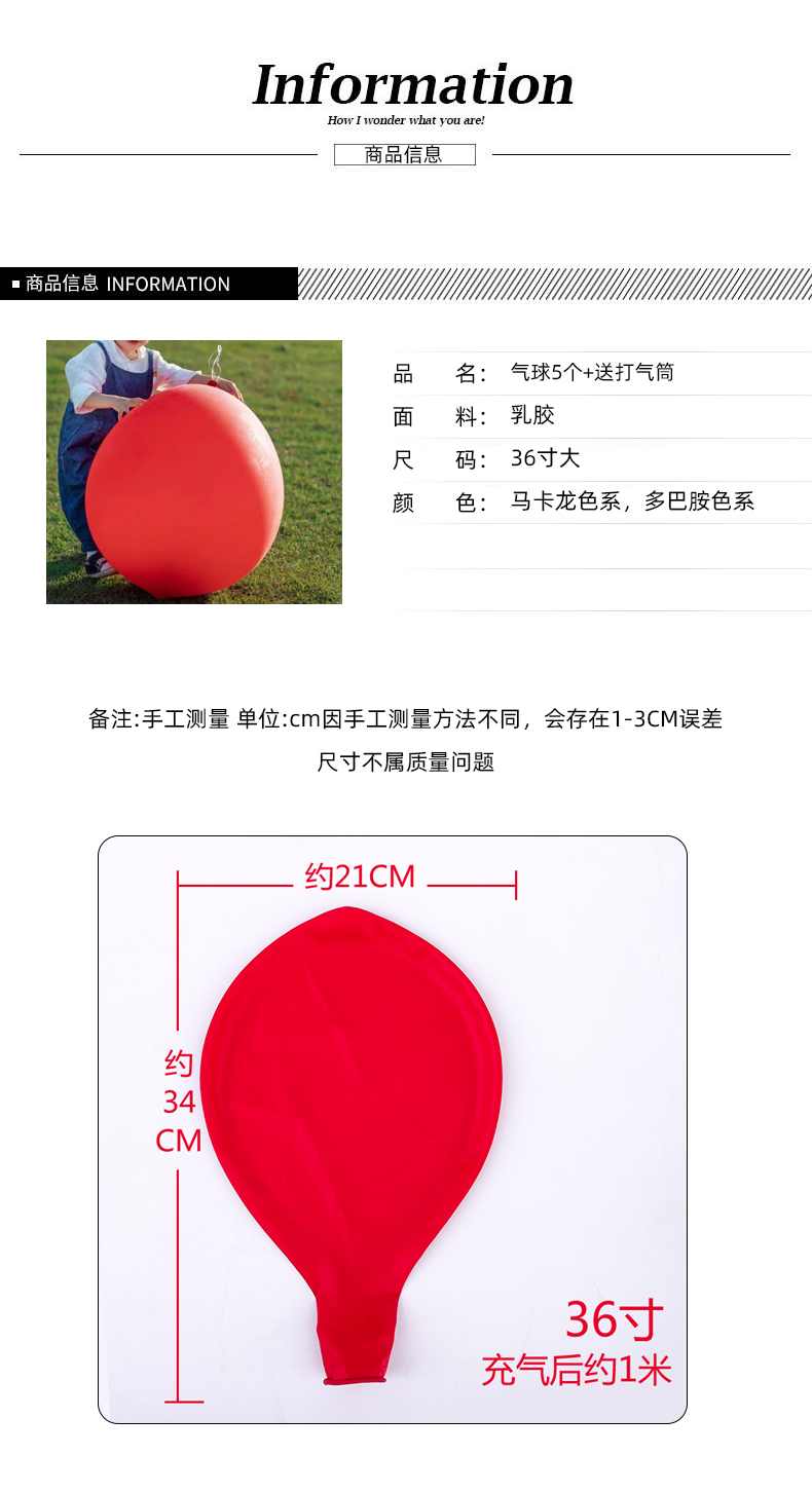 【E】【5个装】显眼包大气球!直径1米!加厚36寸超大号5个气球(送打气筒)露营郊游趴体必备