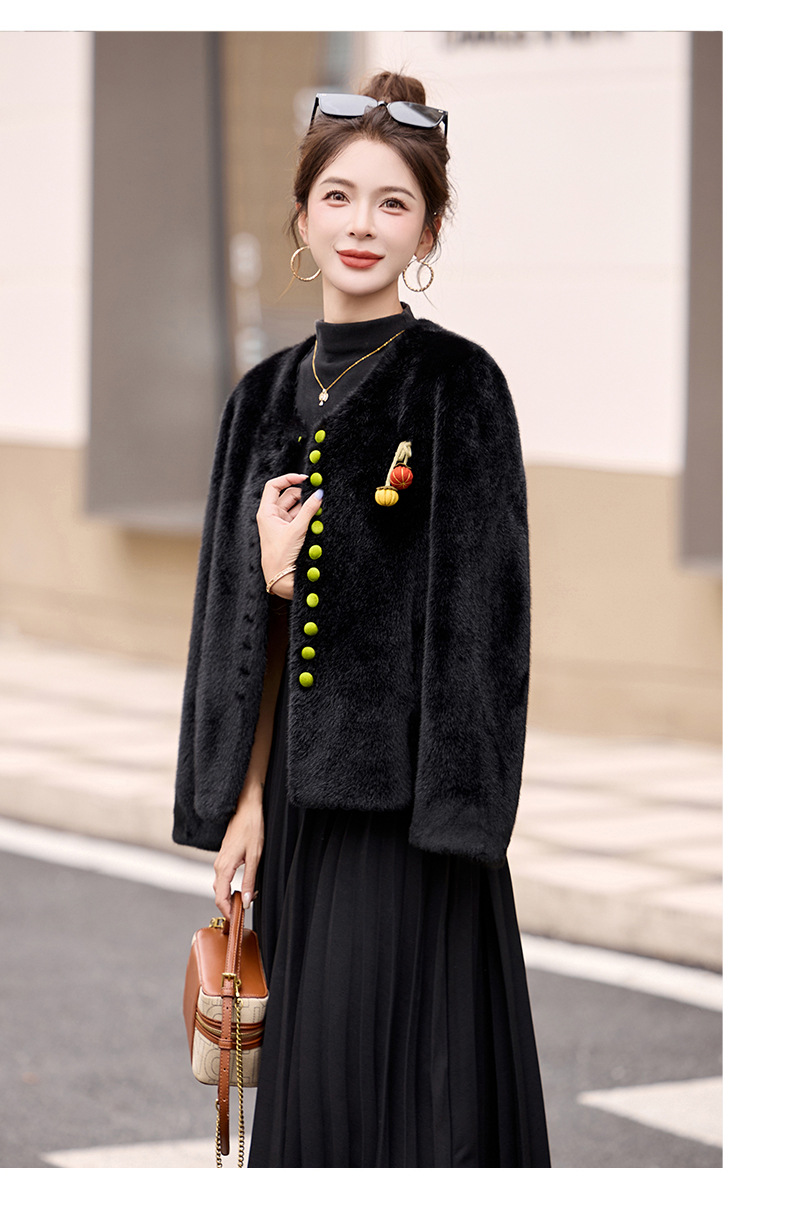 HR YJH5533复古风外套时尚皮草撞色扣子仿皮毛一体大衣 商品图0