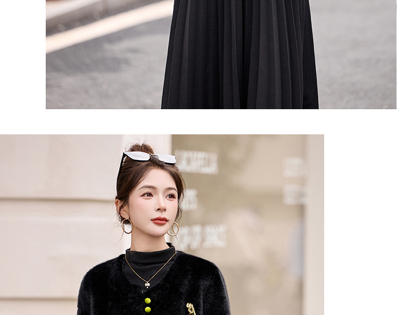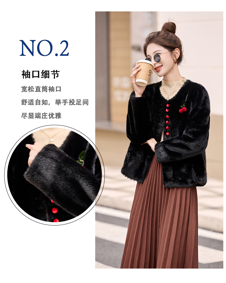 HR YJH5533复古风外套时尚皮草撞色扣子仿皮毛一体大衣 商品图2