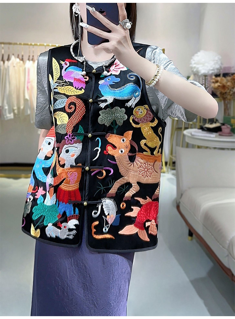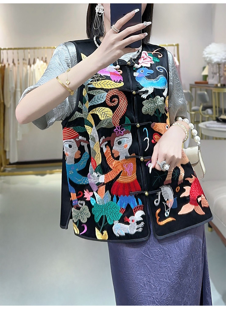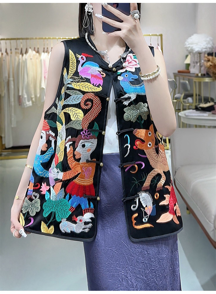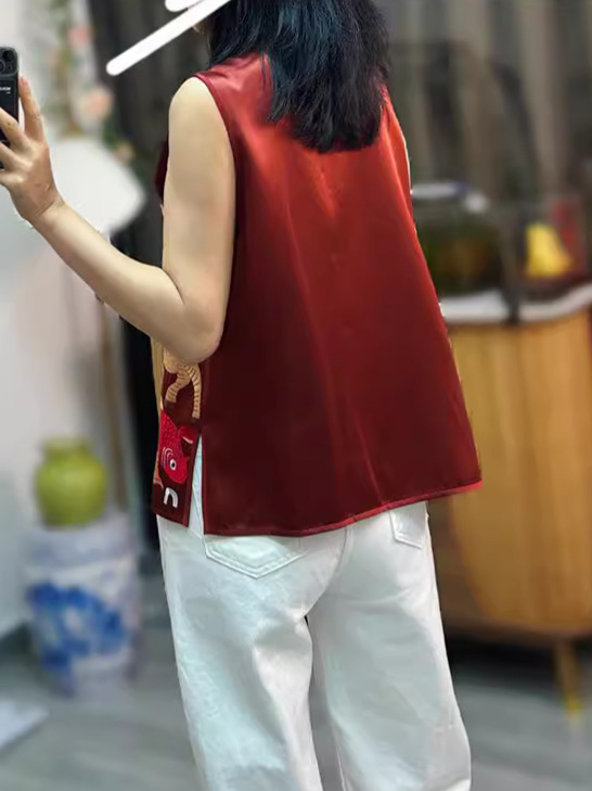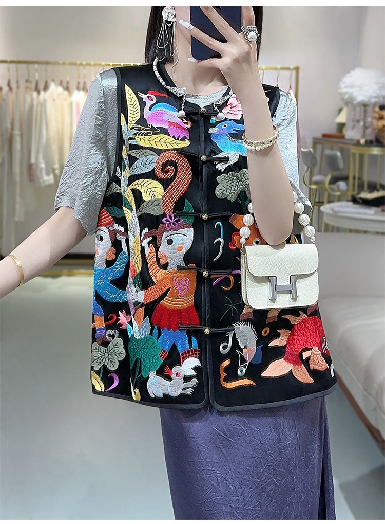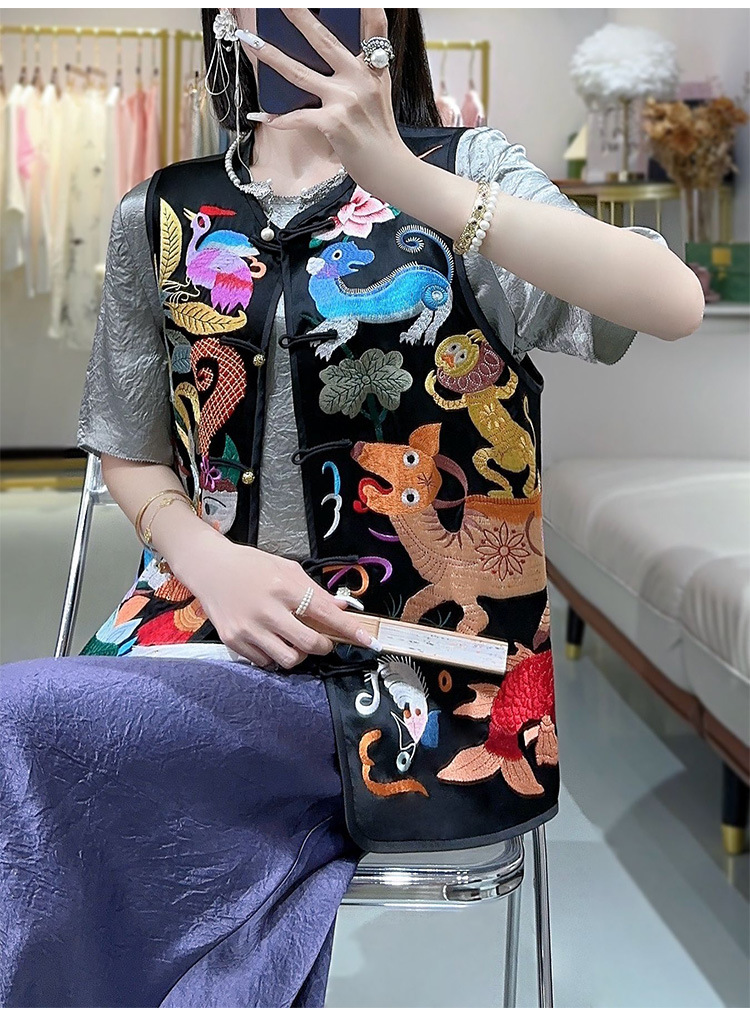 KDS-2536盘扣上衣醋酸马甲高端女装秋季新款中国风中式复古无袖背心马夹