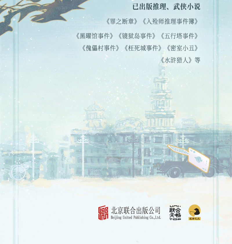 已出版推理、武侠小说:《罪之断章》《黑曜馆事件》《镜狱岛事件》《五行塔事件》《傀儡村事件》《枉死城事件》《密室小丑》《入殓师推理事件簿》《水浒猎人》等。
