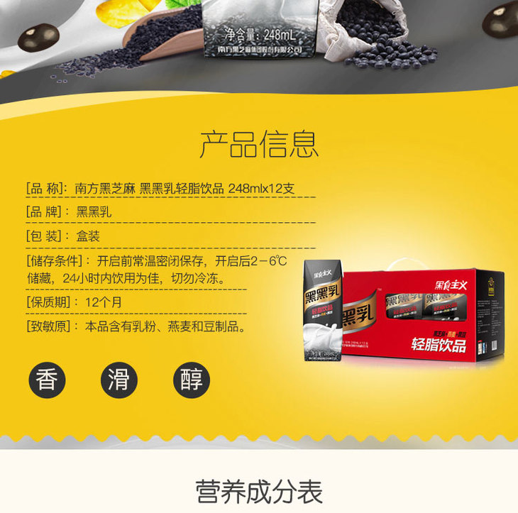 南方黑芝麻 黑黑乳轻脂饮品248ml*12 新老包装随机发货