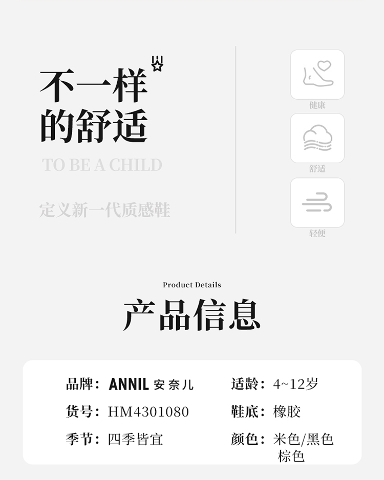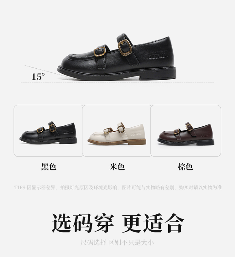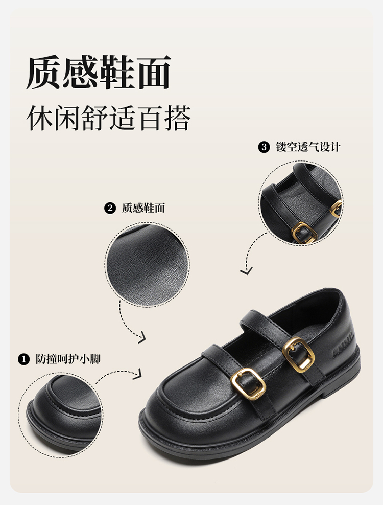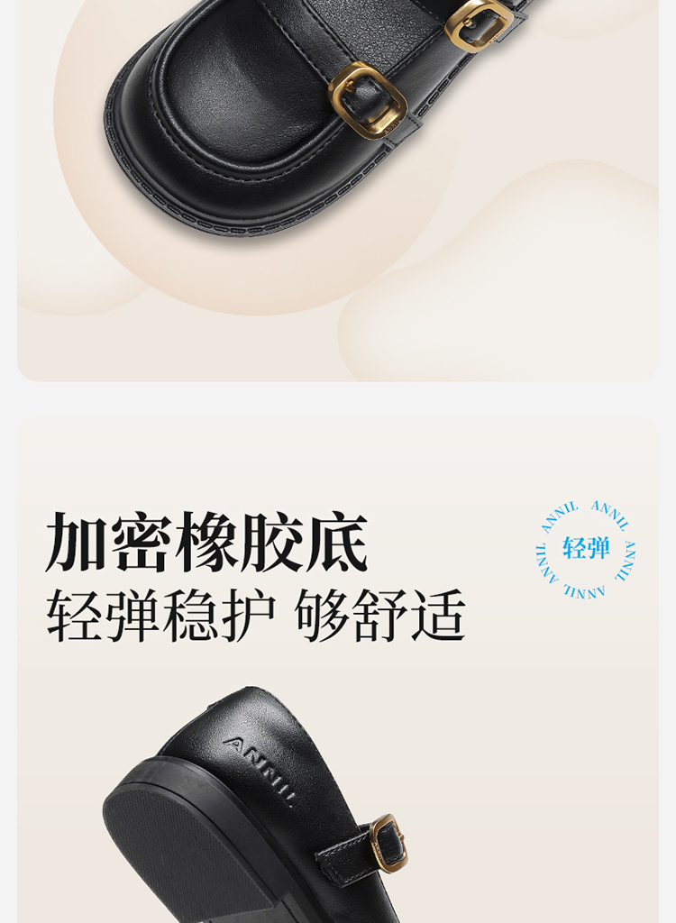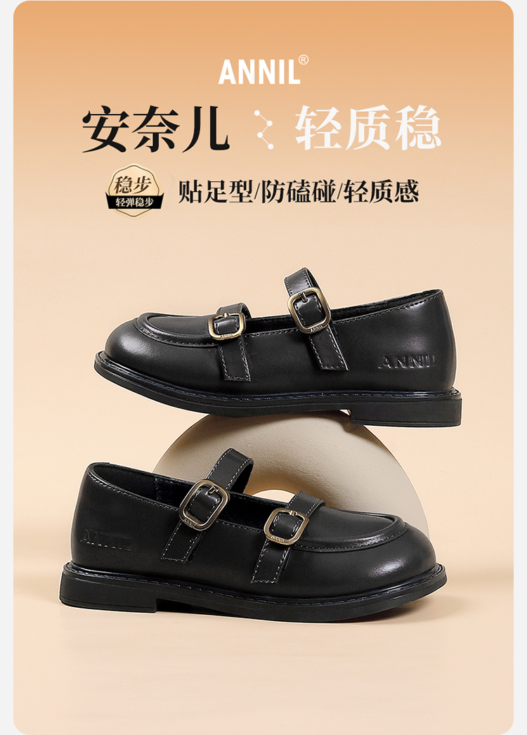 ANNIL/安奈儿童鞋浅口亲子鞋时尚百搭小皮鞋春秋软底玛丽珍公主鞋HM4301080