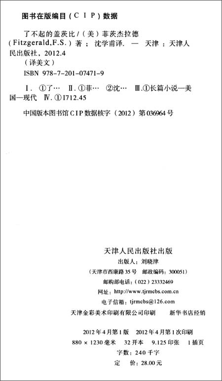 作者:(美国)菲茨杰拉德(Fitzgerald F.S.) 译者:沈学甫