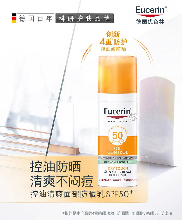 【第2代】优色林控油清爽防晒乳SPF50+隔离防晒敏感肌面部身体防紫外线50ml(效期2027年3月后)