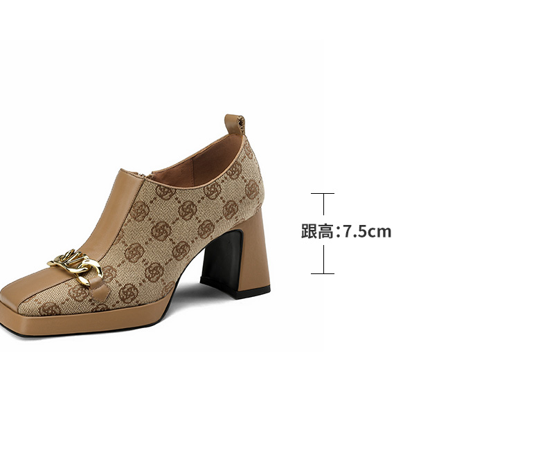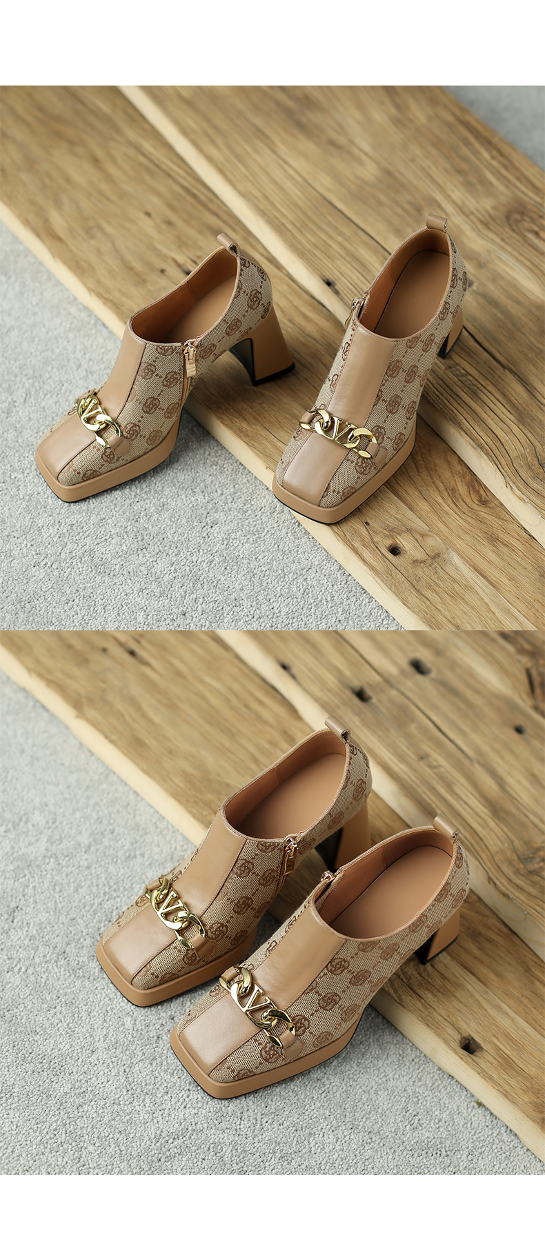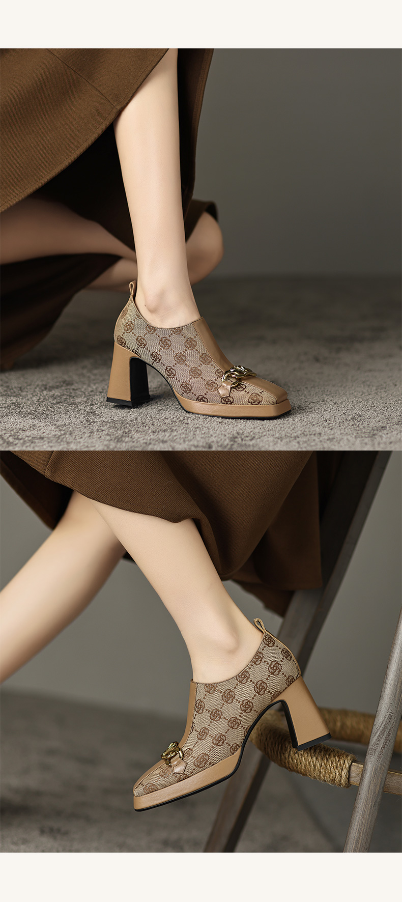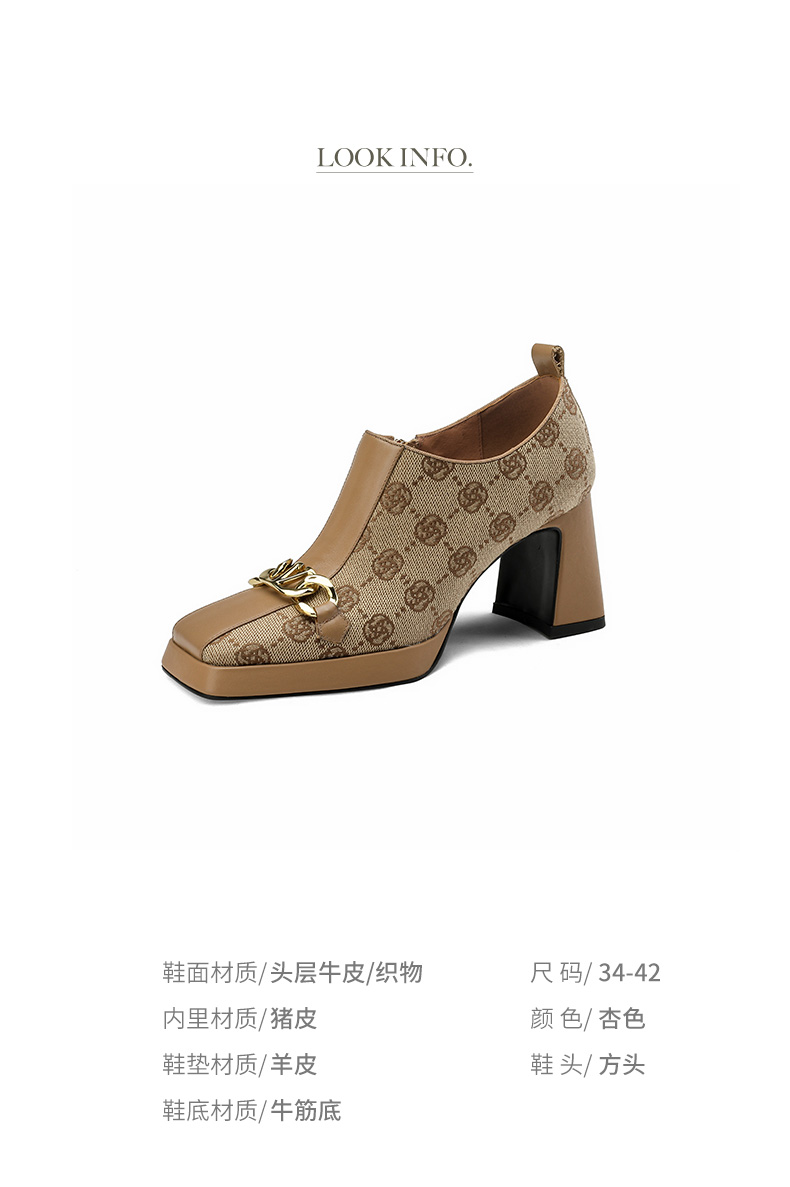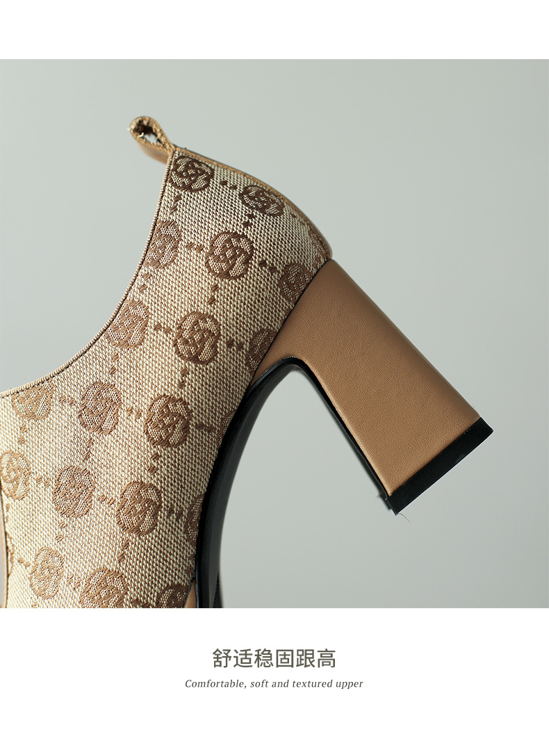 复古优雅,真皮拼接粗跟高跟鞋DP-9182