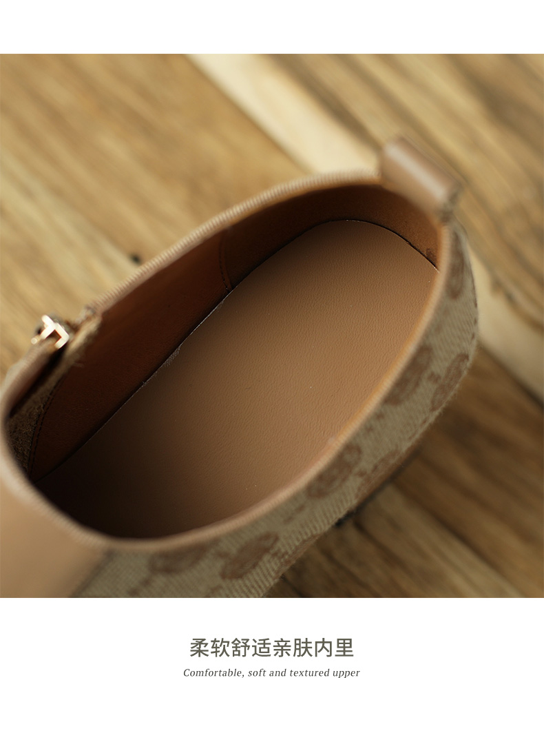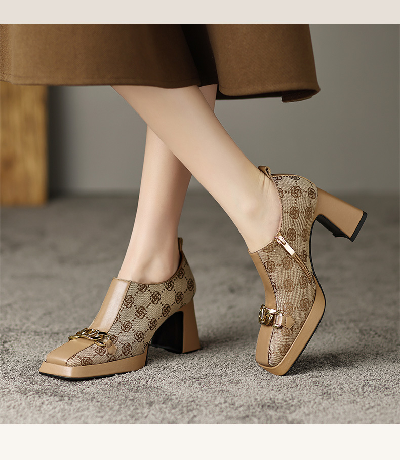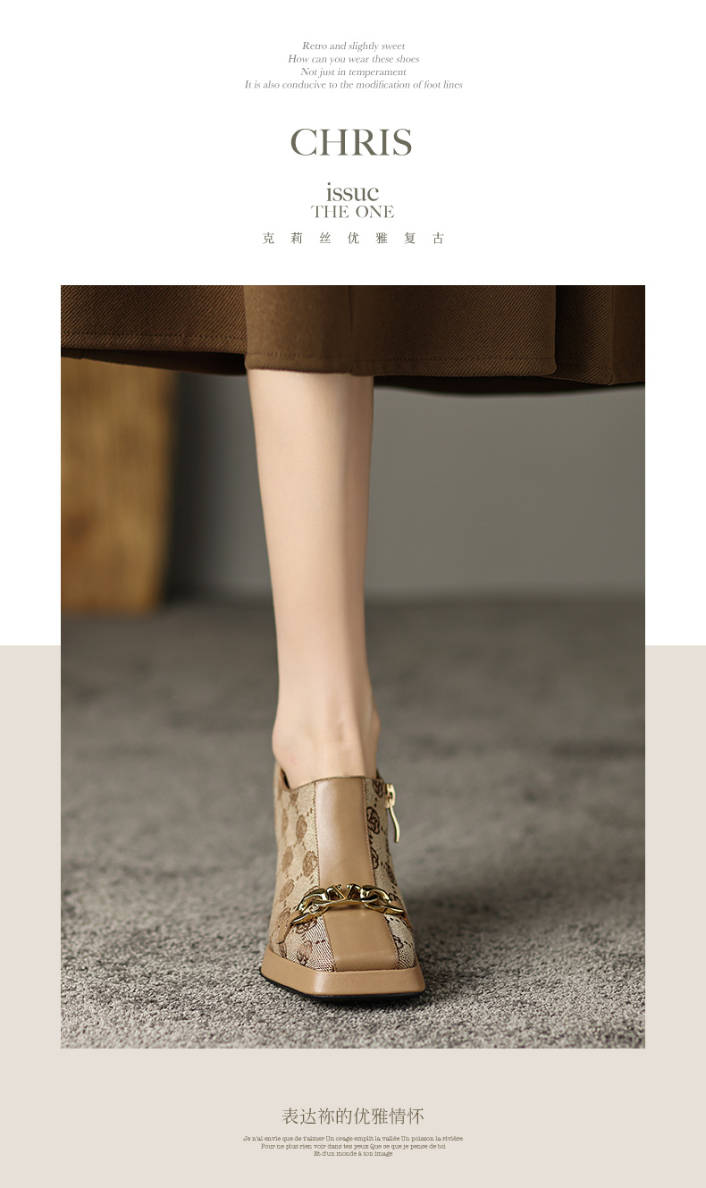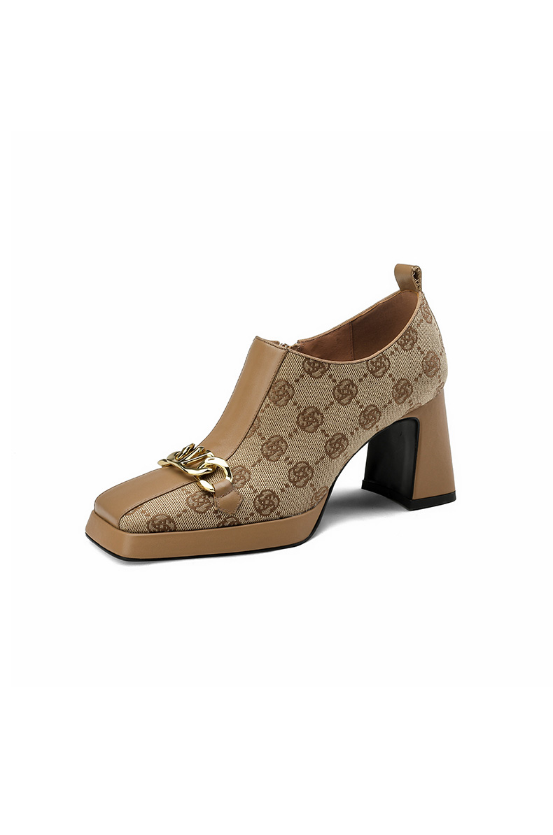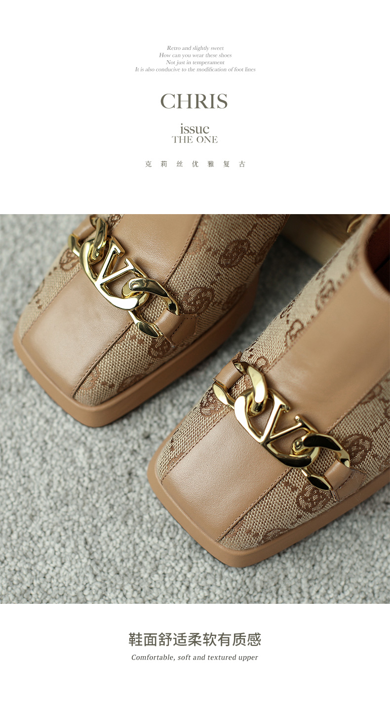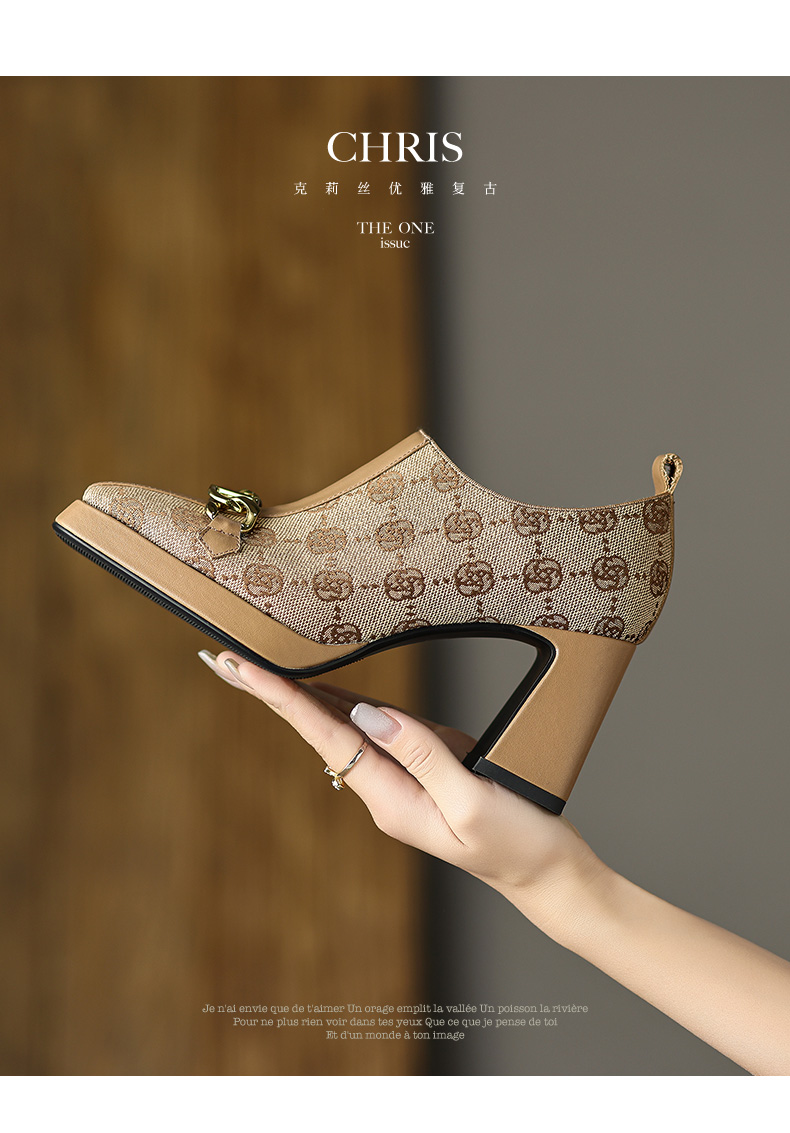 复古优雅,真皮拼接粗跟高跟鞋DP-9182