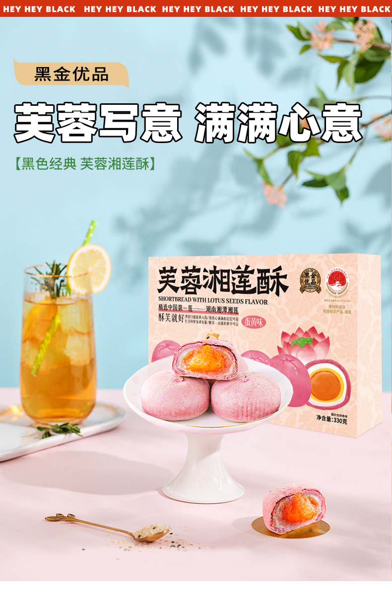 黑色经典x超吉心意芙蓉湘莲酥(蛋黄味/牛油果蛋黄味)330g/盒
