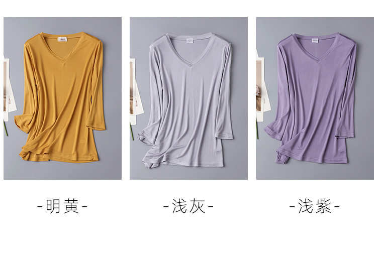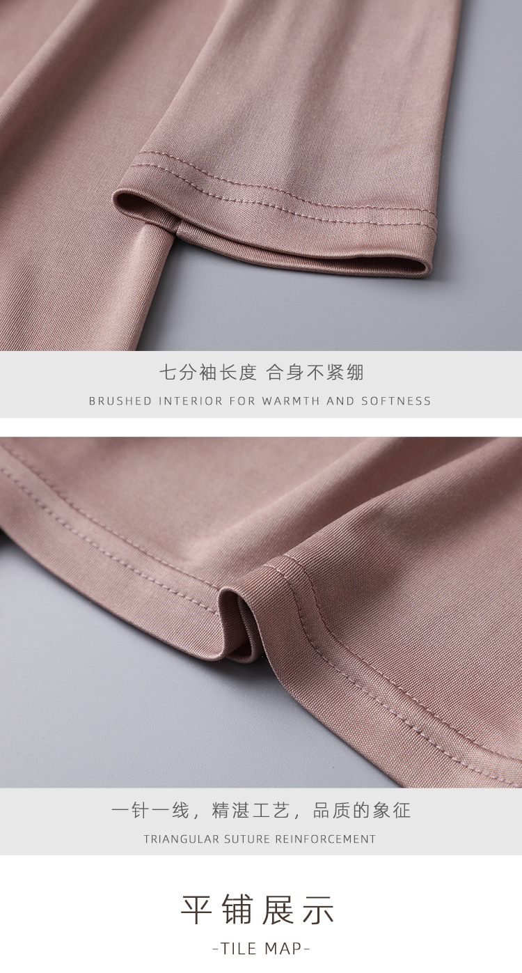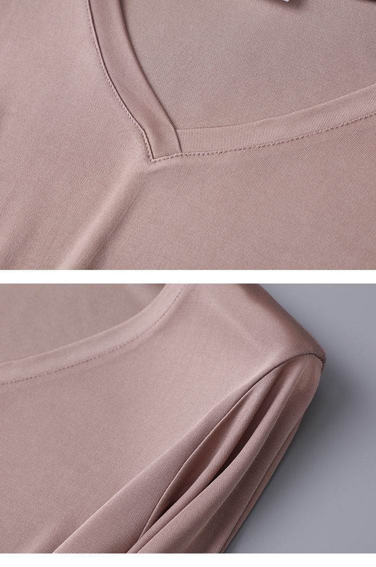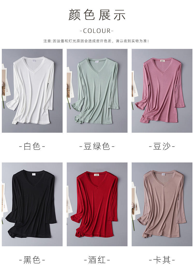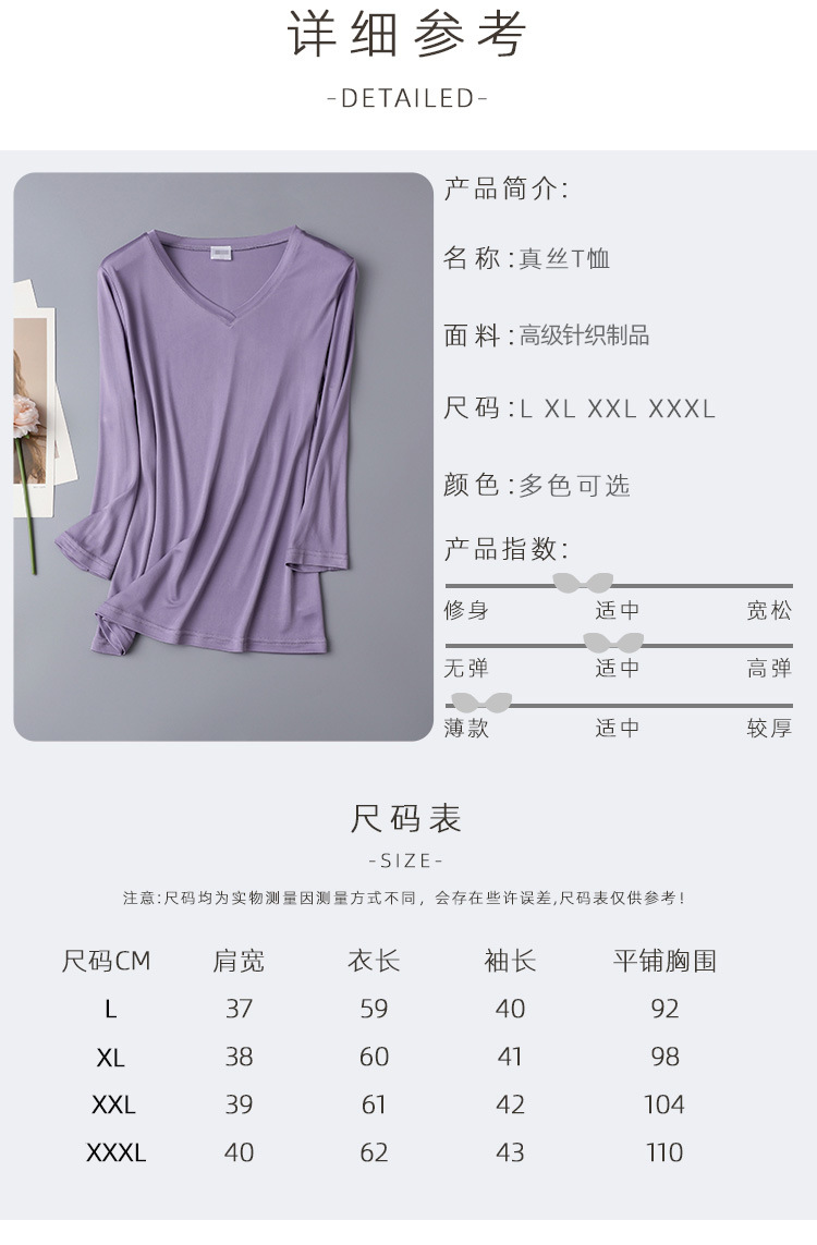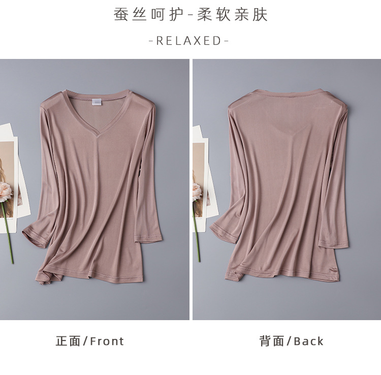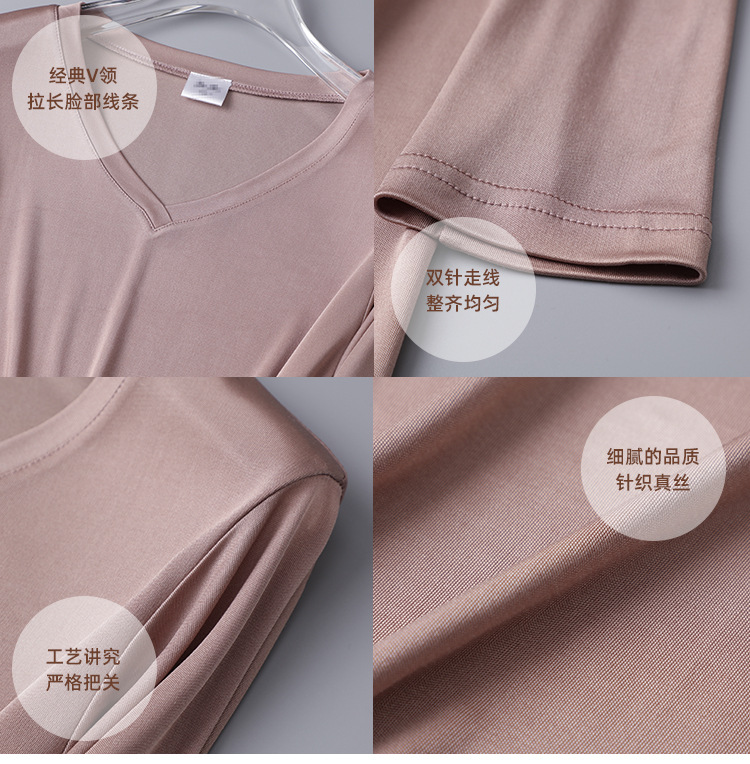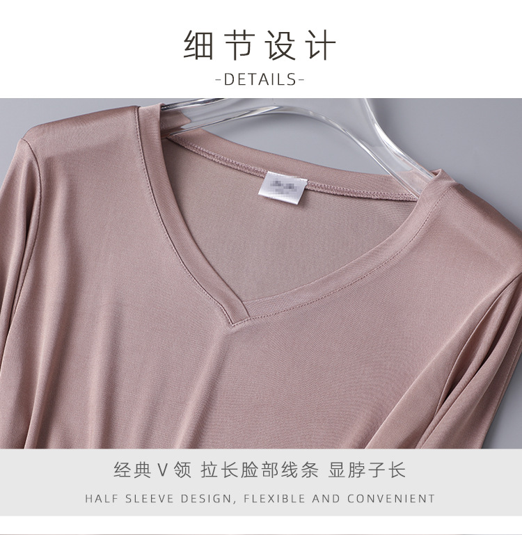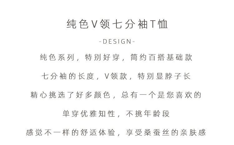 丁摩 真丝纯色V领7分袖遮肉显瘦桑蚕丝亲肤透气T恤上衣TX-019