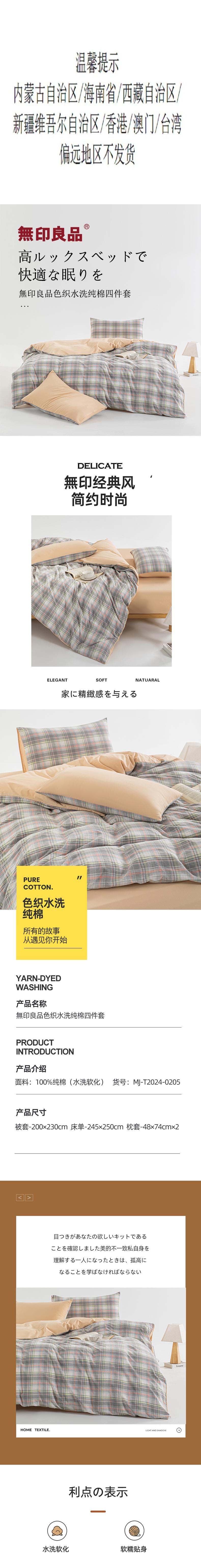 無印良品 良品水洗色织纯棉四件套霍格灰200×230(±2)cm MJ-T2024-0205