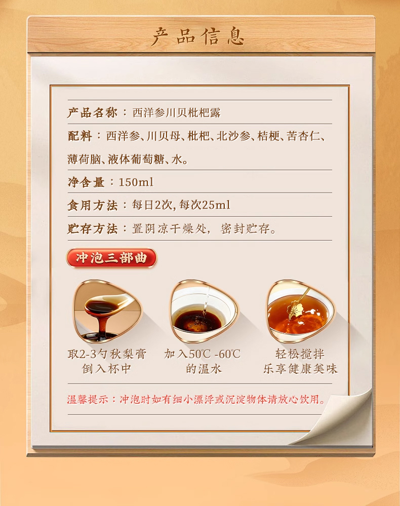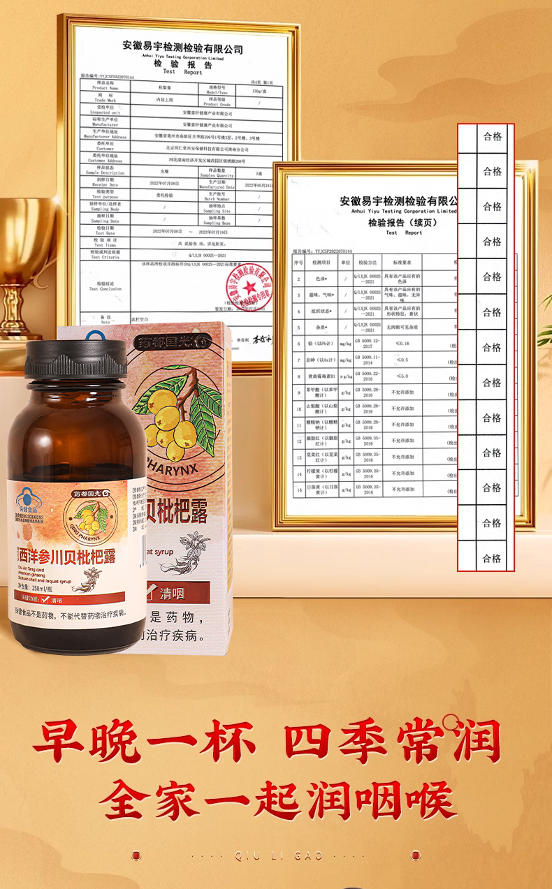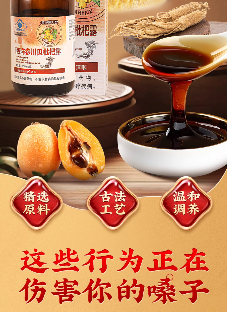 西洋参川贝枇杷露 105ml*3瓶 蓝帽认证 辅助清咽 四季常润