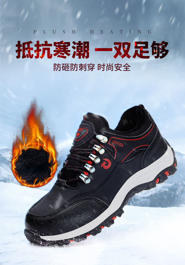 冬季加绒保暖劳保鞋男防水超纤皮防砸防刺穿橡胶大底耐磨舒适