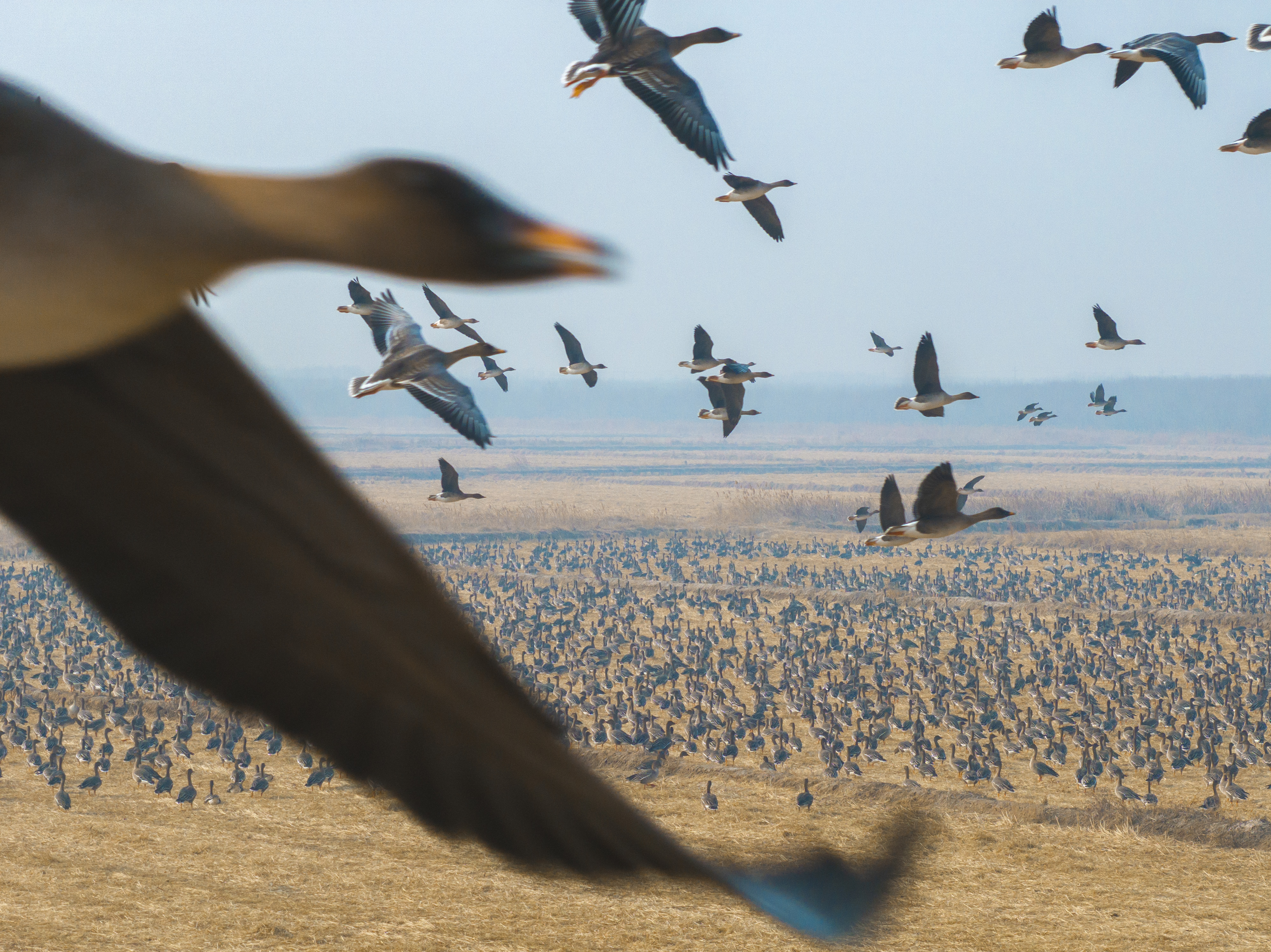 候鸟重要栖息地,万千候鸟集群飞舞,与湿地环境相映,是拍摄候鸟动态的优质点位。