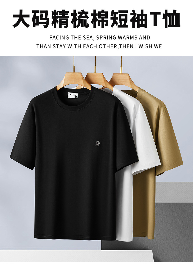 【精梳棉】【DX】大依优型大码短袖T恤圆领休闲百搭半袖上衣夏季男士加肥大码宽松棉胖子