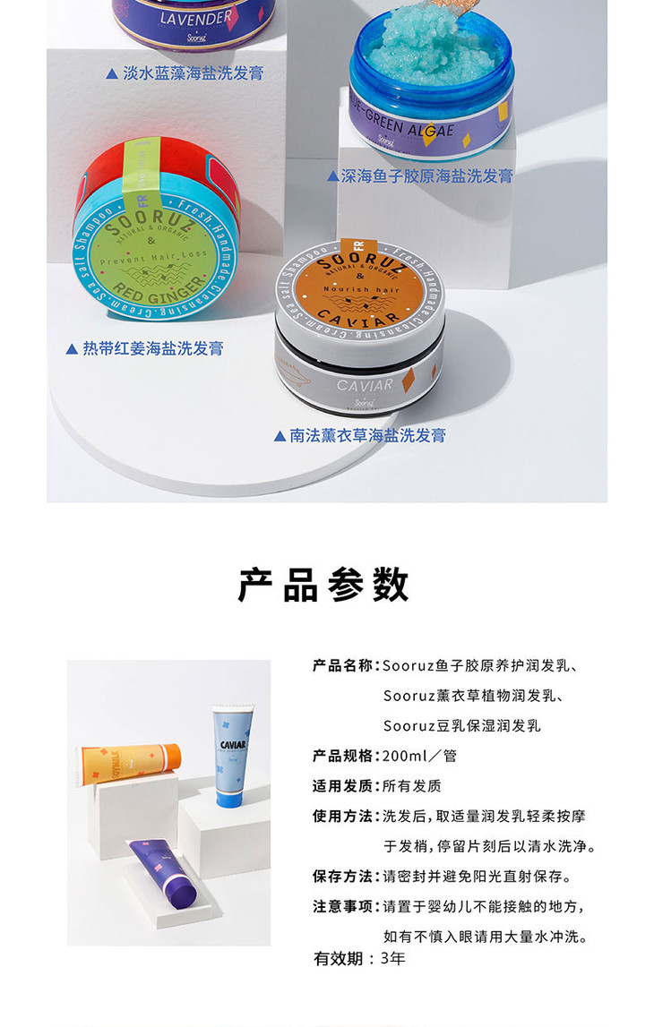 SOORUZ海盐洗发膏&润发乳控油蓬松持久留香修复滋润适合多种发质