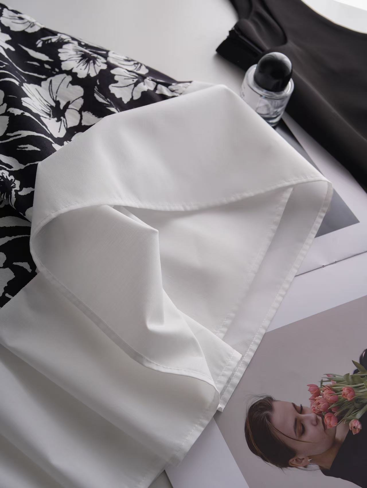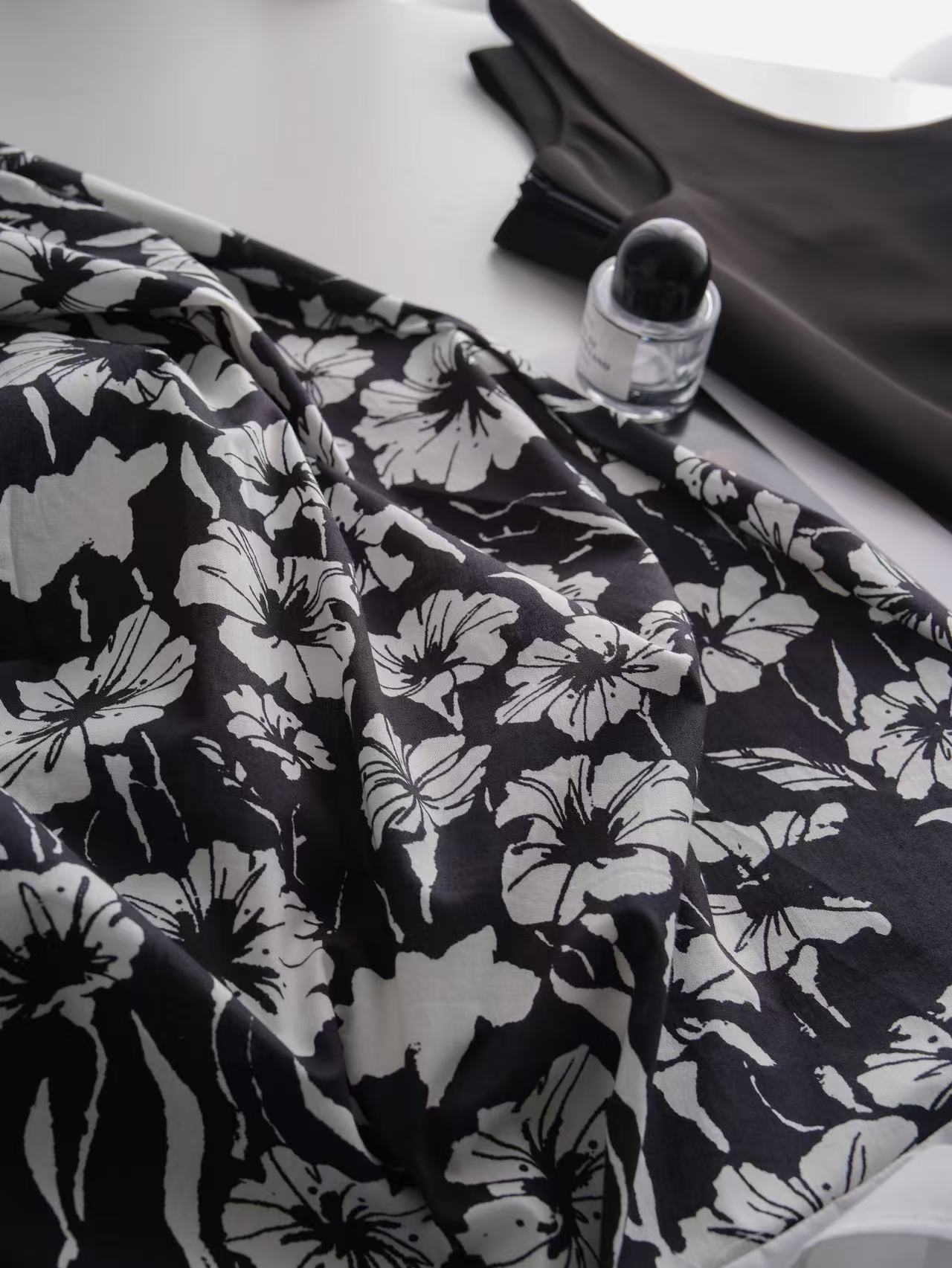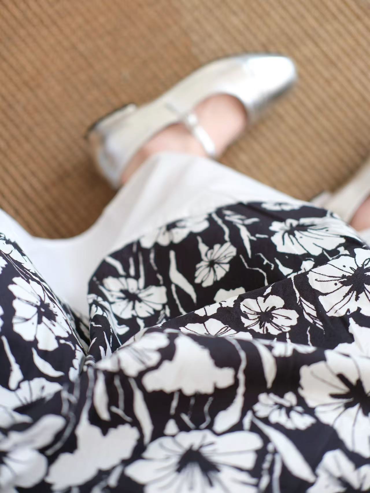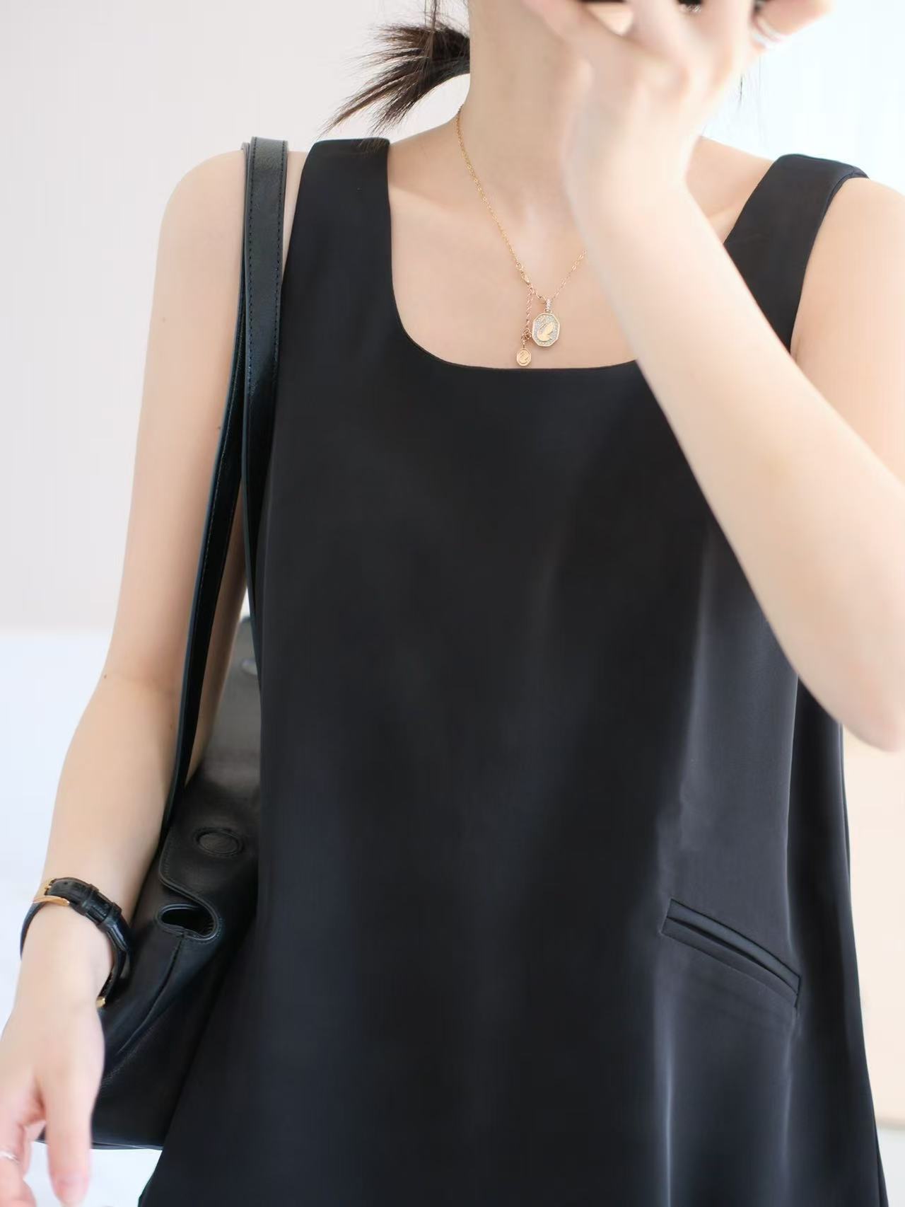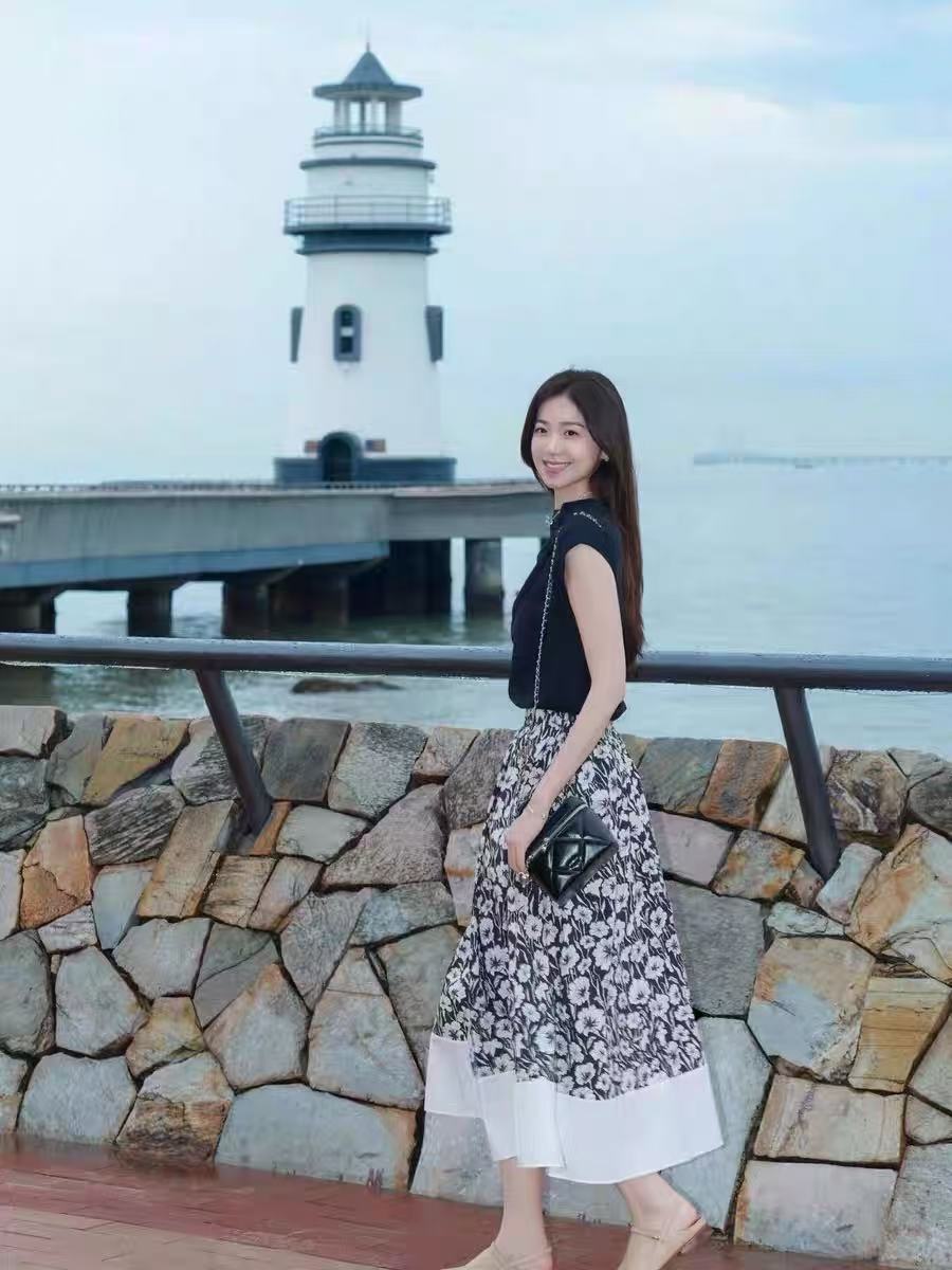 3-5天发【法式印花套装裙】 360度伞状印花半身裙➕黑色大u领背心上衣 面料爽滑有垂感,穿着舒适清凉!