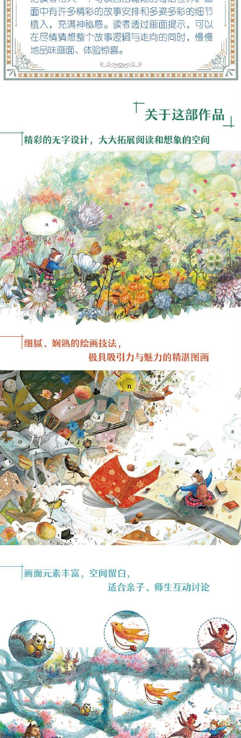 《小狐狸的旅行/青铜葵花图画书奖获奖作品》是一部充满诚意与魅力,展现出丰富想象力与浓浓诗意的无字书作品,无字设计更加拓展了读者的阅读空间。作品画面张力饱满,把读者带入一个可以自由翱翔的奇幻世界。画面中有许多精彩的故事安排和多姿多彩的细节植入,充满神秘感。读者透过画面提示,可以在尽情猜想整个故事逻辑与走向的同时,慢慢地品味画面、体验惊喜。