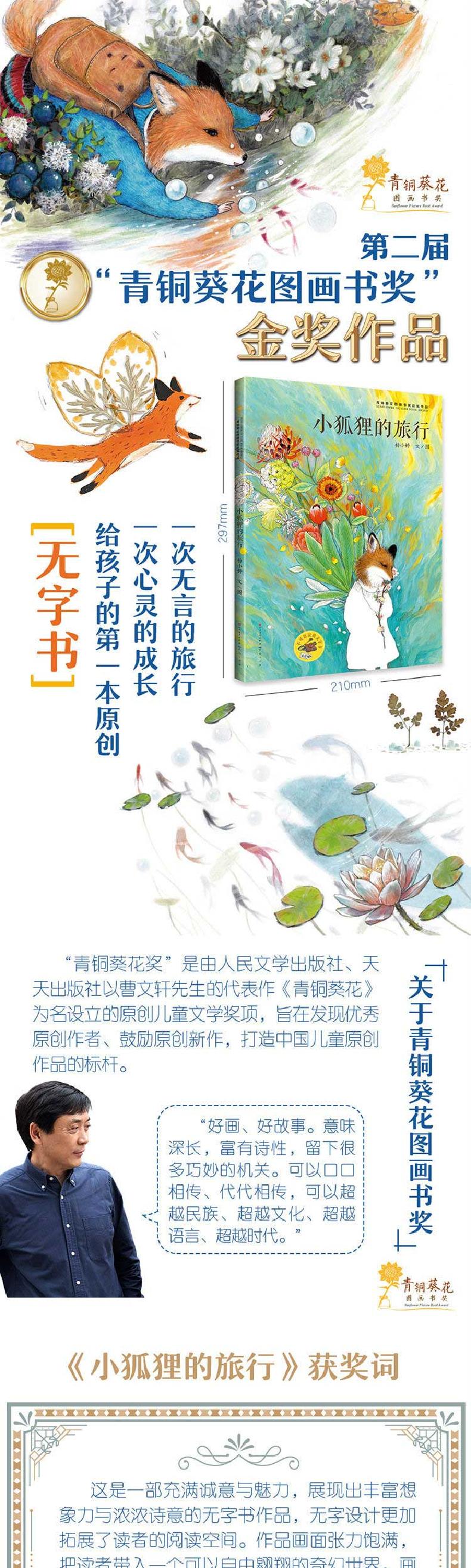 《小狐狸的旅行》获第二届“青铜葵花图画书奖”金奖。