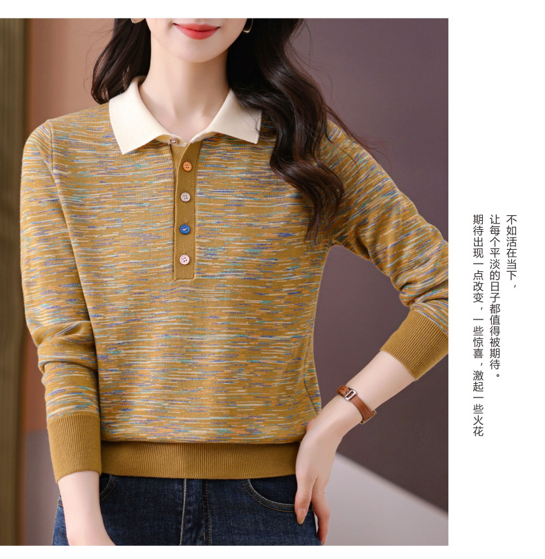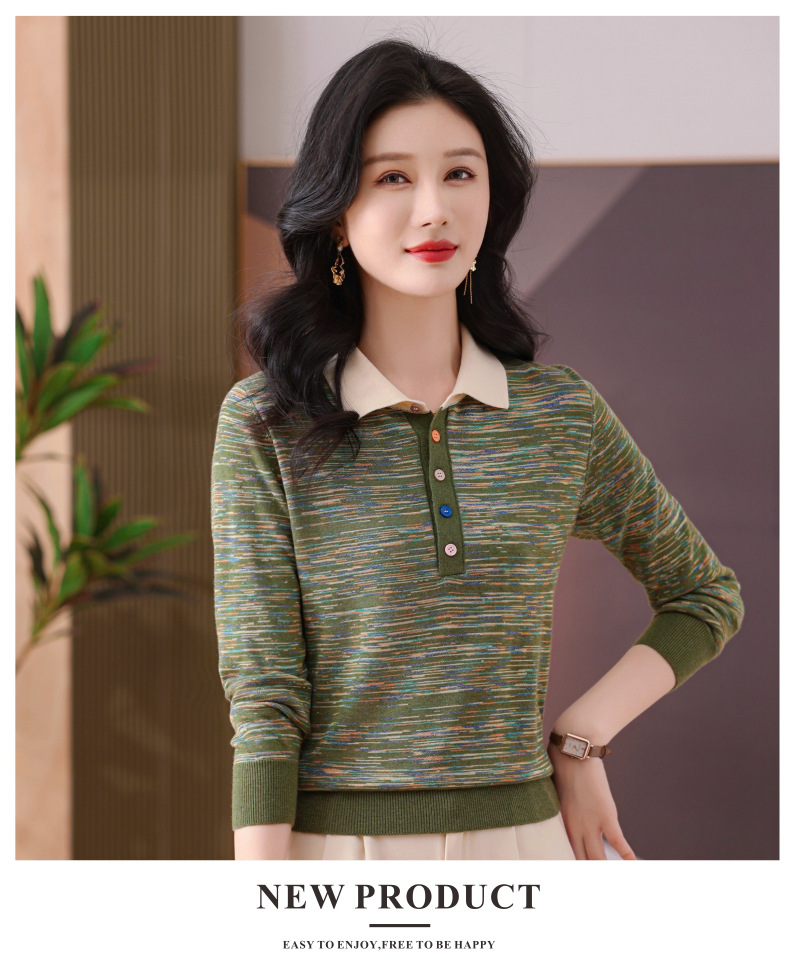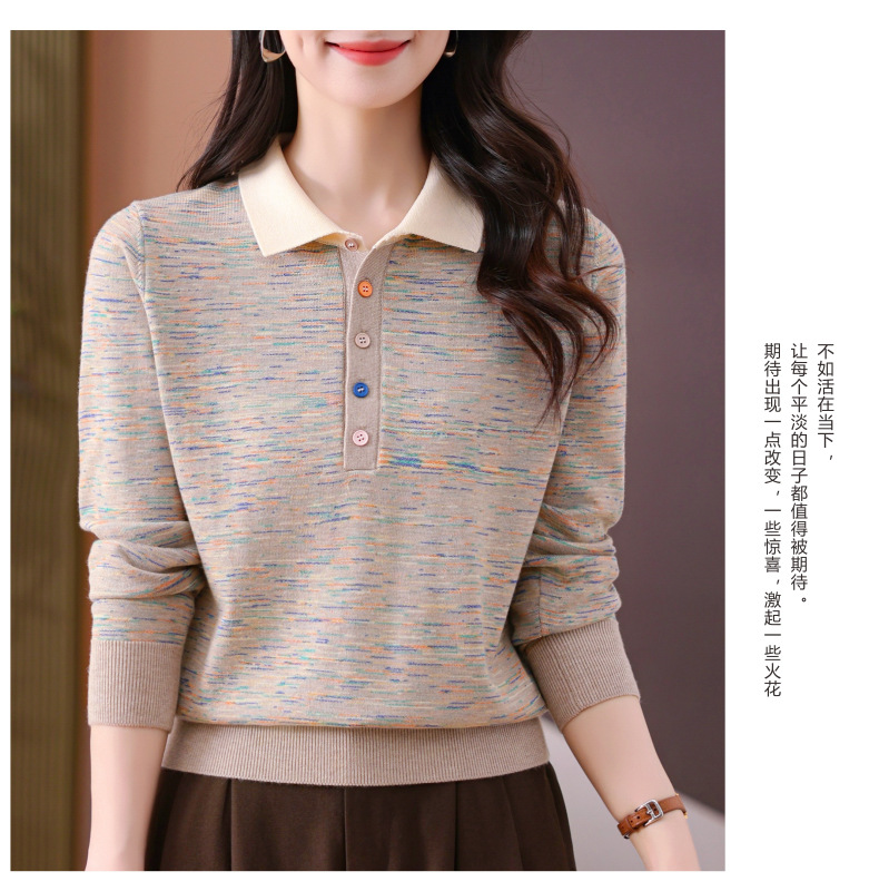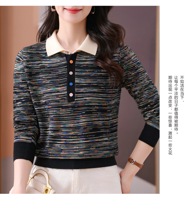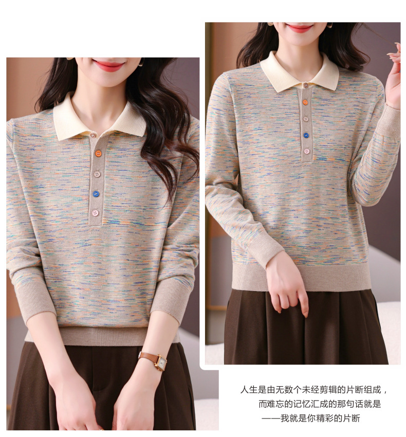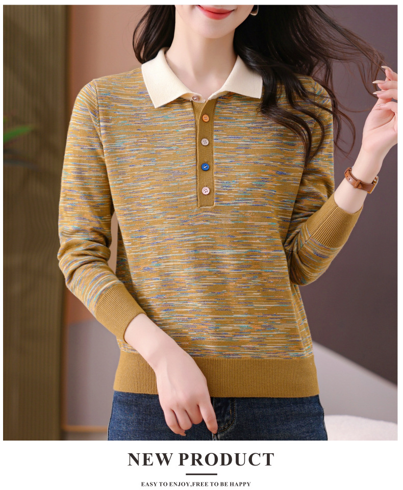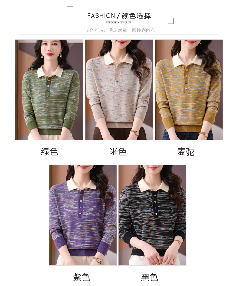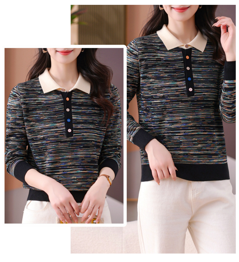 CC-101-56253春秋新款女长袖韩版花色百搭娃娃领针织毛衣百搭洋气薄款上衣