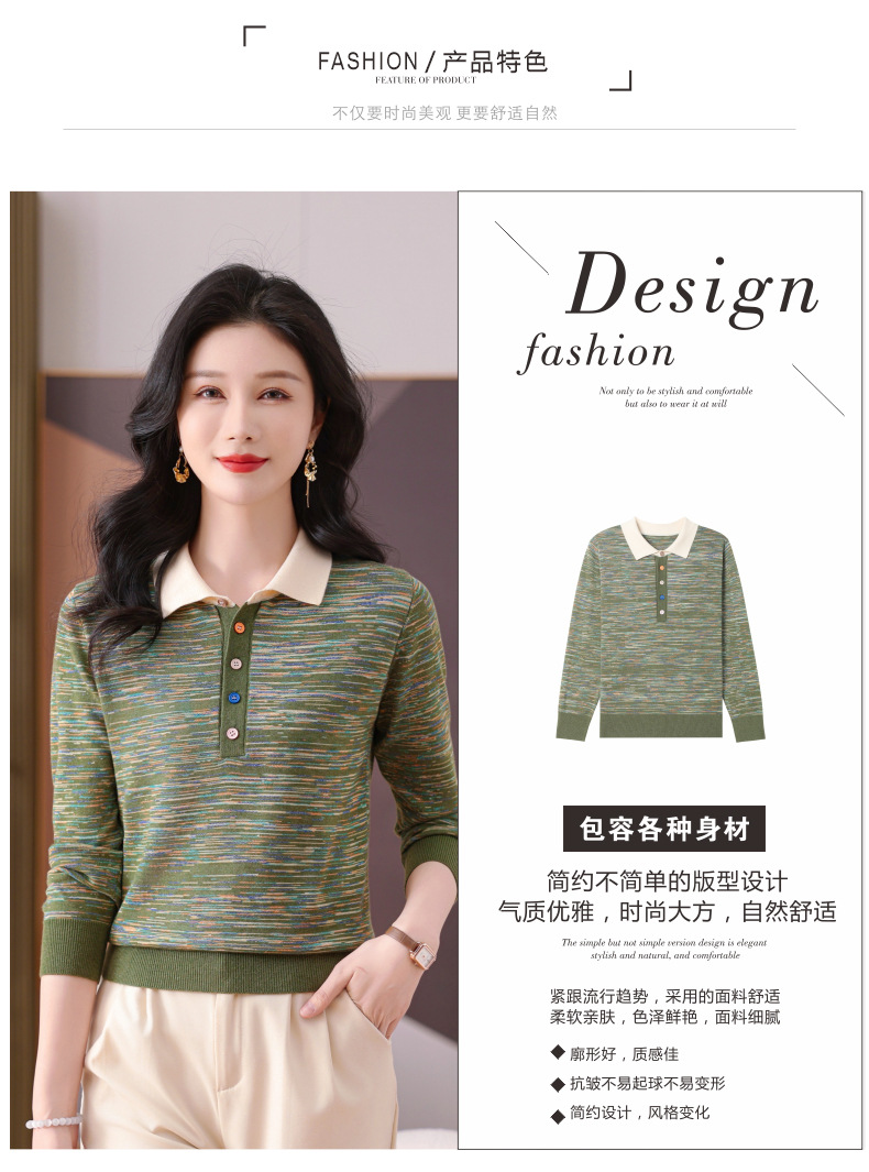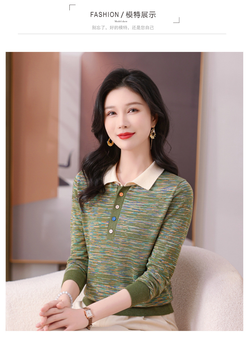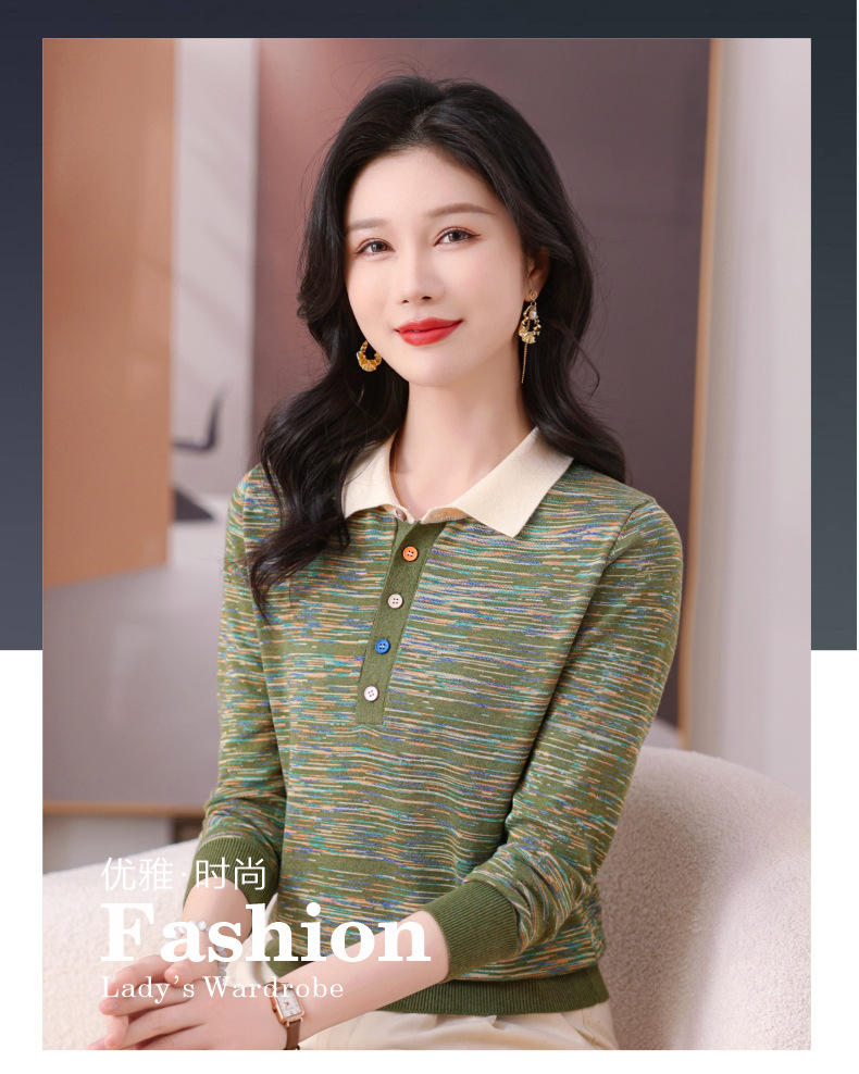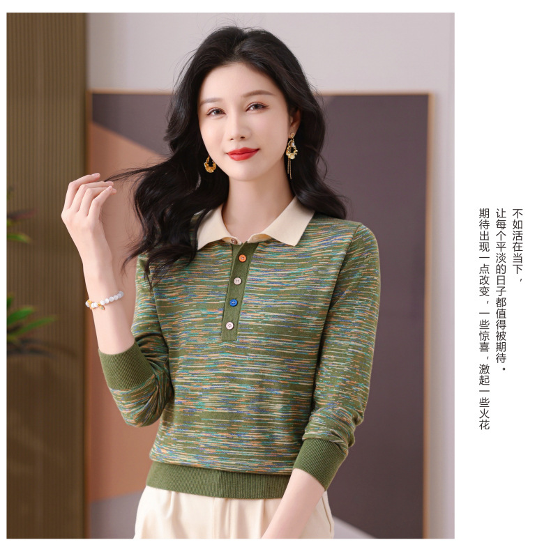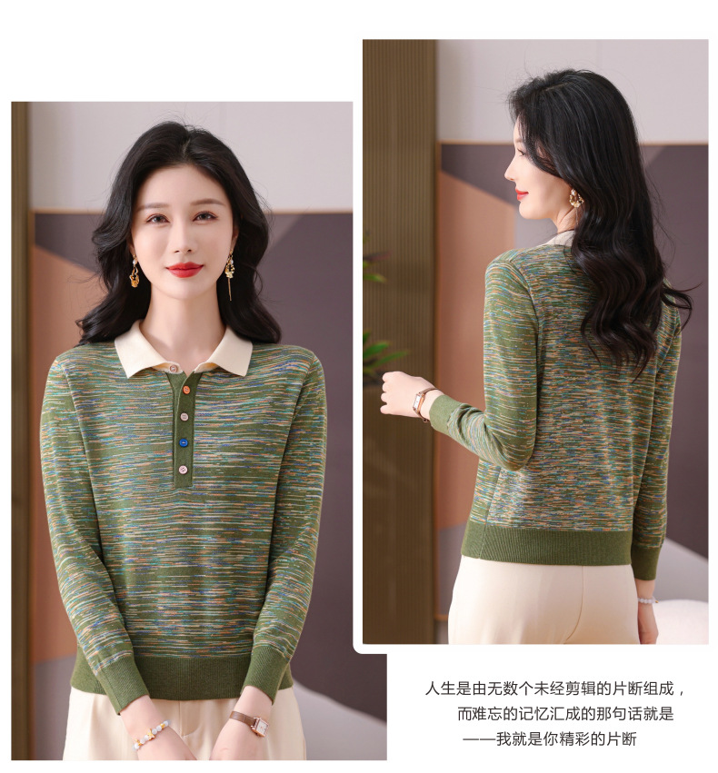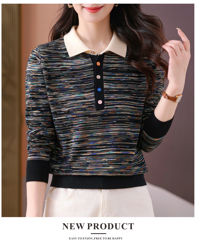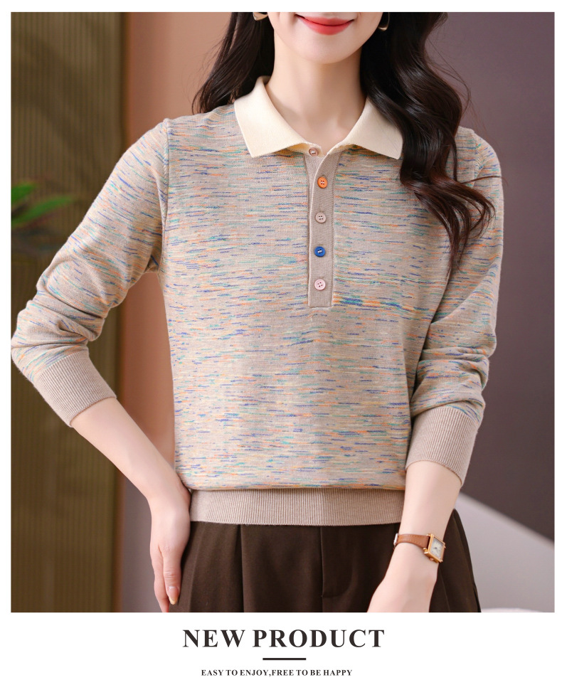 CC-101-56253春秋新款女长袖韩版花色百搭娃娃领针织毛衣百搭洋气薄款上衣