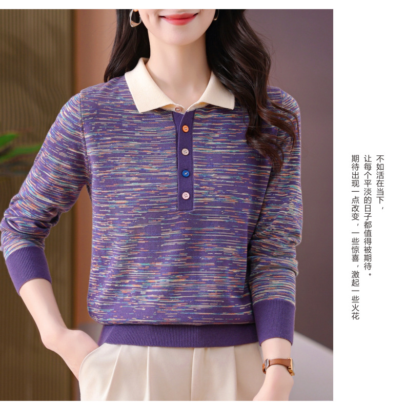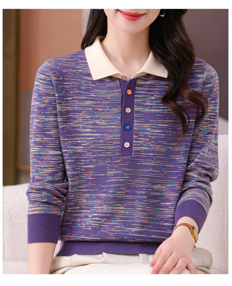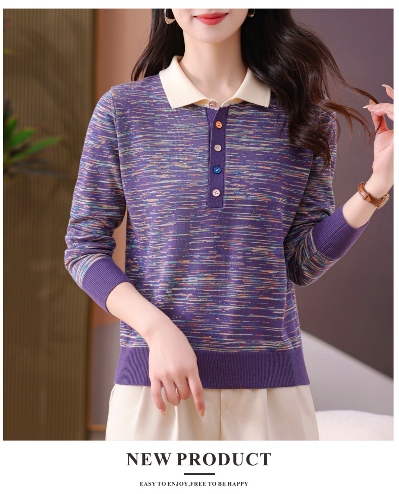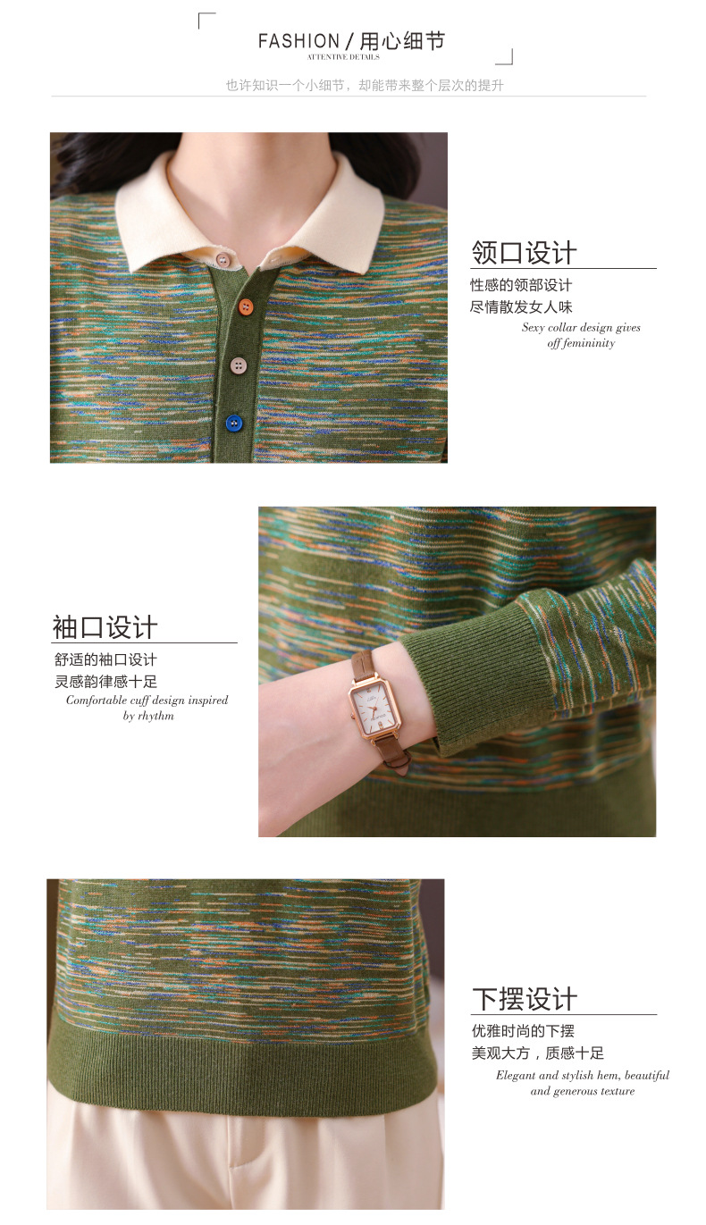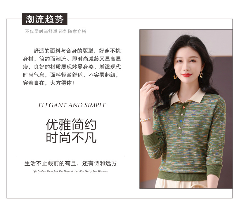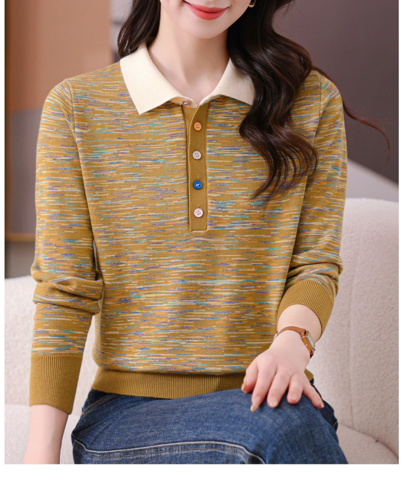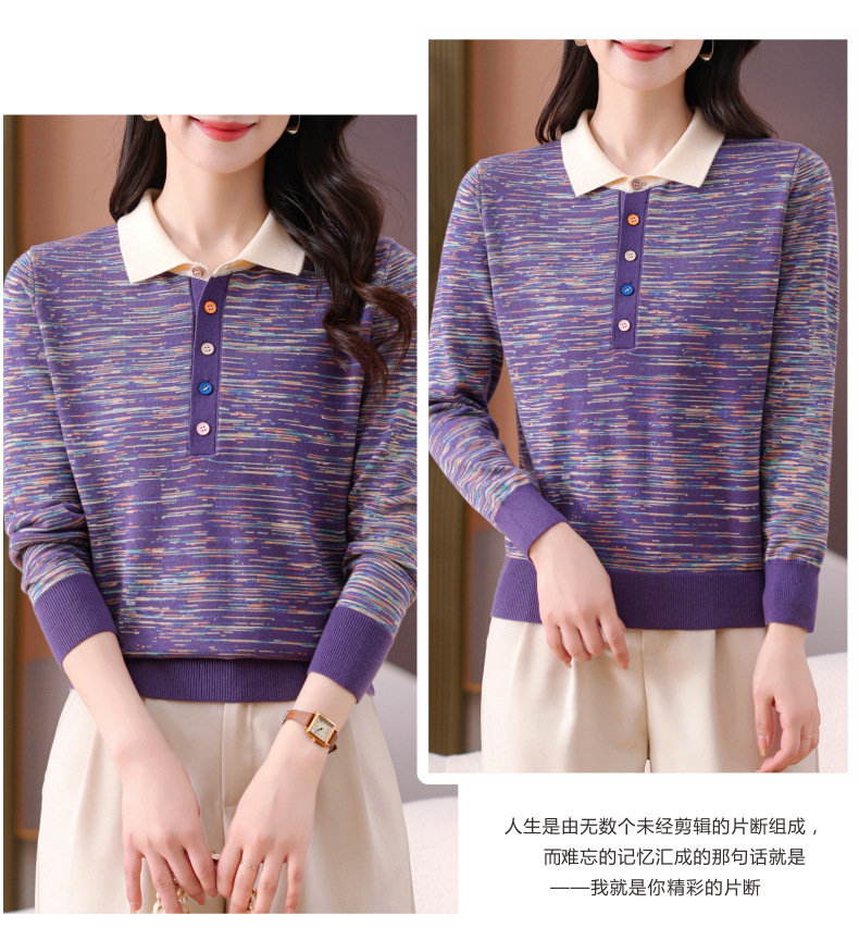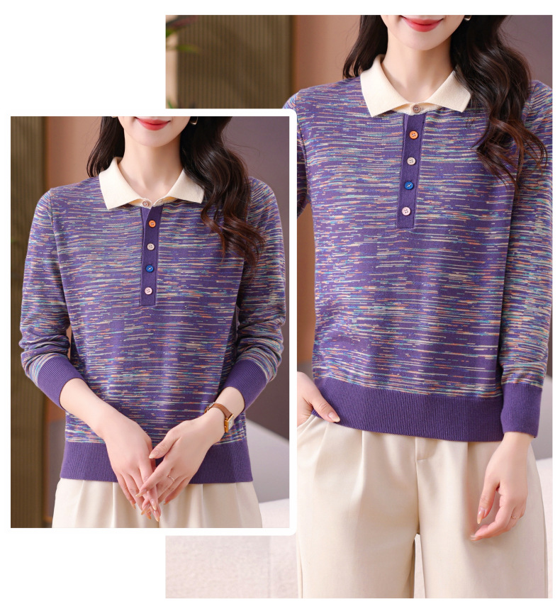 CC-101-56253春秋新款女长袖韩版花色百搭娃娃领针织毛衣百搭洋气薄款上衣