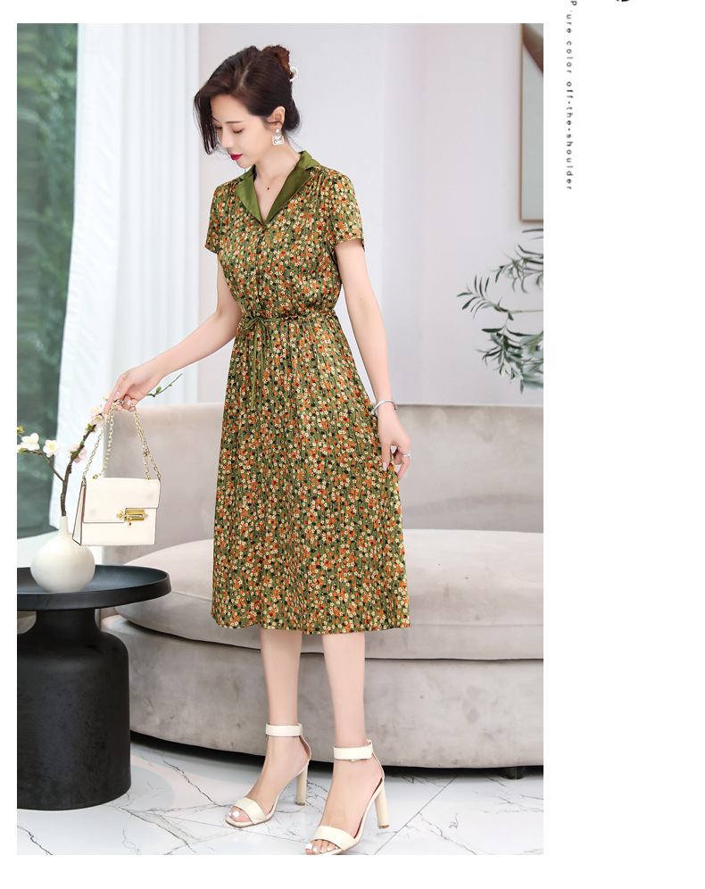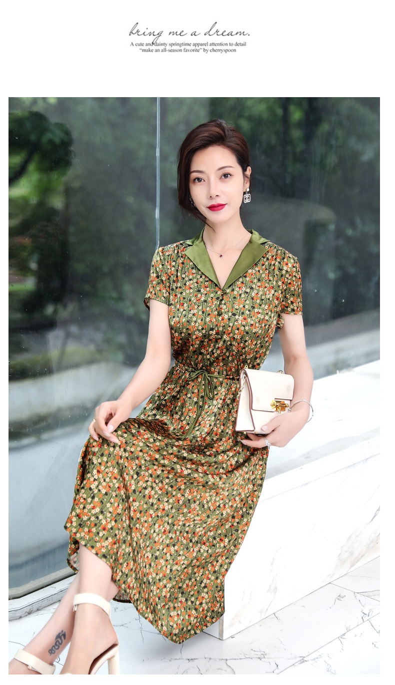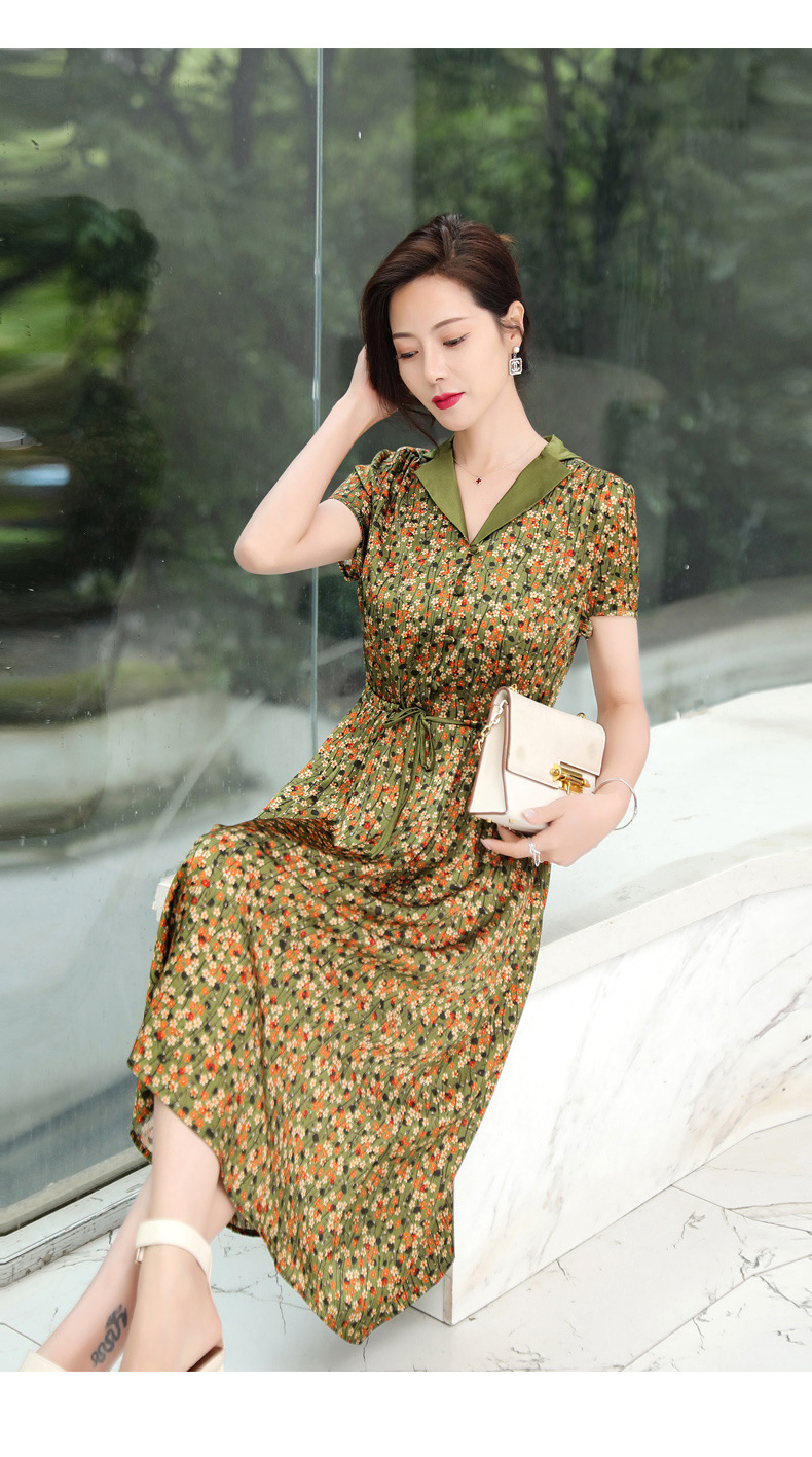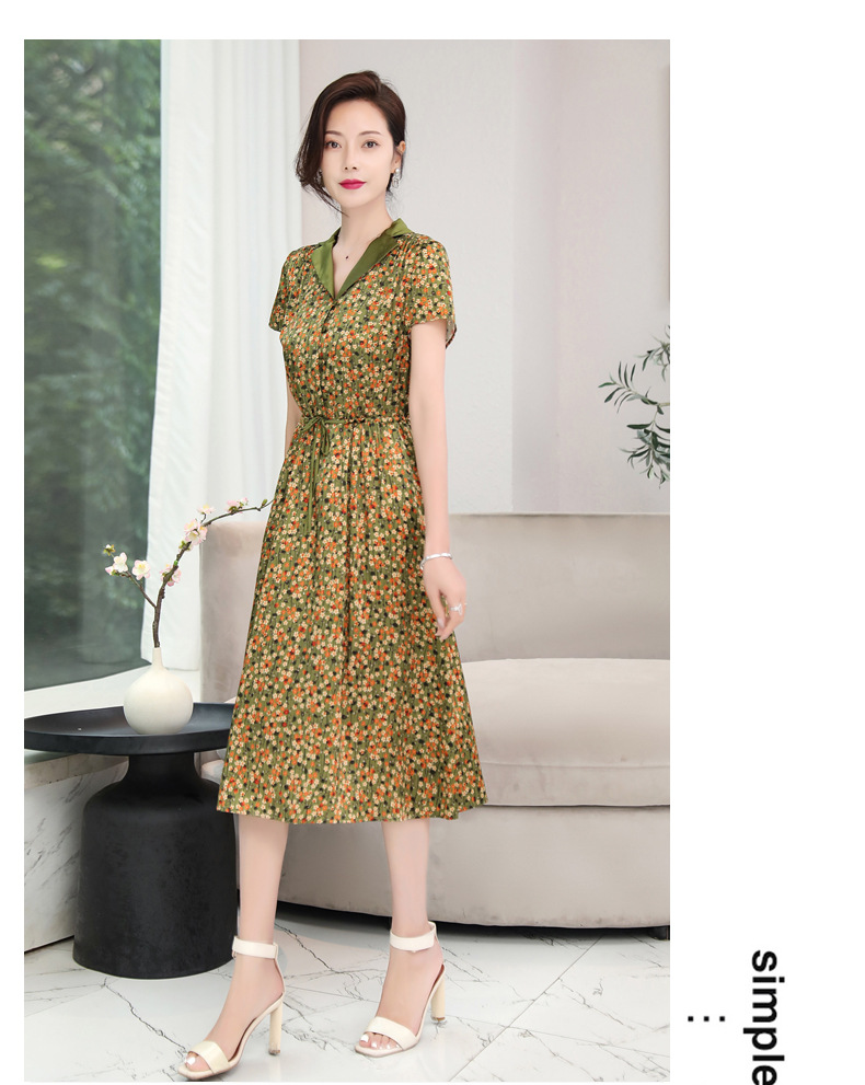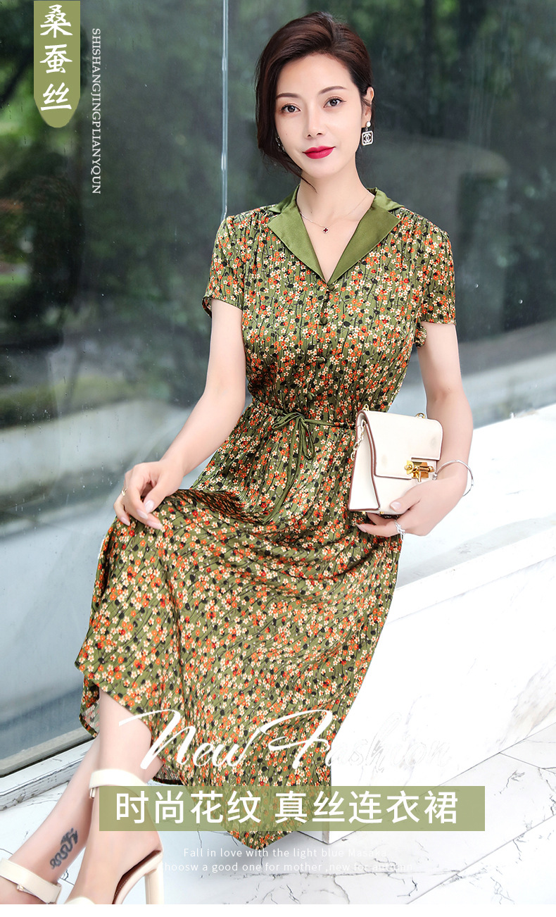 ASE-1083翻领气质优雅名媛百搭真丝连衣裙