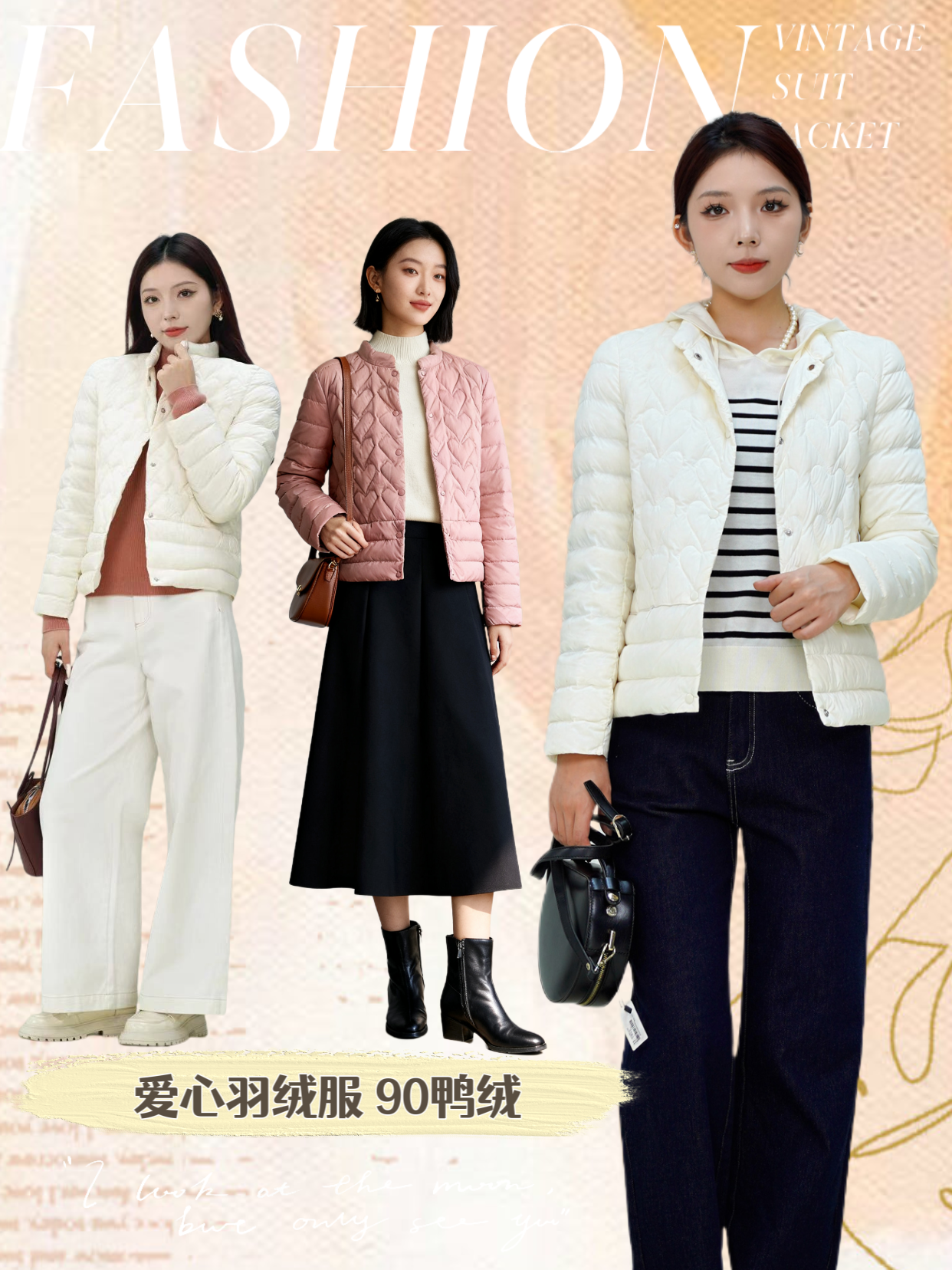 爆款现货 臣禾 【爱心羽绒服】绗缝保暖短外套90鸭绒9234072052