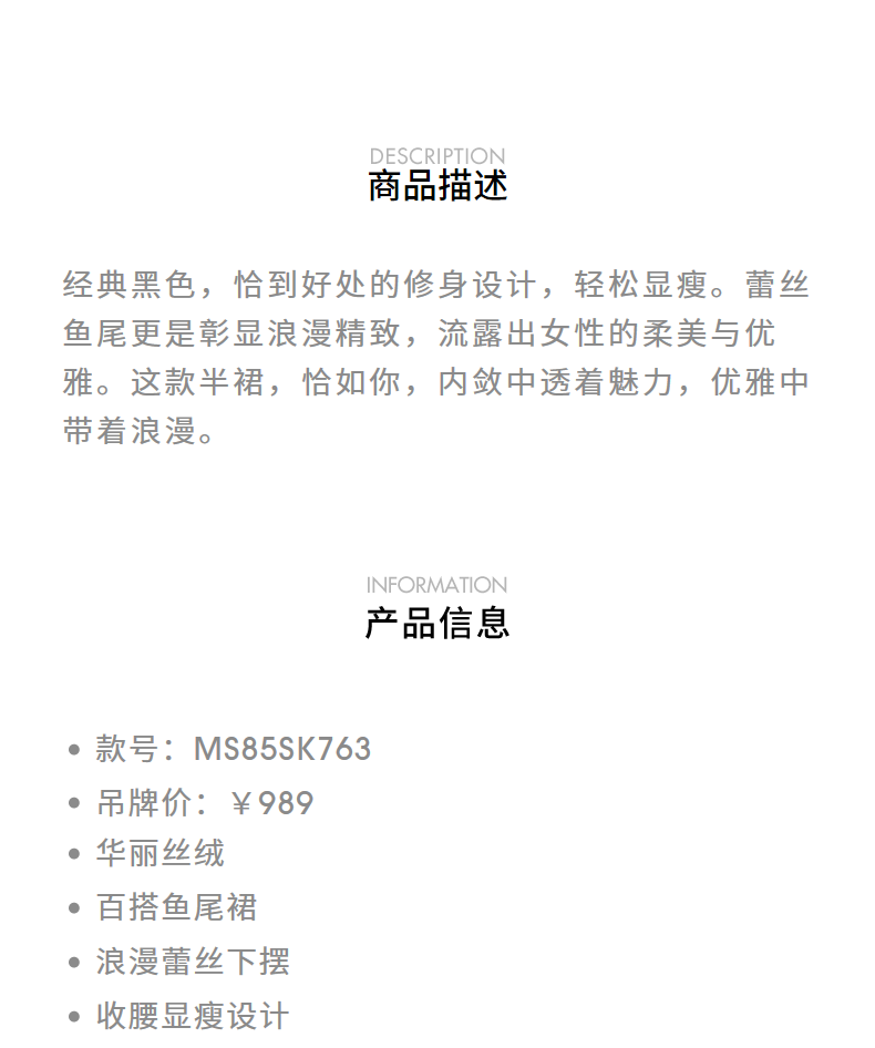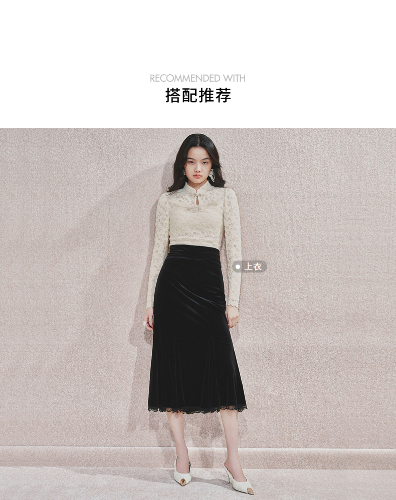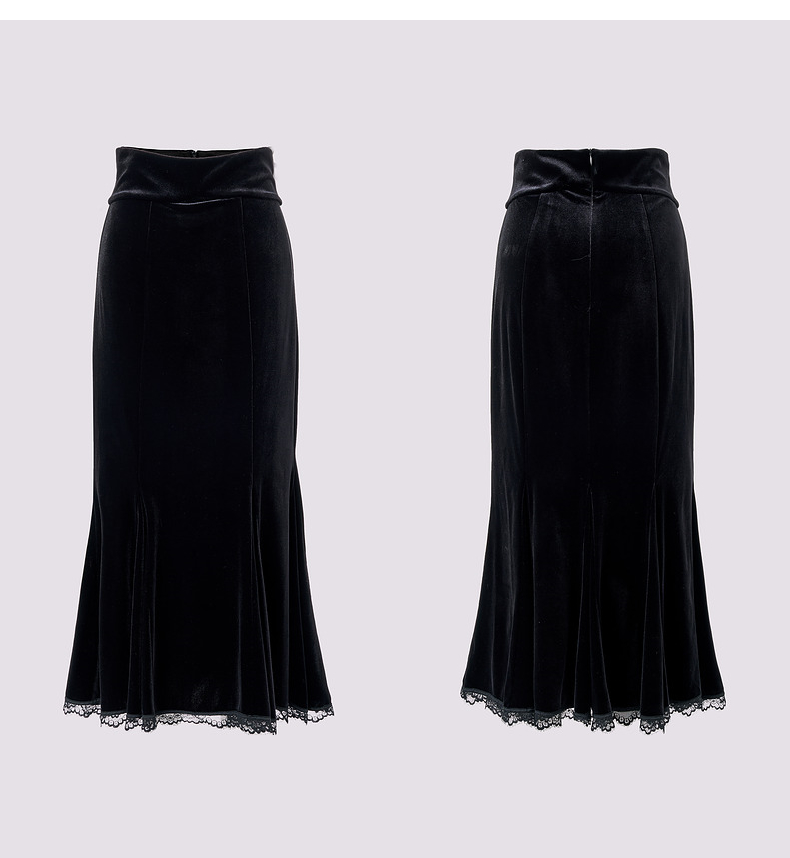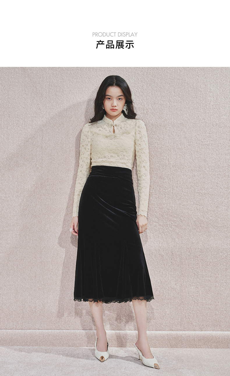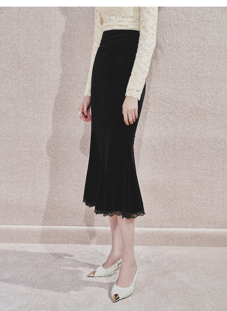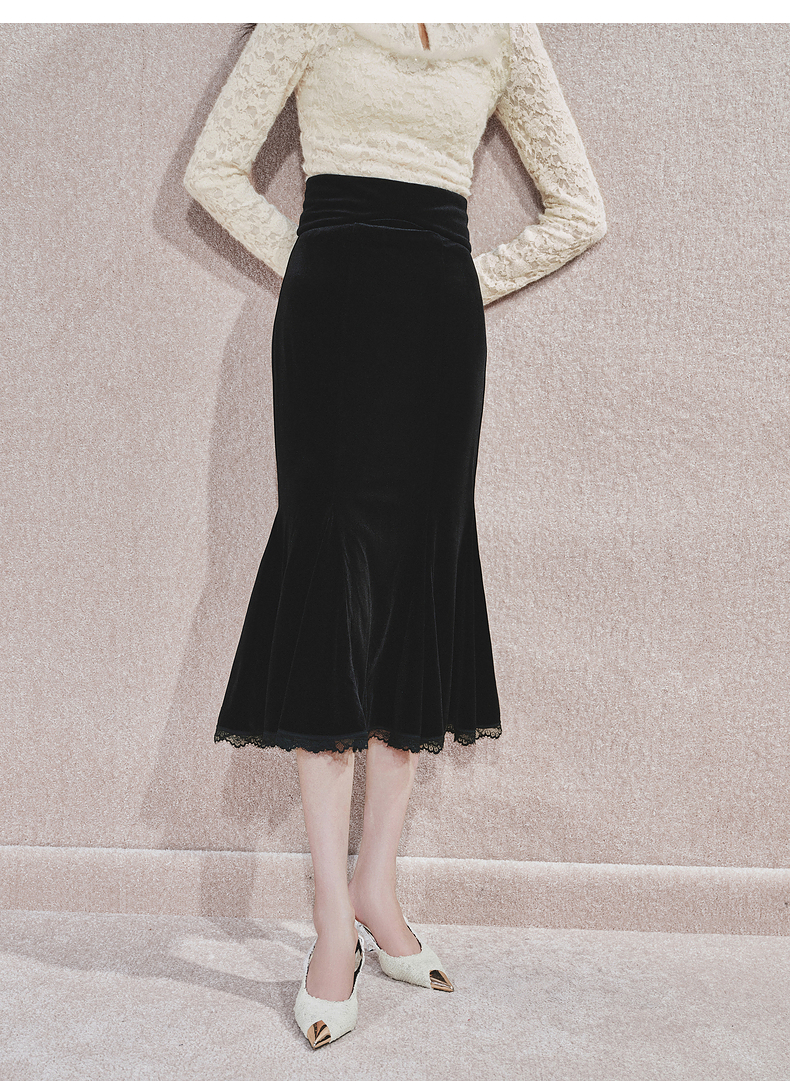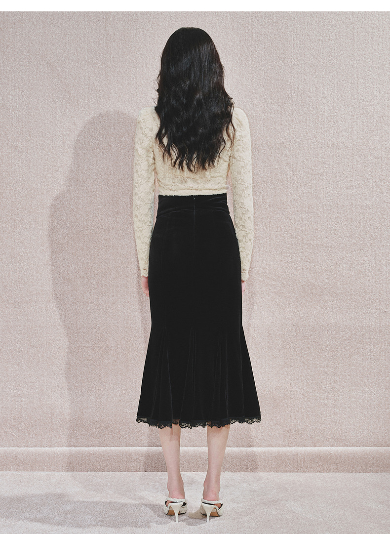 MAXRIENY浪漫优雅感蕾丝鱼尾半身裙2024秋冬新款复古赫本风裙子(货号:MS85SK763)