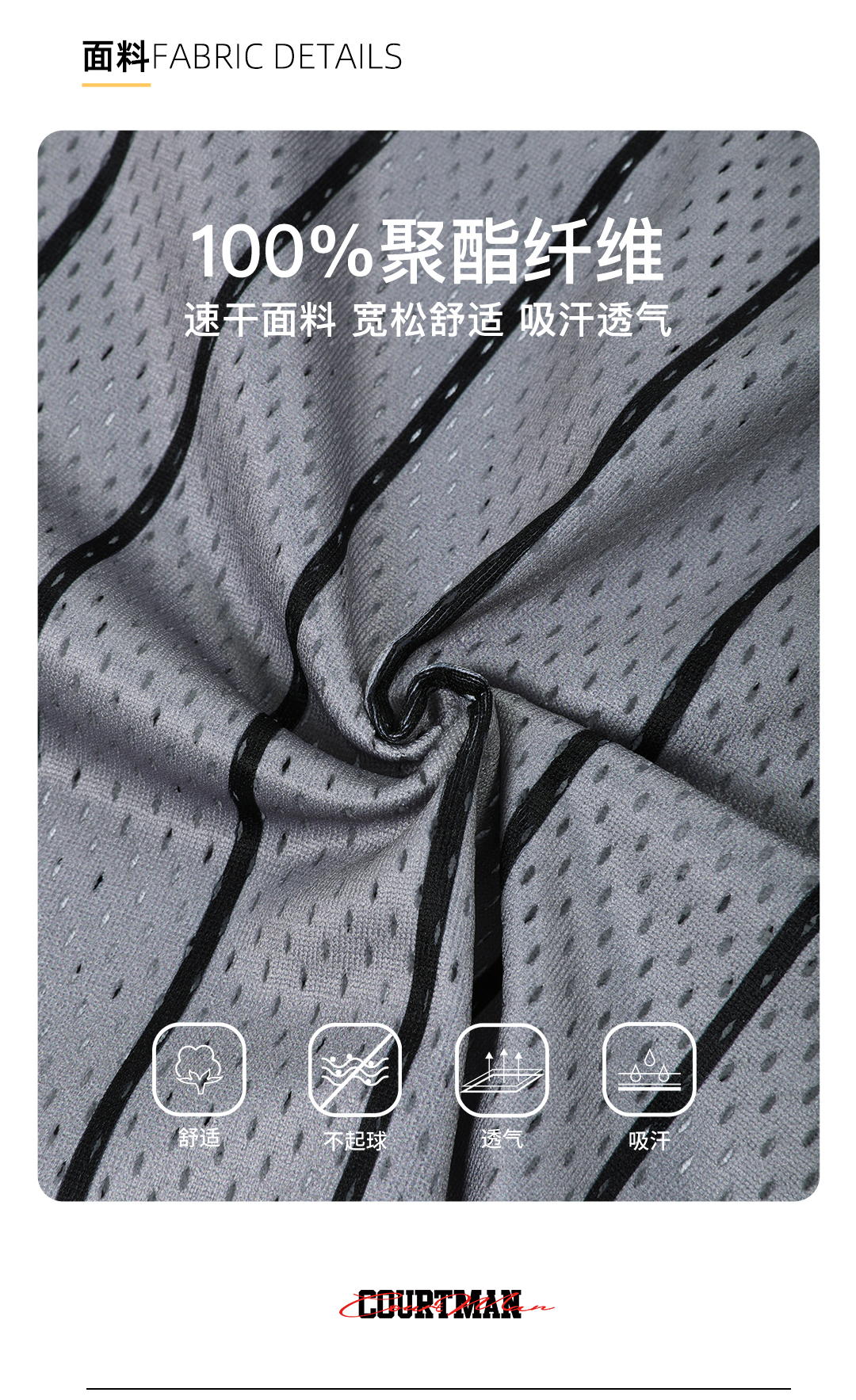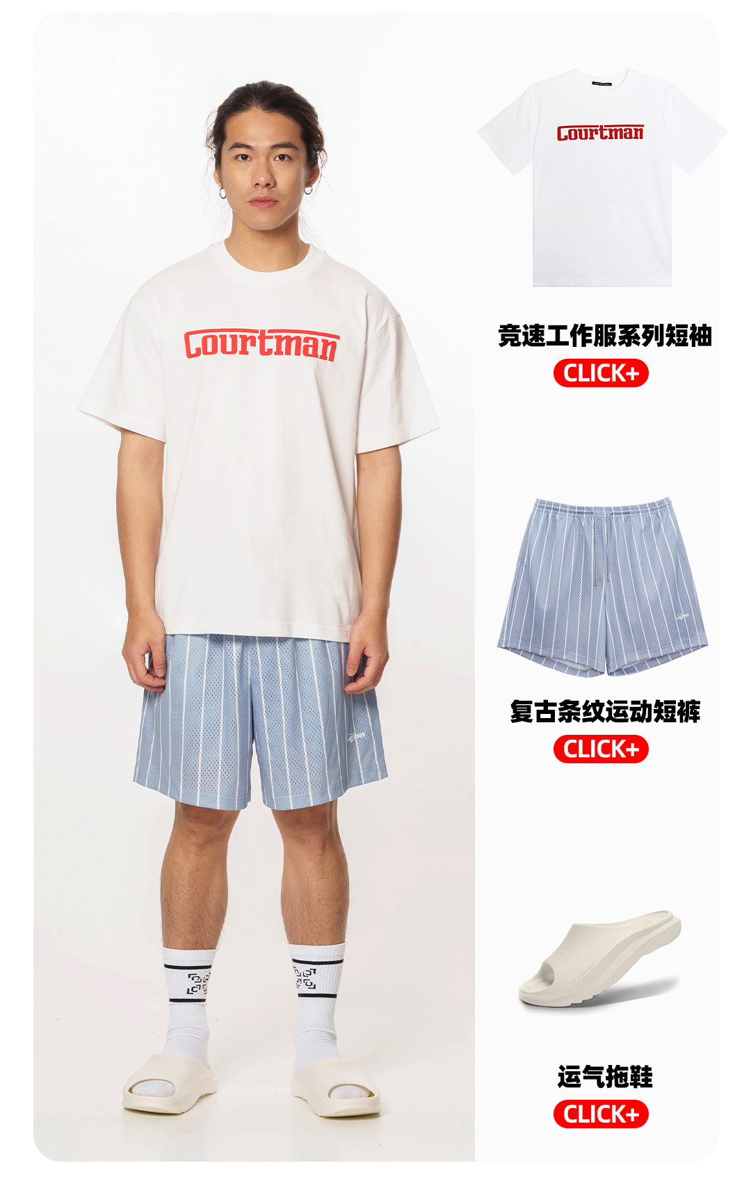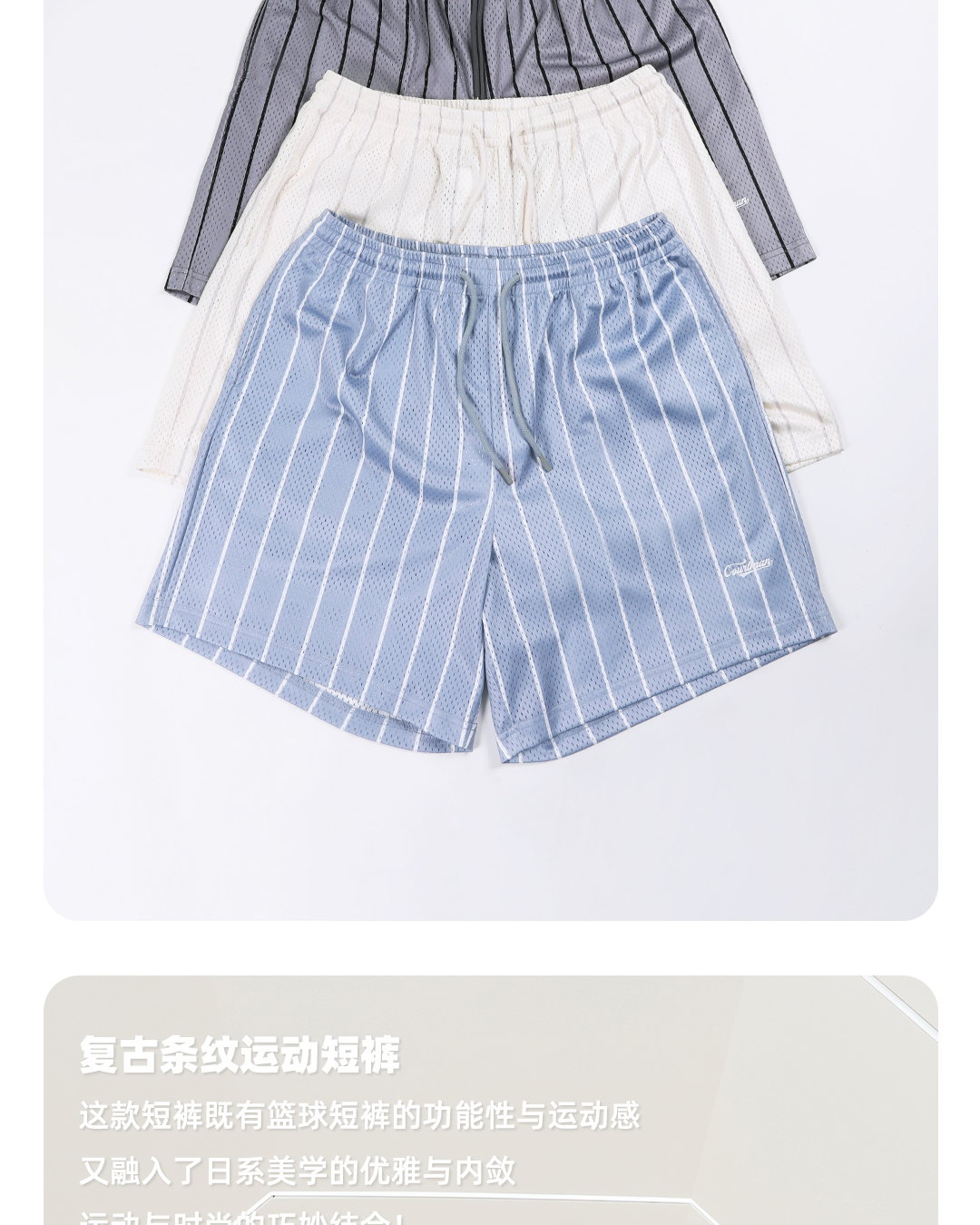 COURTMAN野球帝美式运动短裤复古条纹篮球透气训练裤男女休闲宽松