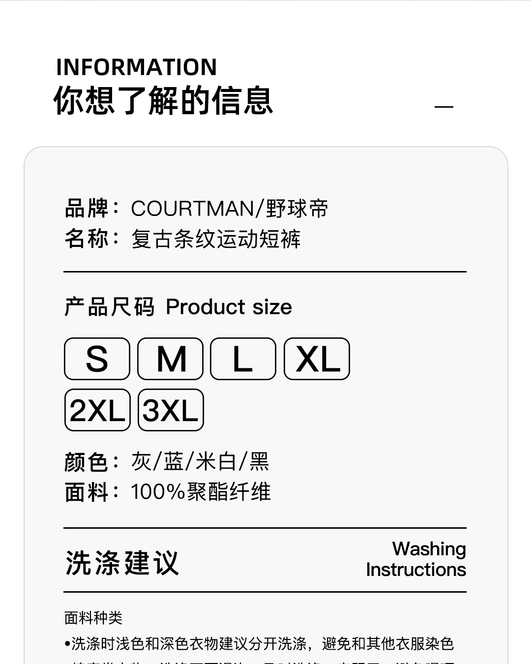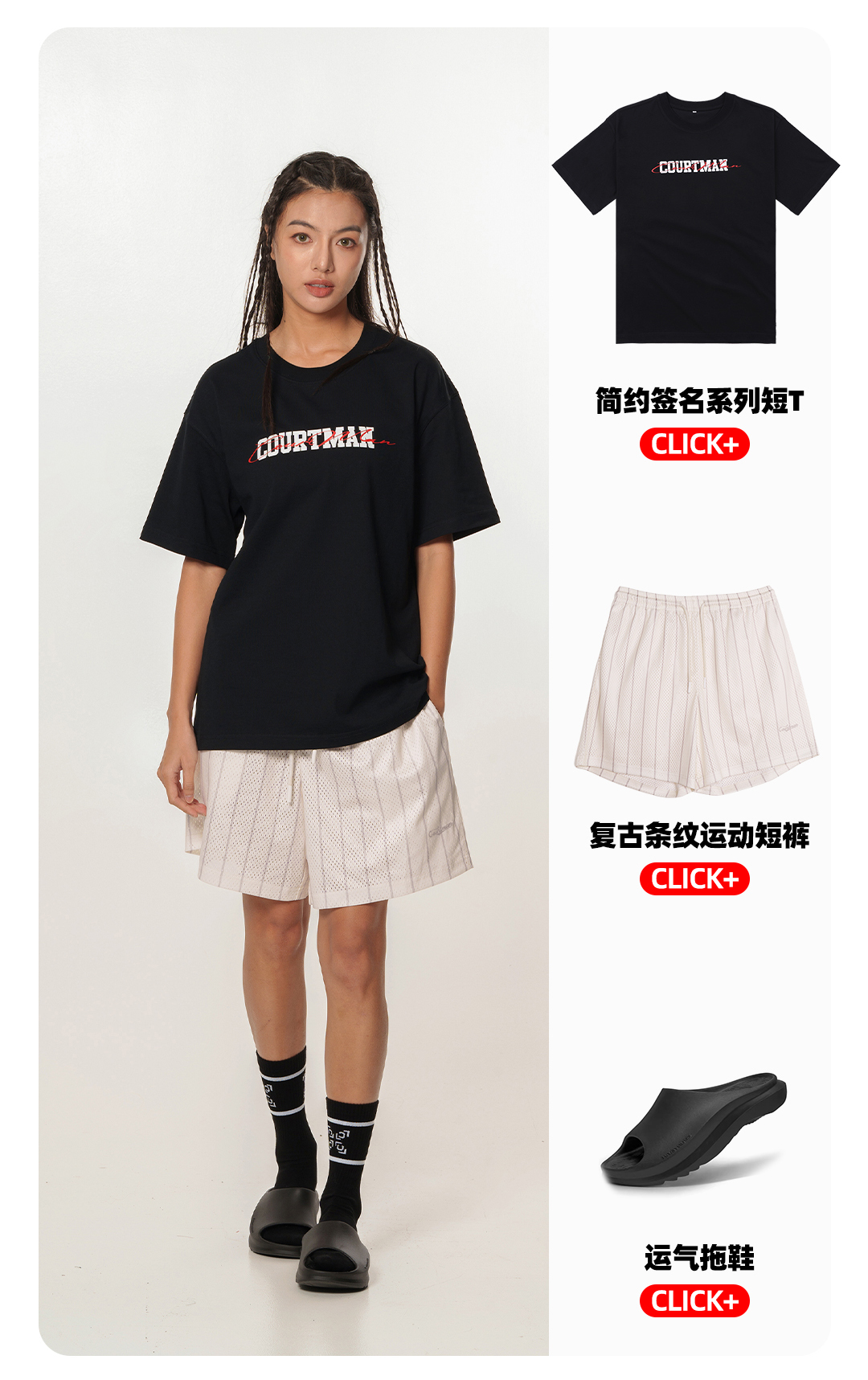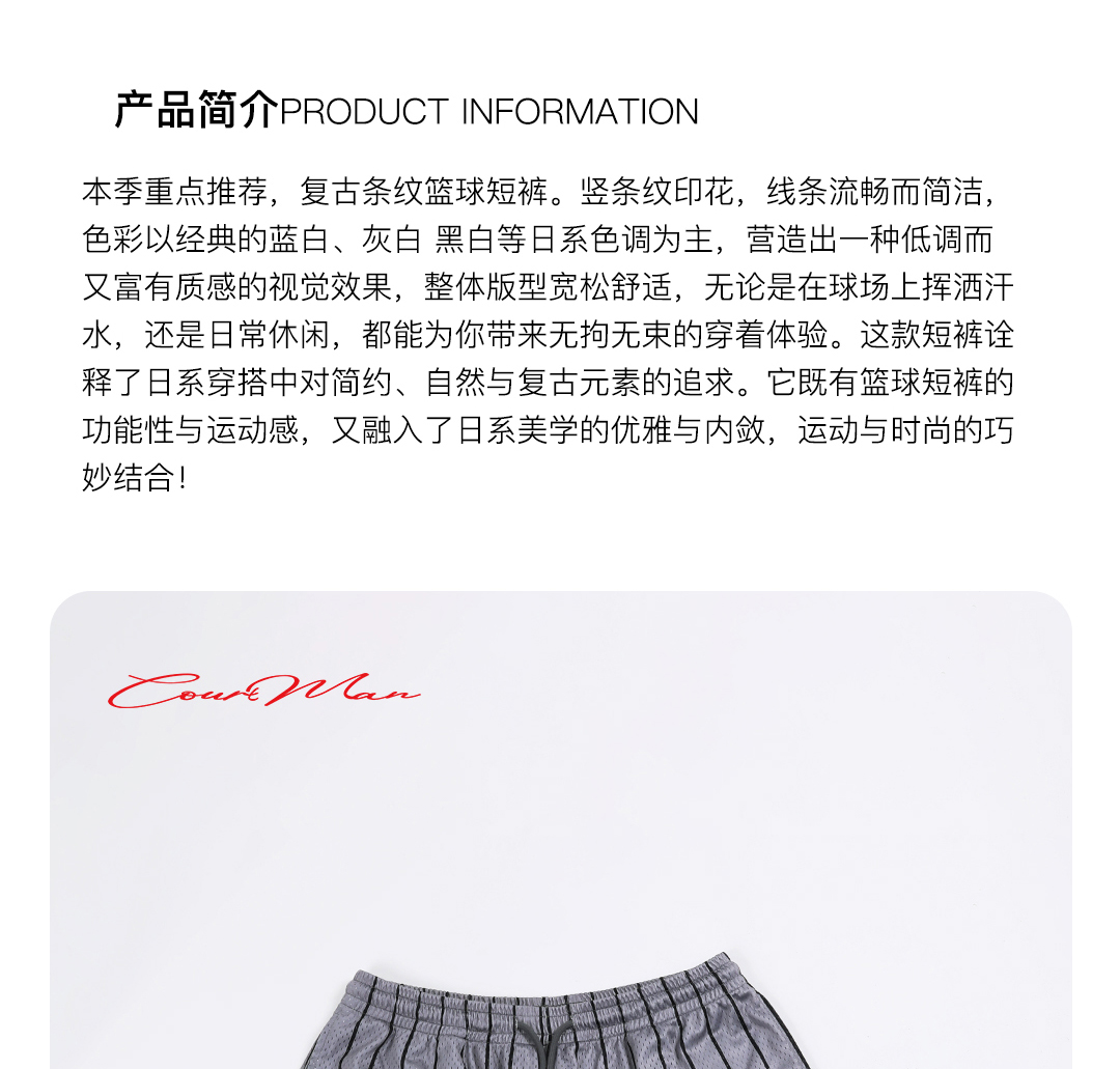 COURTMAN野球帝美式运动短裤复古条纹篮球透气训练裤男女休闲宽松