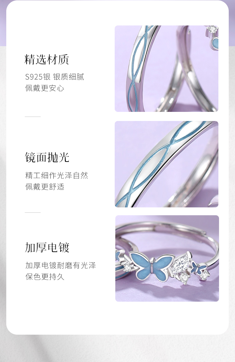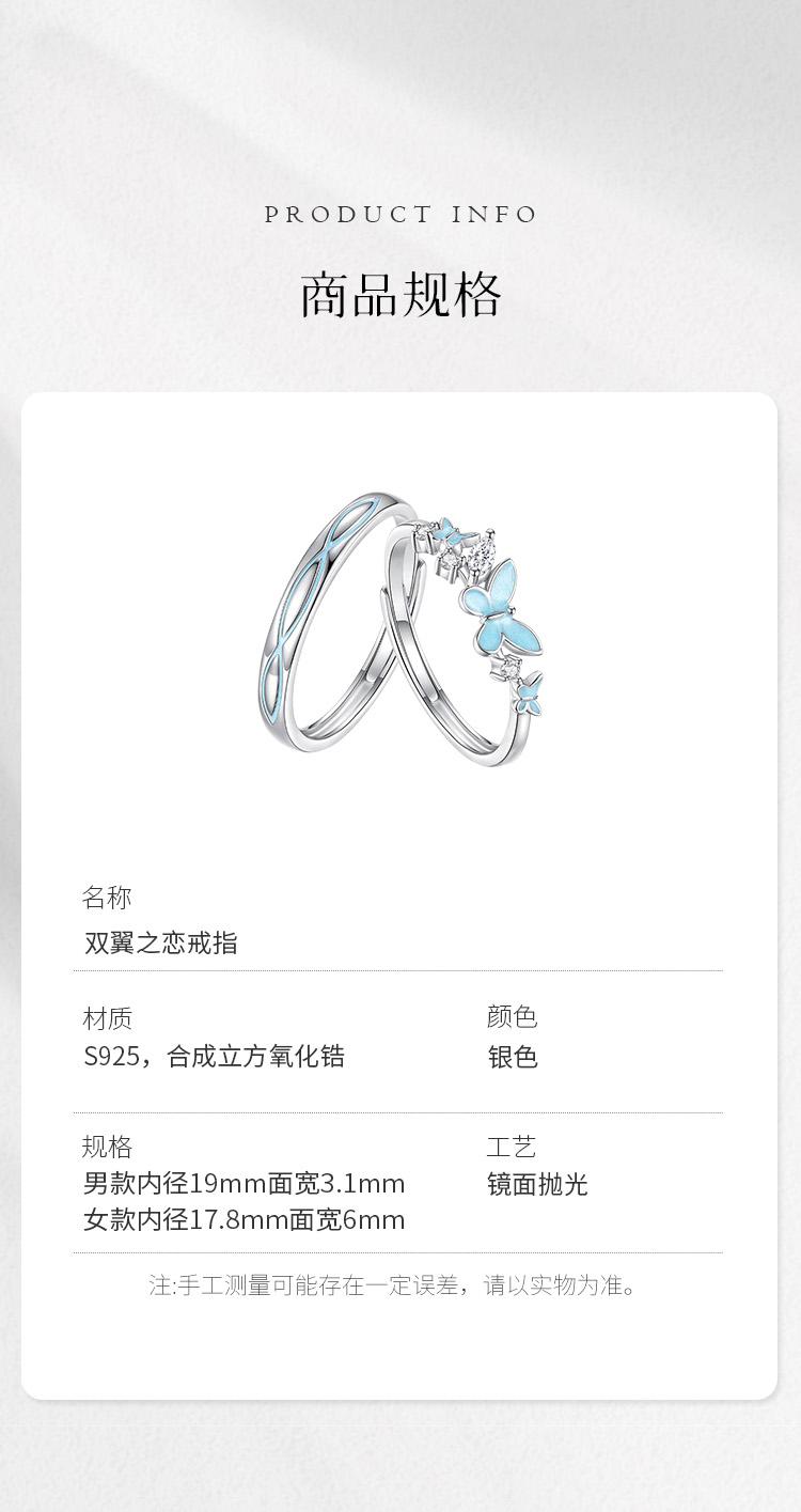 Winy s925银双翼之恋情侣对戒浪漫表白节日礼物
