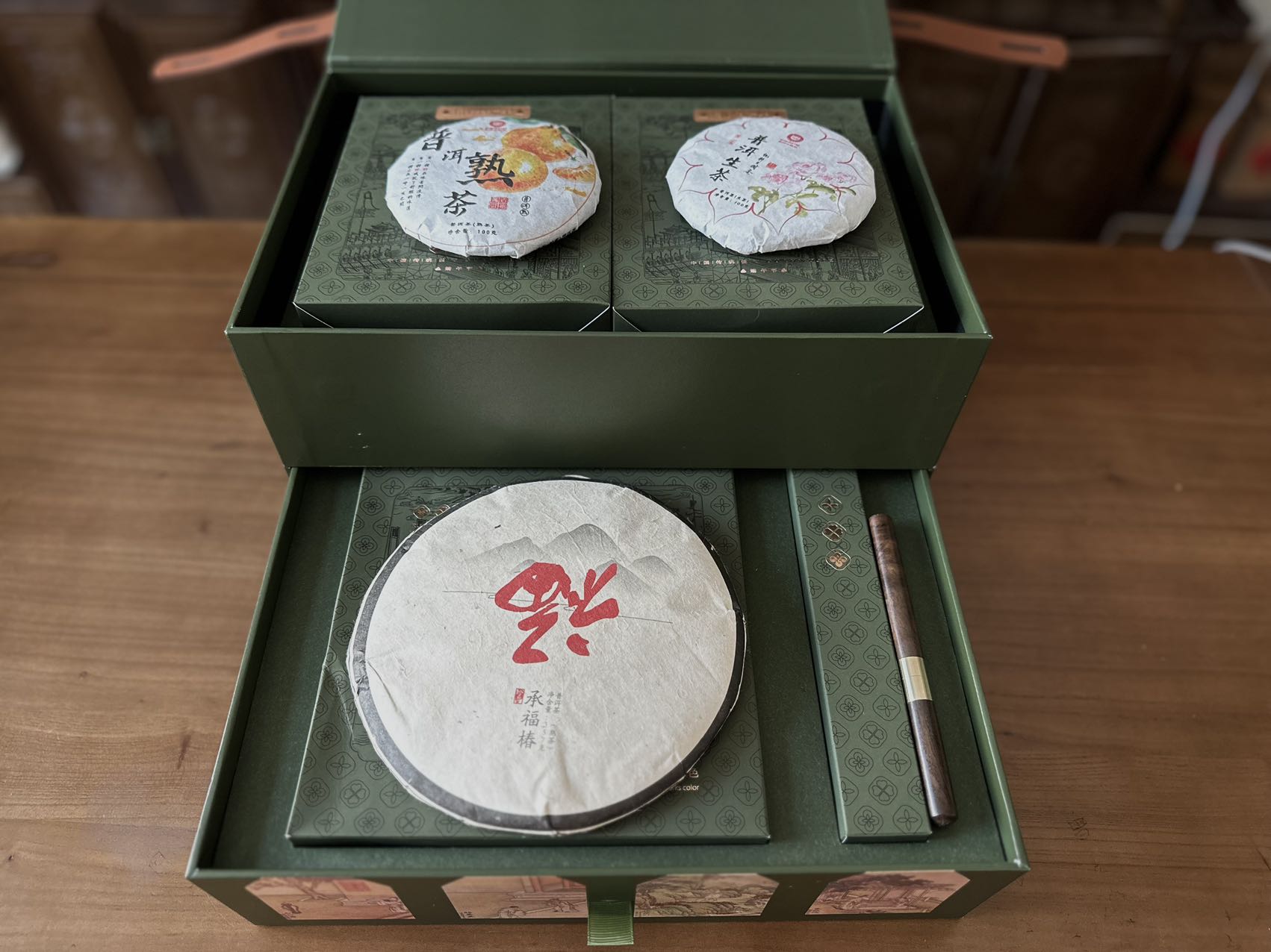 上层:一生一熟老料非遗普洱茶,充满了古典韵味