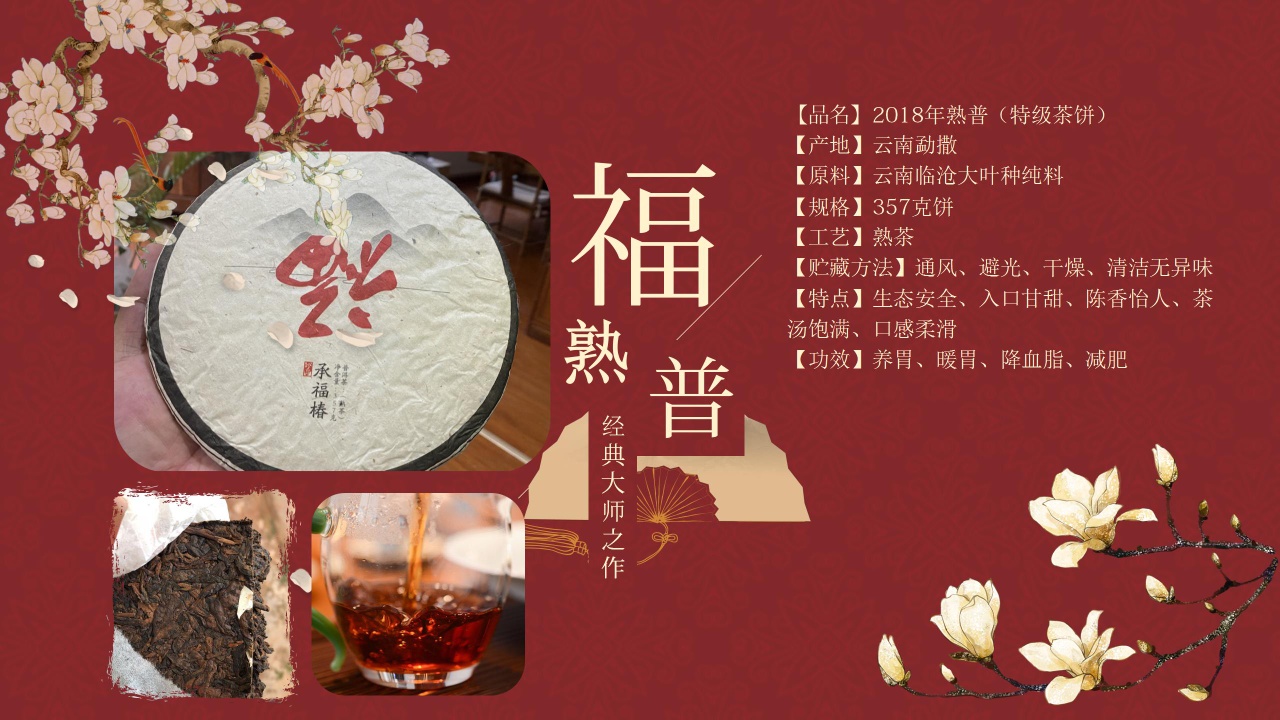 特点:这款熟茶采用传统工艺发酵,4年干仓存储至今,更进一步退去燥味和堆味,现在喝,口感刚好茶汤饱满细腻 一看便知是等级很高的古树原料
