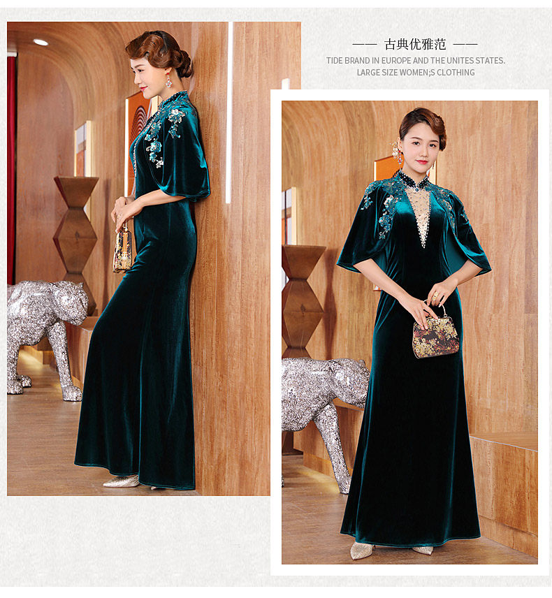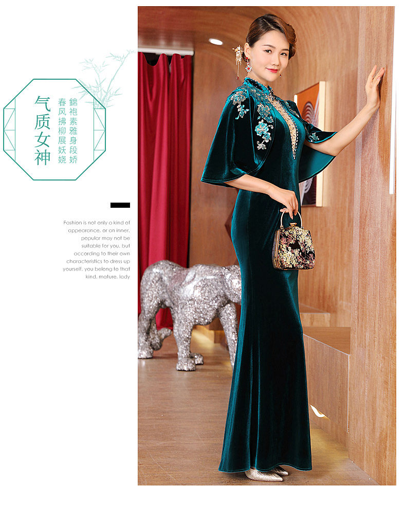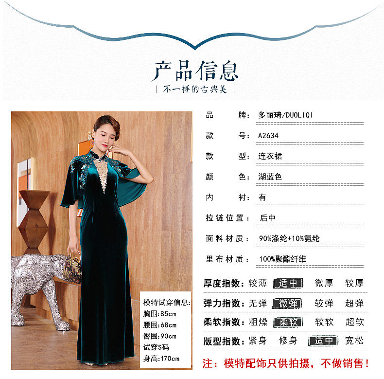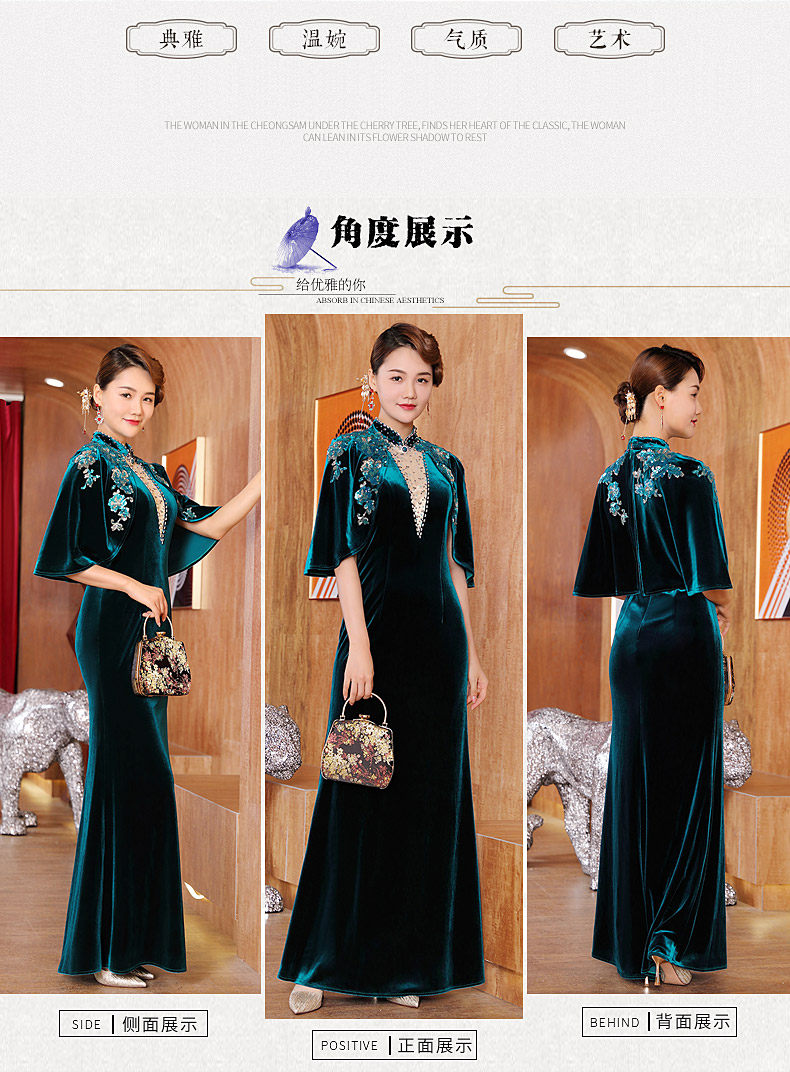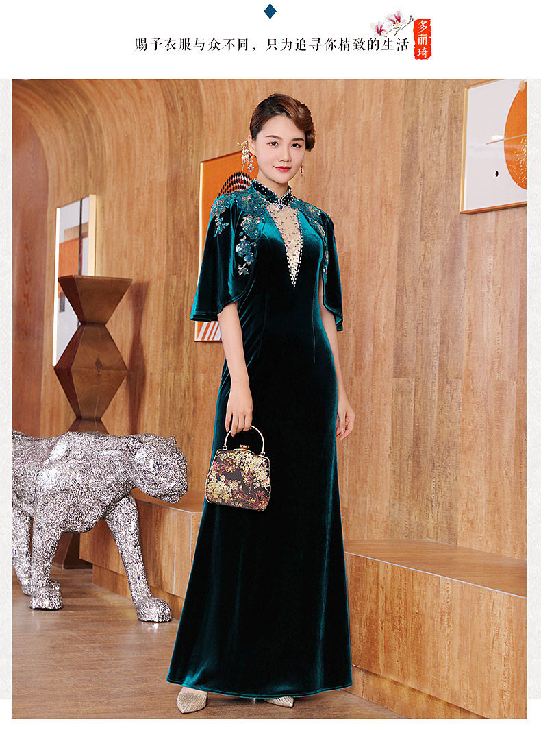 DLQ-A2634中国风旗袍改良版连衣裙秋冬丝绒款妈妈装长款