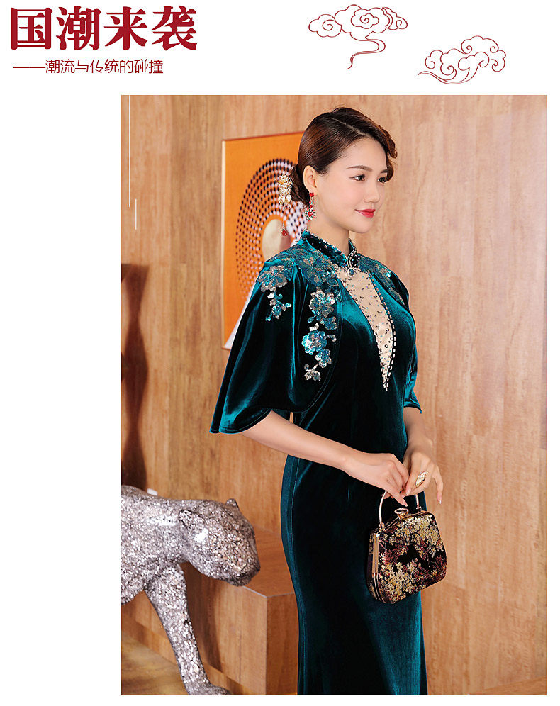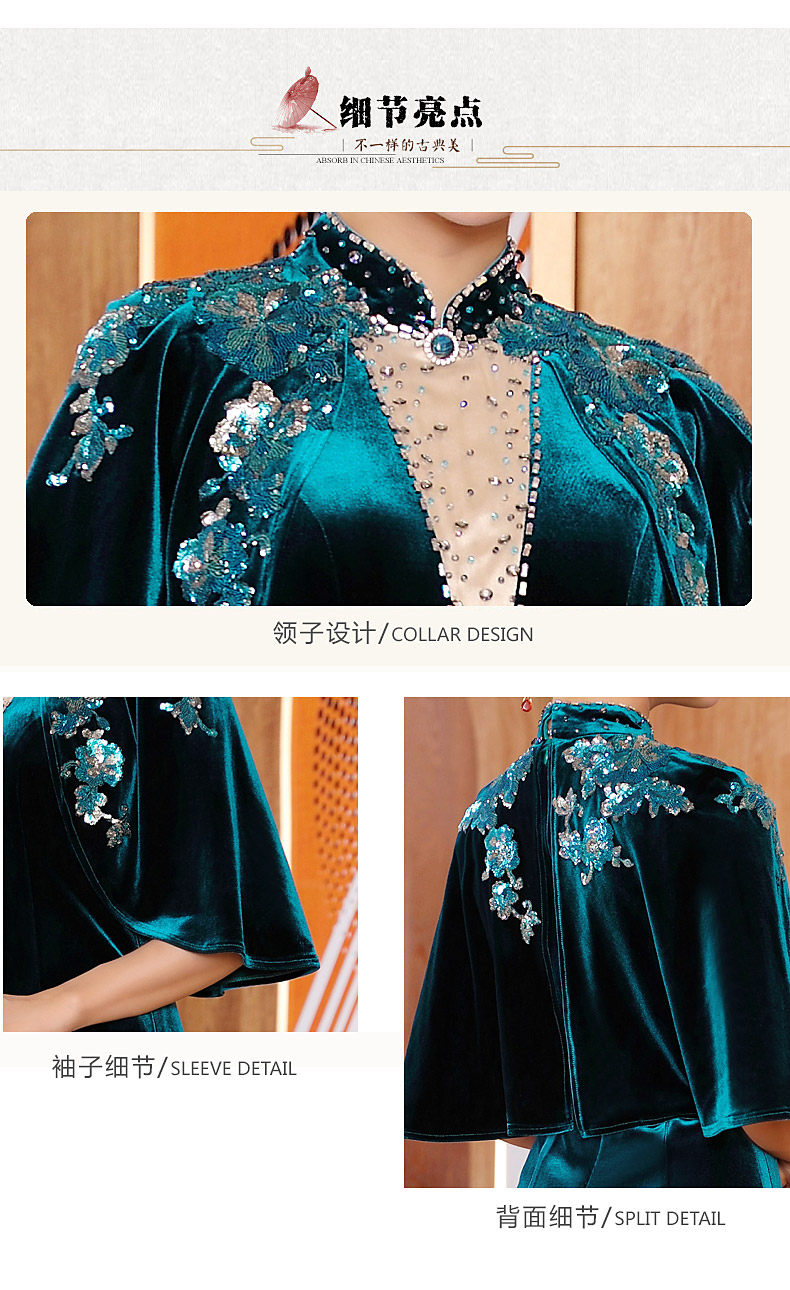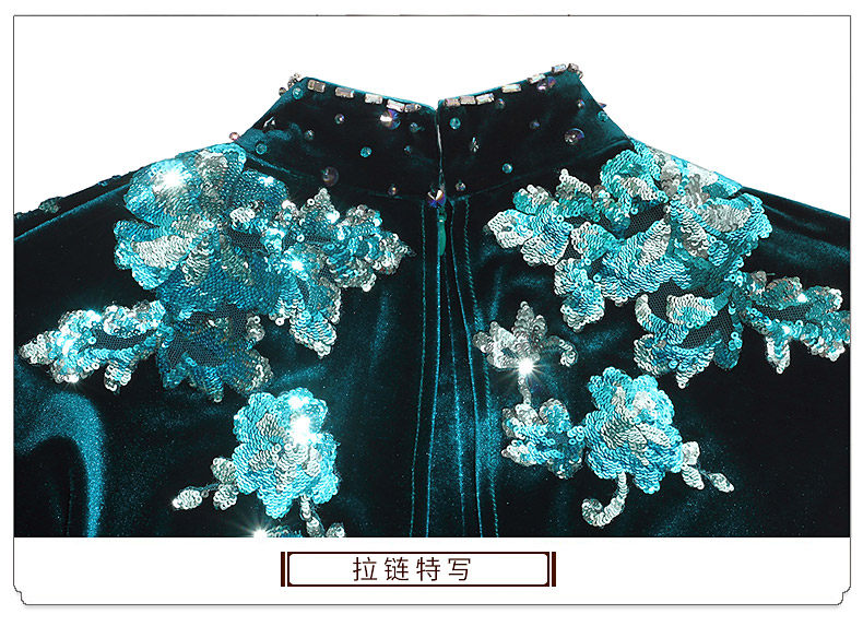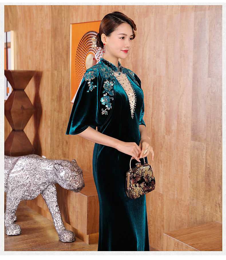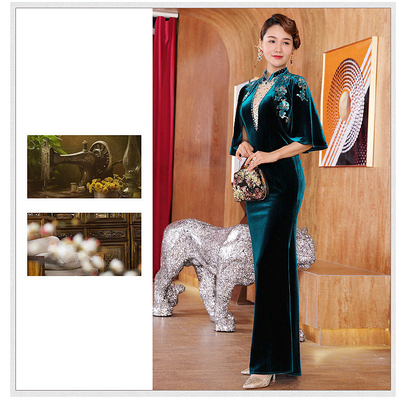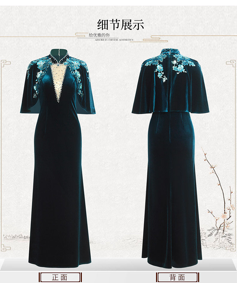 DLQ-A2634中国风旗袍改良版连衣裙秋冬丝绒款妈妈装长款