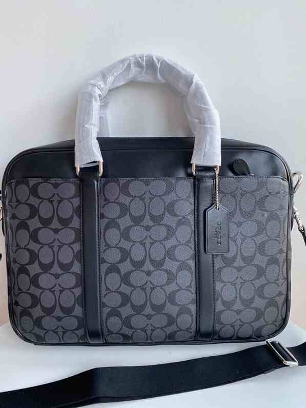 美国Coach 蔻驰男士PVC大号单肩斜跨手提商务电脑公文包黑色