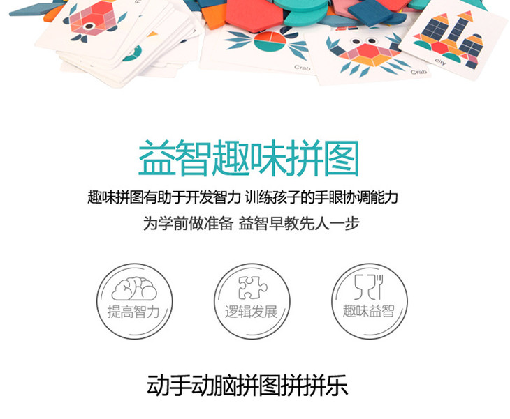 木制玩具180片创意拼图儿童早教拼板百变几何形状七巧板