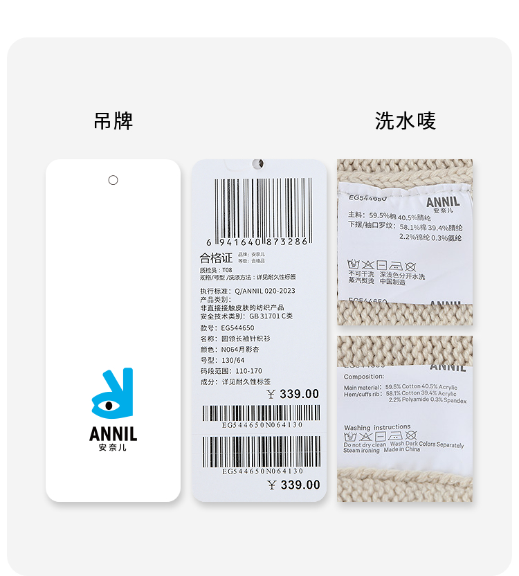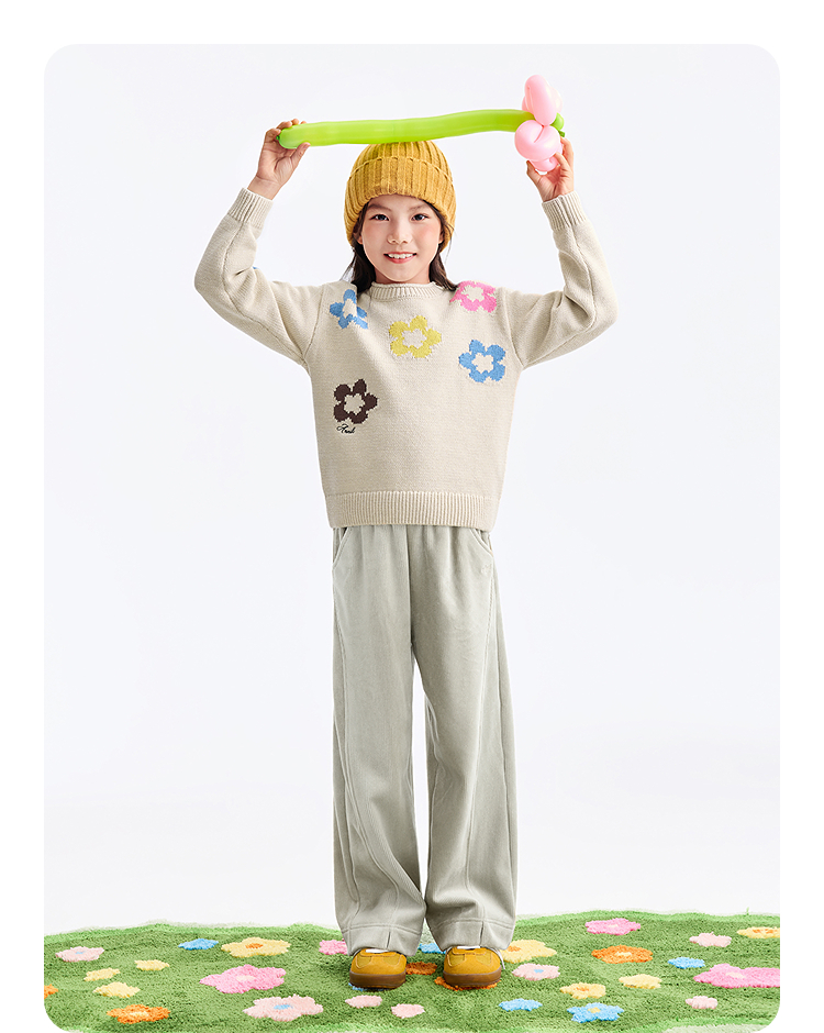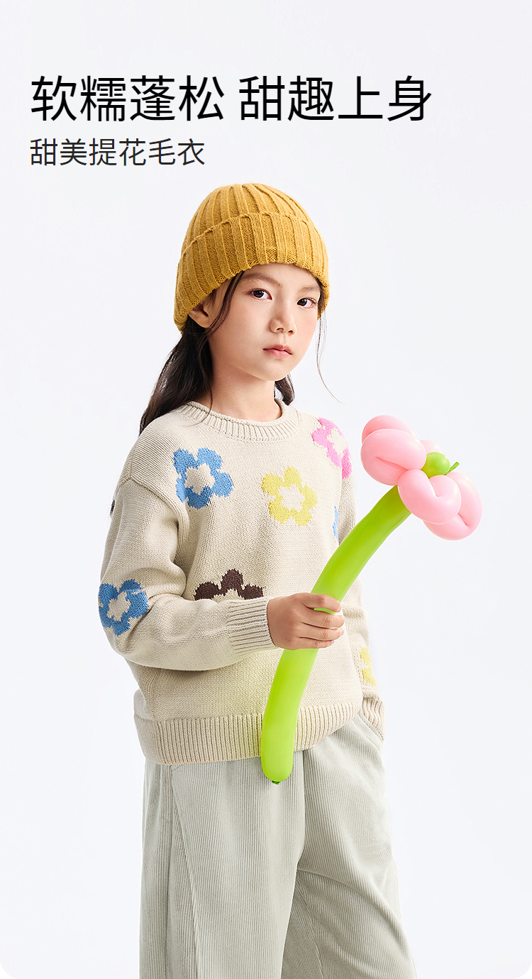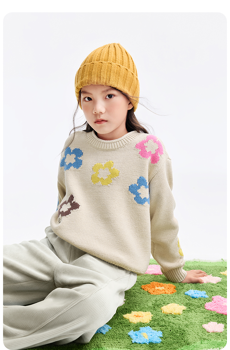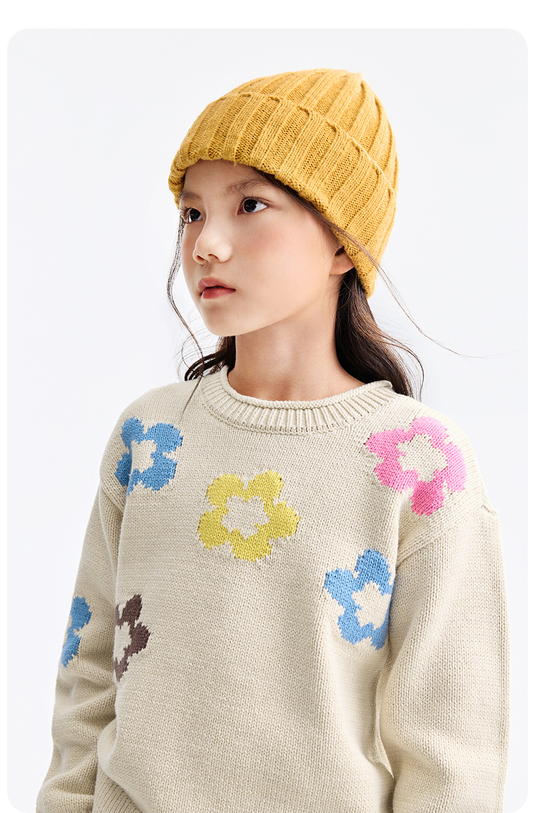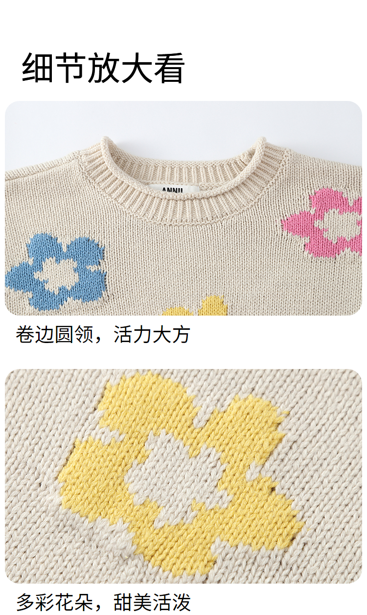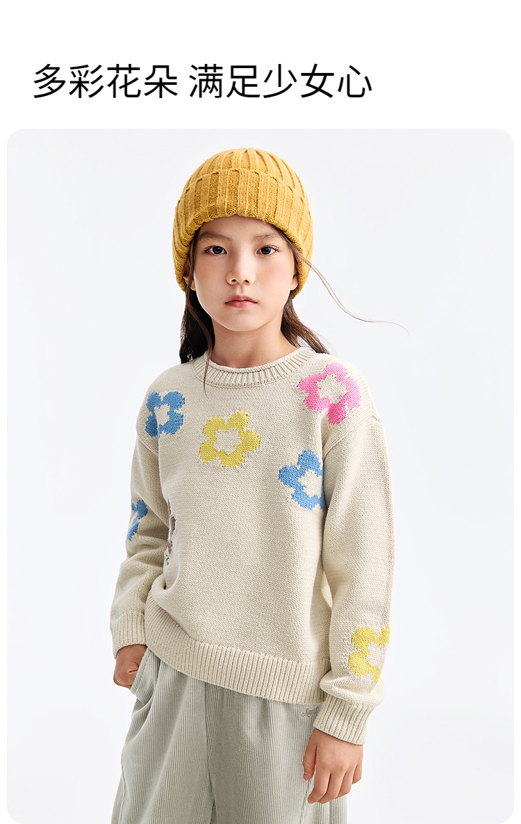 女童圆领长袖针织衫冬季新款安奈儿童装EG544650