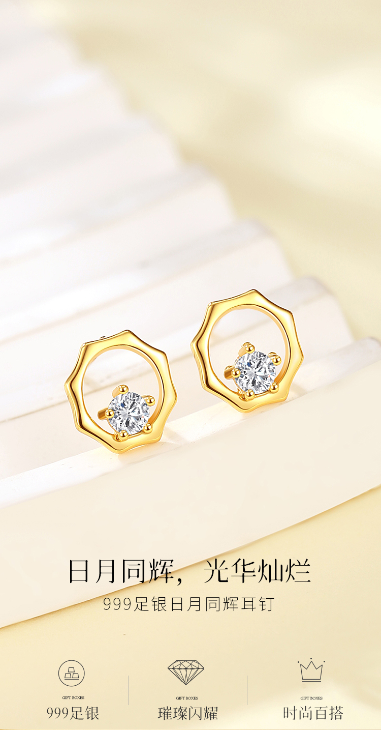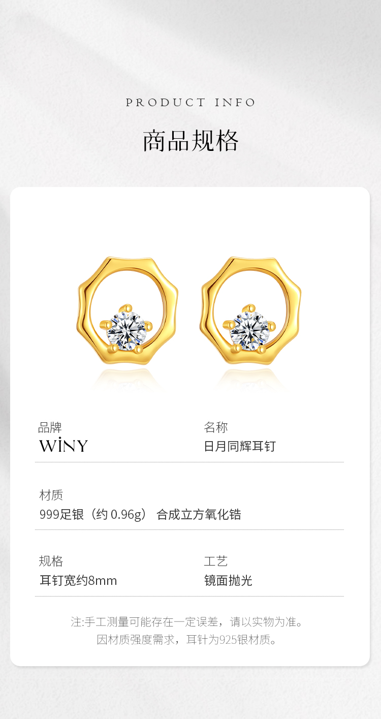 Winy925纯银日月同辉耳钉送女友闺蜜节日生日礼物