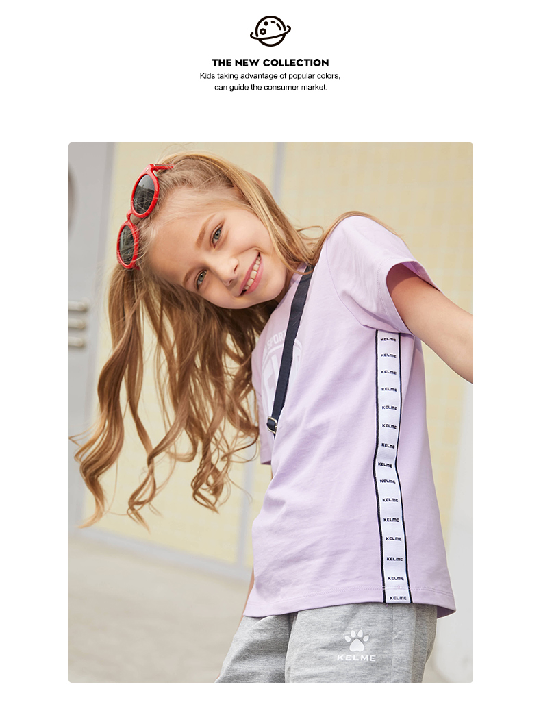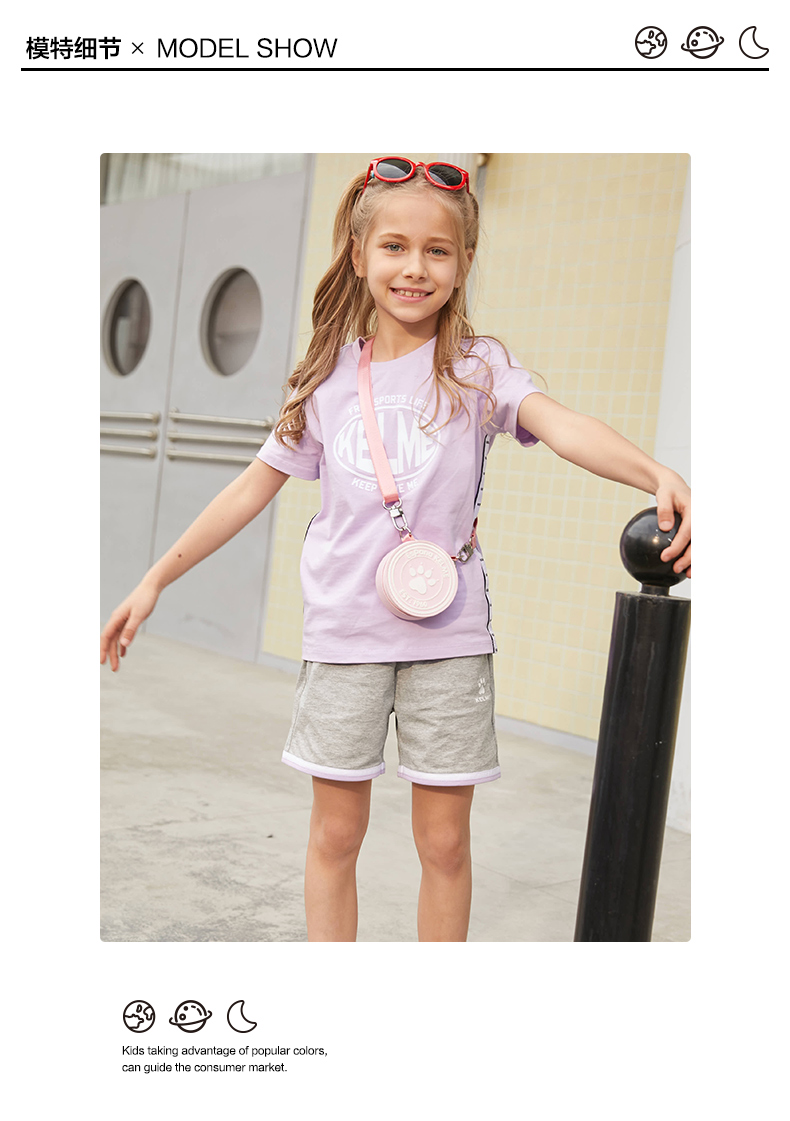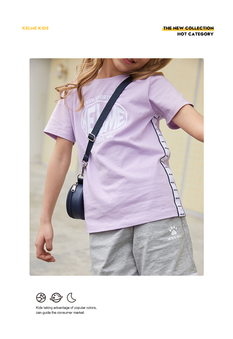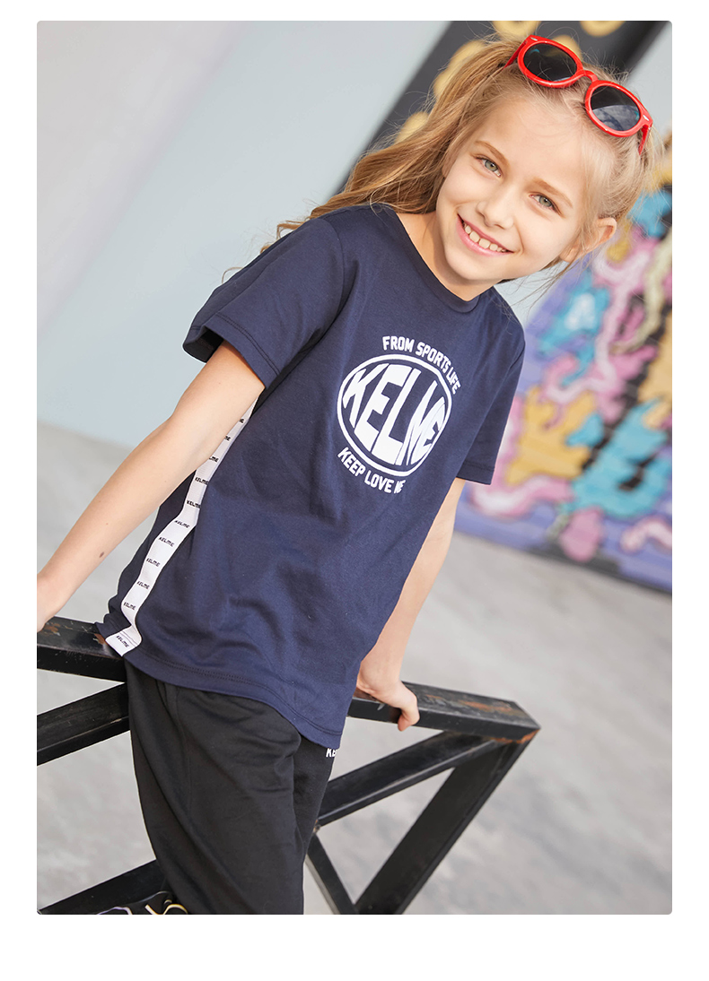 KIDS卡尔美女童短袖T恤春夏新款纯色儿童体恤套头打底上衣