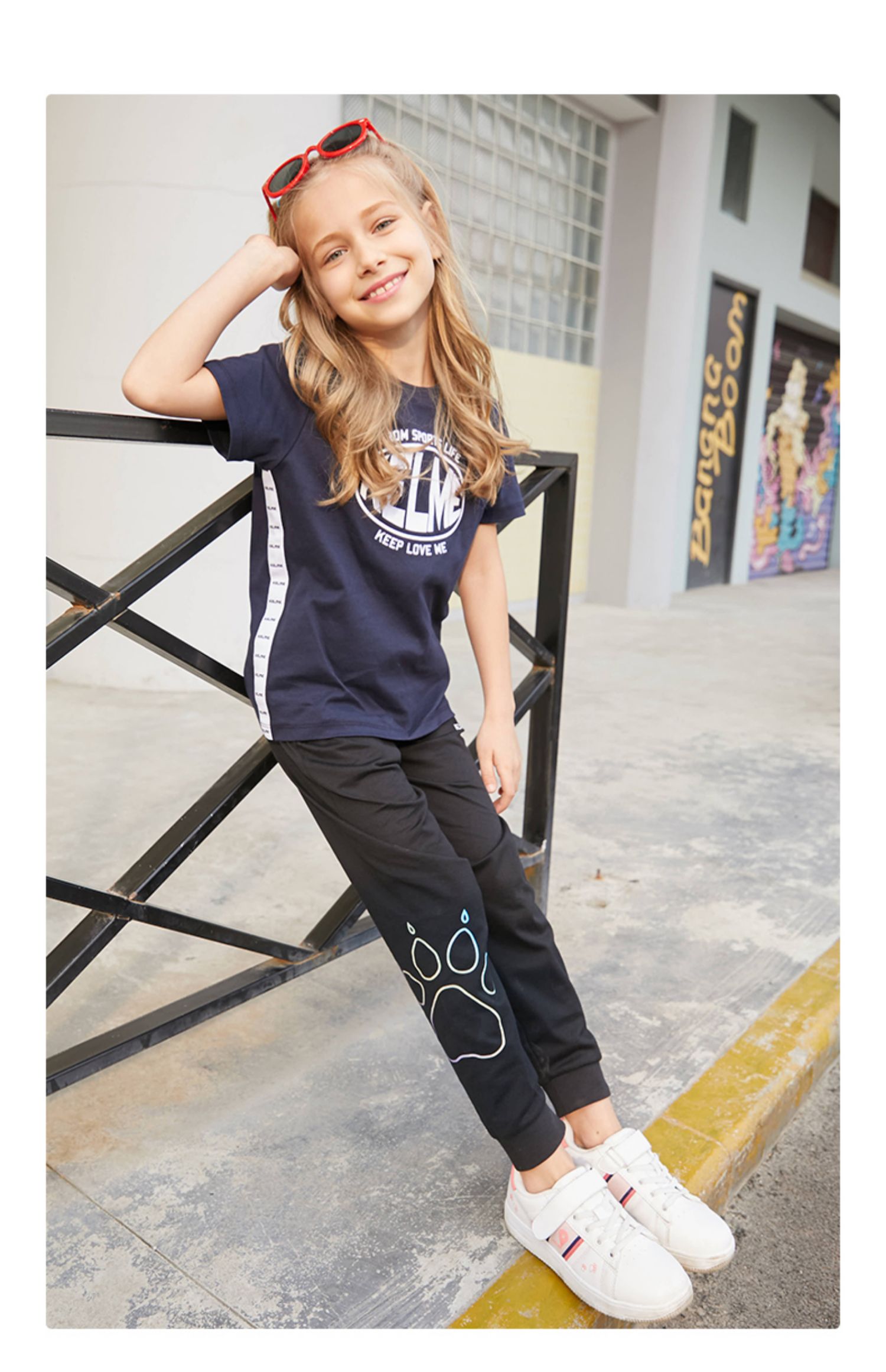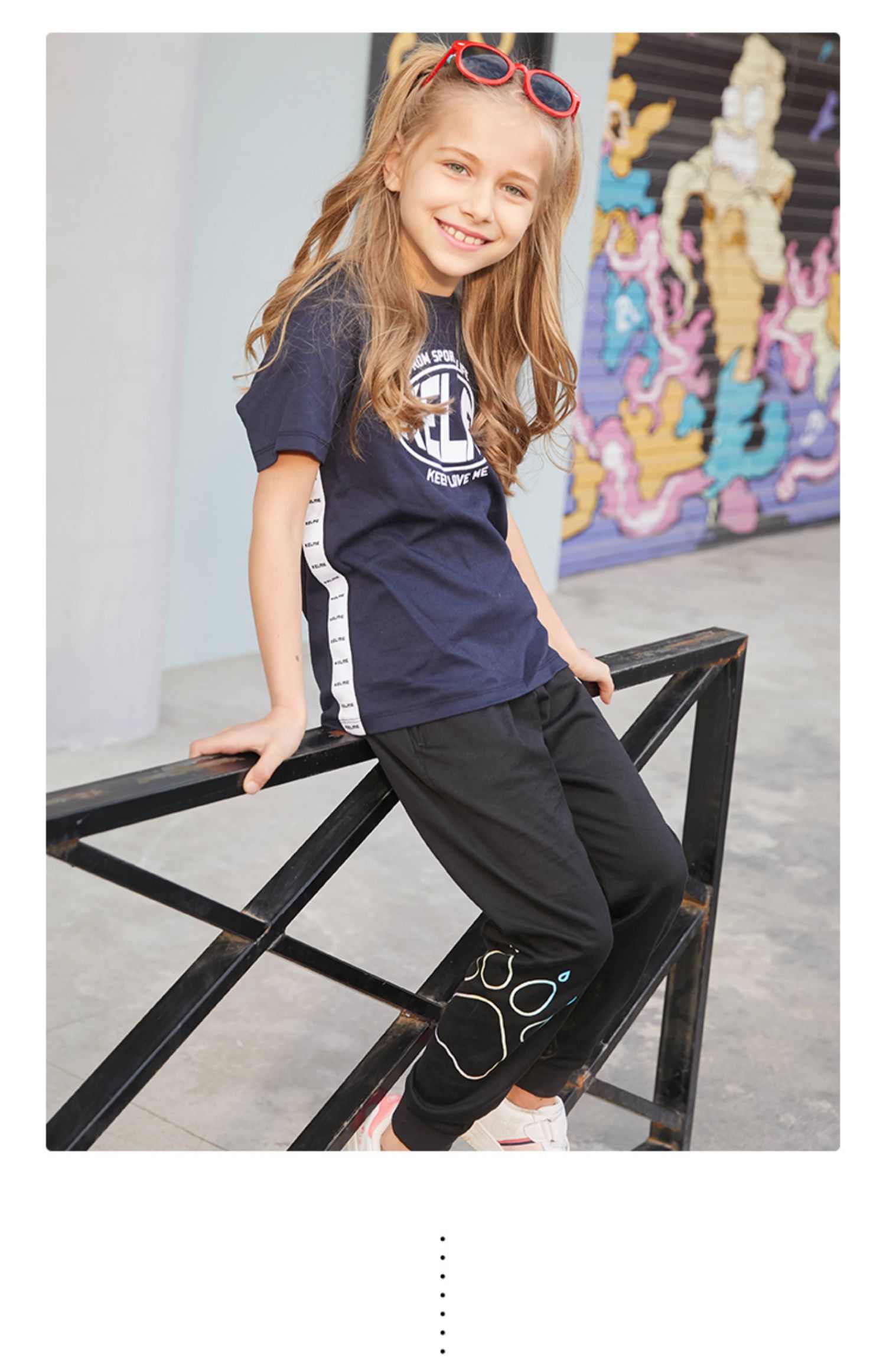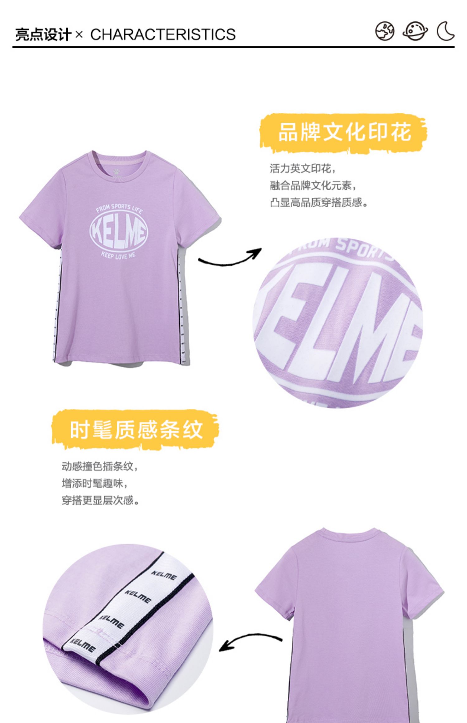 KIDS卡尔美女童短袖T恤春夏新款纯色儿童体恤套头打底上衣