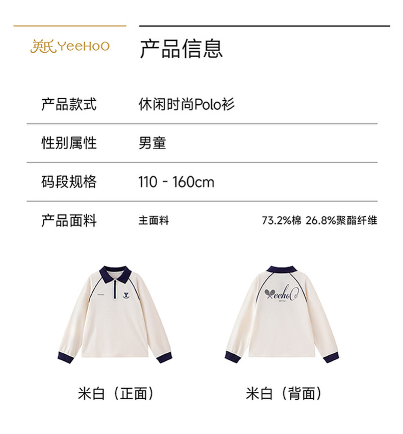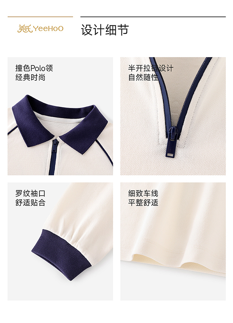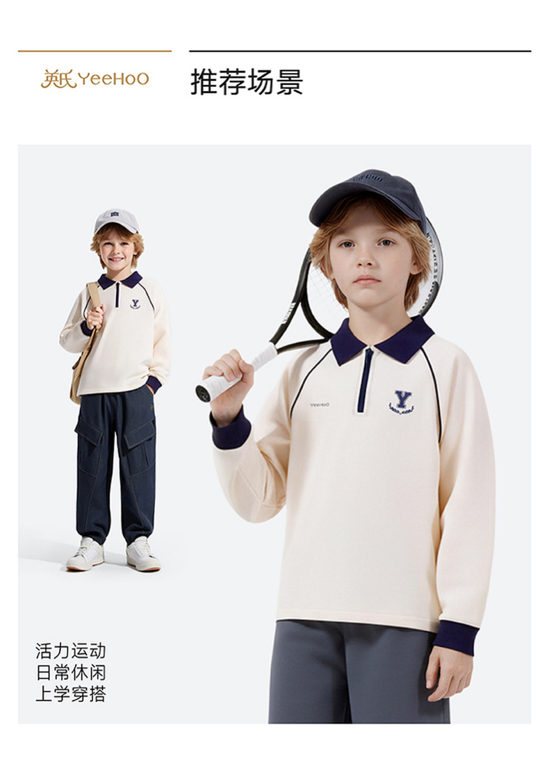【7A抗菌+舒爽凉感】英氏儿童T恤男童春夏长袖T恤上衣POLO衫户外休闲百搭